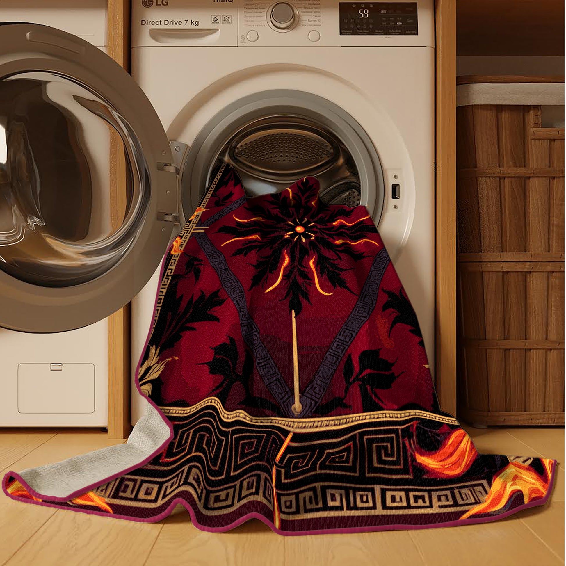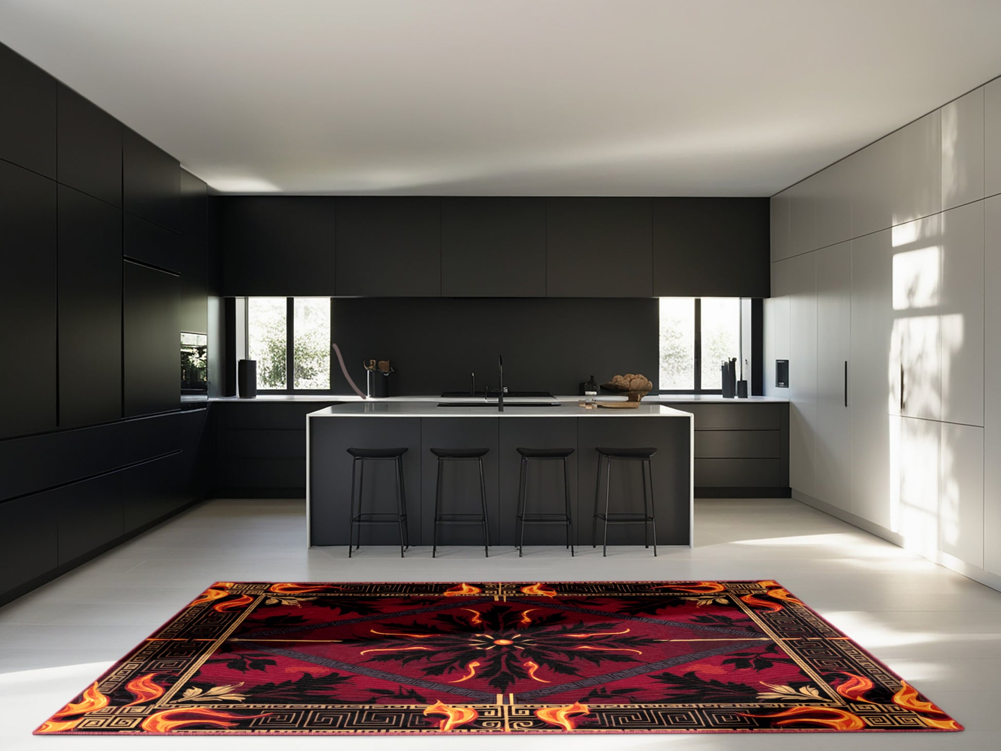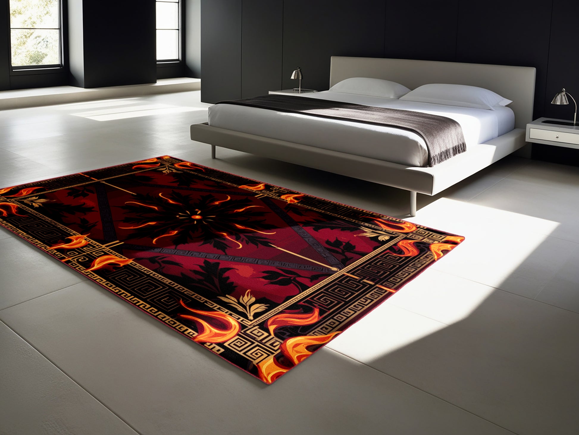 Fabled Garland from the Gilded Mythos collection embodies the drama and opulence of ancient mythology with its captivating Velvet Maroon color (A soft and warm maroon with a velvety finish.), a bold tone in the Purple color family. Featuring intricate patterns reminiscent of mythological symbols and lavish gilded accents, this rug is finished with Rose serging a durable stitched edge that prevents fraying and enhances its regal aesthetic. Crafted from premium polyester and machine-made in the USA with imported materials, it offers both timeless elegance and lasting durability. Perfect for grand living spaces, formal dining rooms, or statement entryways, this design weaves together sophistication and mystique to create a bold focal point. Available in multiple sizes, the Gilded Mythos collection transforms any room into a space of mythical grandeur and artistic allure.