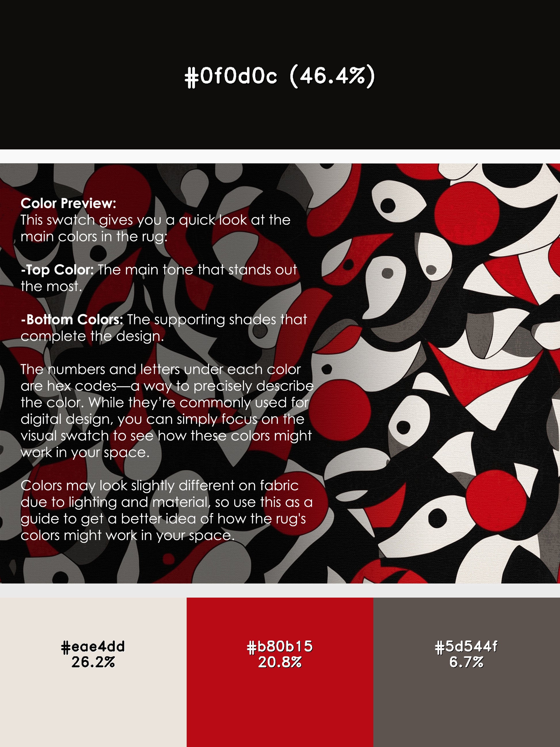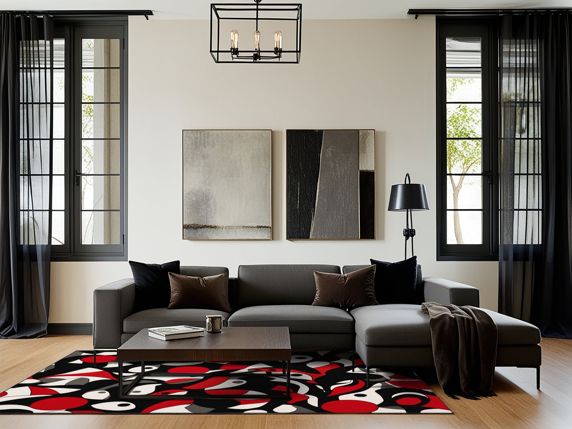 Flame Reverie from the Scarlet Surrealism collection brings bold artistic energy to your space with its captivating Black (W3C) color (A pure, true black, perfect for sleek and timeless designs.), a dramatic tone in the Black color family. Inspired by surrealist artistry, this rug features abstract patterns with flowing curves and dynamic contrasts, creating a sense of motion and depth. Finished with Black serging a sleek edge that enhances its modern aesthetic this rug is crafted from premium polyester and machine-made in the USA with imported materials. Perfect for living rooms, statement hallways, or creative spaces, this design blends avant-garde elegance with everyday functionality. Available in multiple sizes, the Scarlet Surrealism collection transforms your home into a showcase of bold sophistication and unique style.