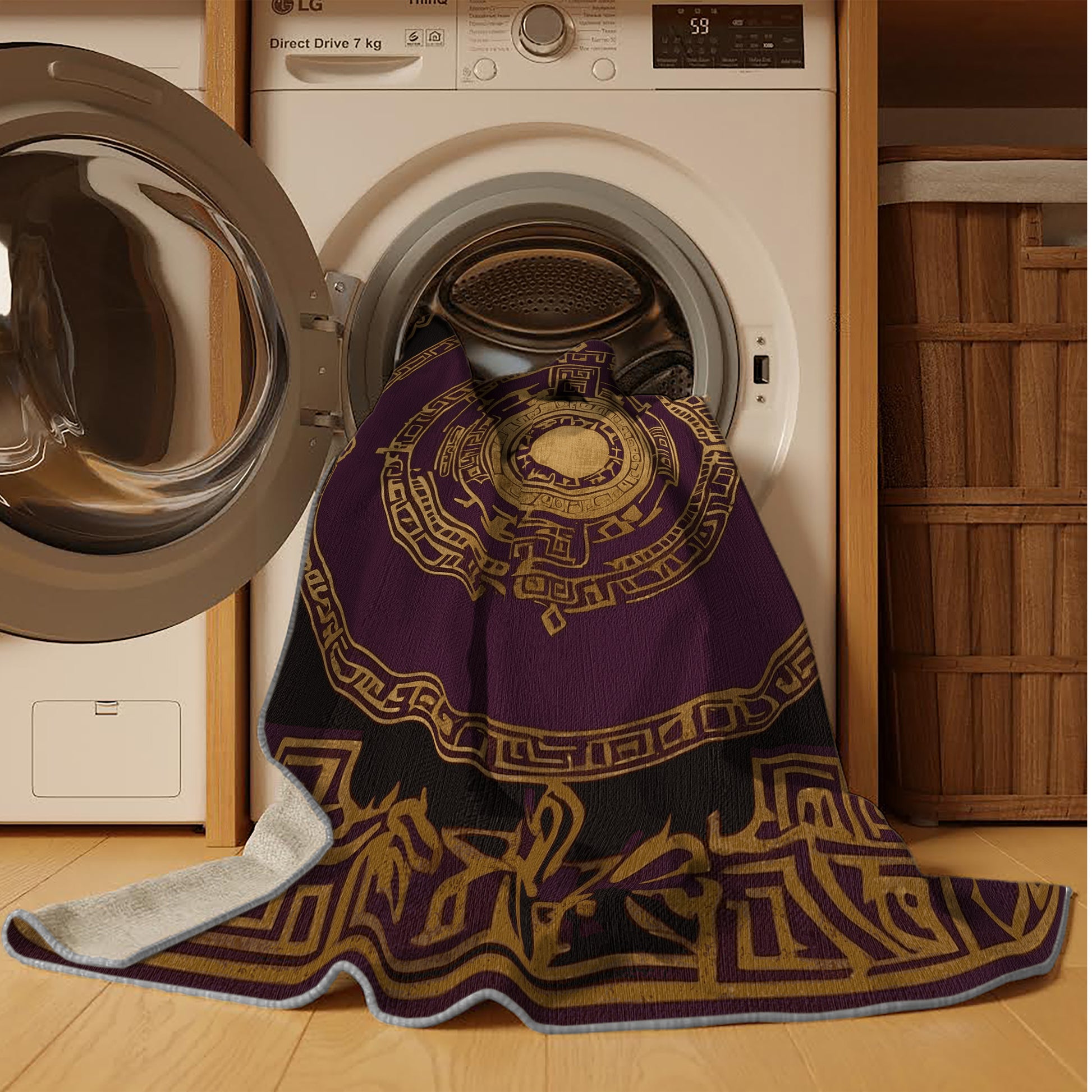 Fleur Royale from the Gilded Mythos collection embodies the drama and opulence of ancient mythology with its captivating Dull Purple color (A muted and subtle purple, versatile and calming.), a bold tone in the Purple color family. Featuring intricate patterns reminiscent of mythological symbols and lavish gilded accents, this rug is finished with Gray serging a durable stitched edge that prevents fraying and enhances its regal aesthetic. Crafted from premium polyester and machine-made in the USA with imported materials, it offers both timeless elegance and lasting durability. Perfect for grand living spaces, formal dining rooms, or statement entryways, this design weaves together sophistication and mystique to create a bold focal point. Available in multiple sizes, the Gilded Mythos collection transforms any room into a space of mythical grandeur and artistic allure.