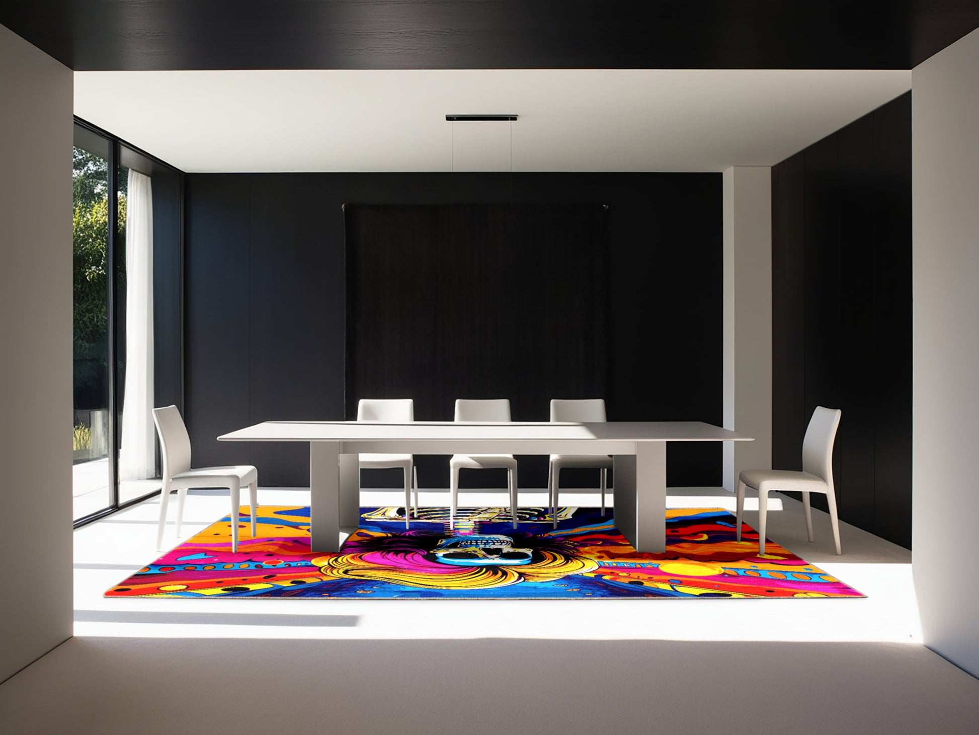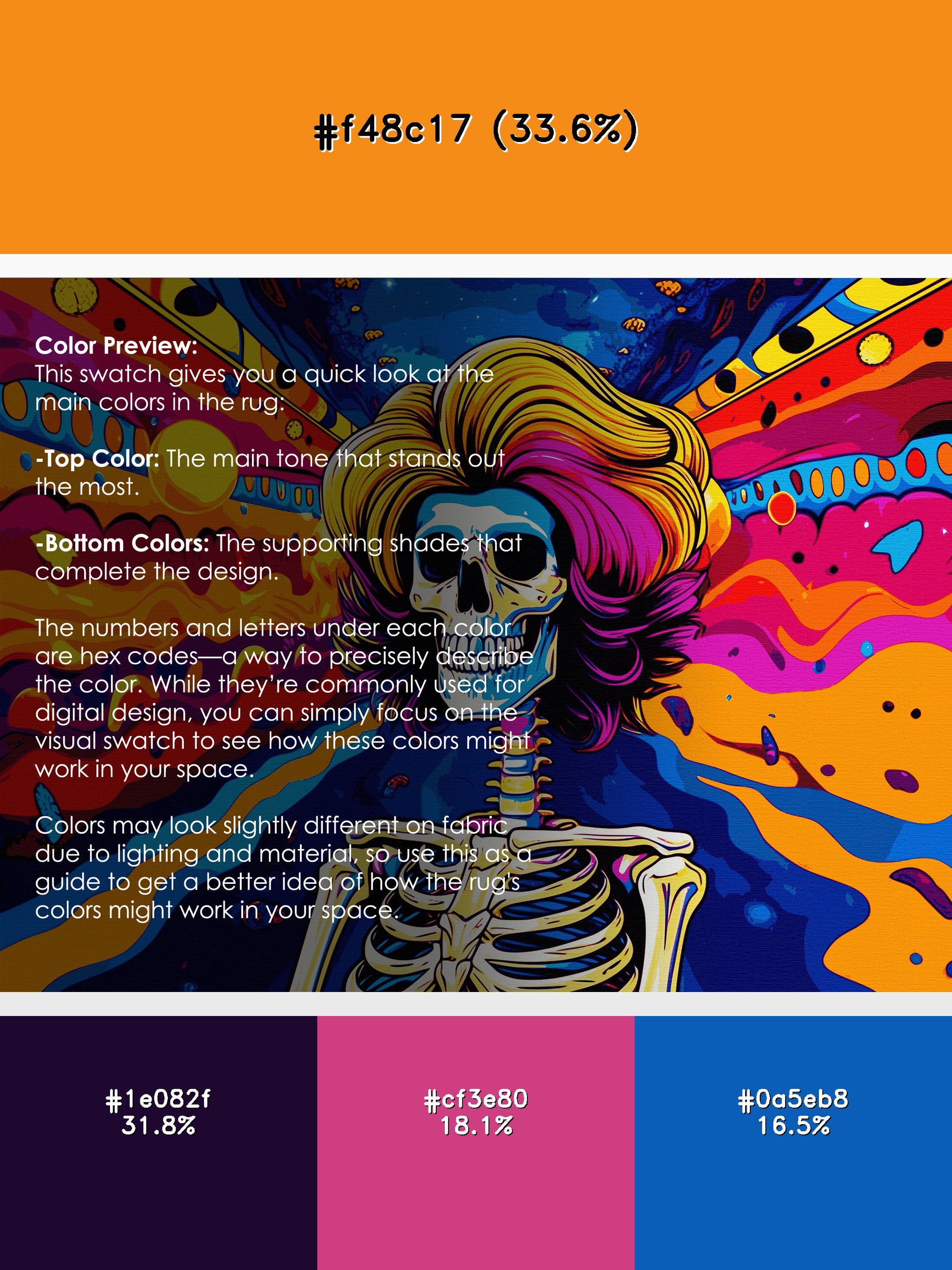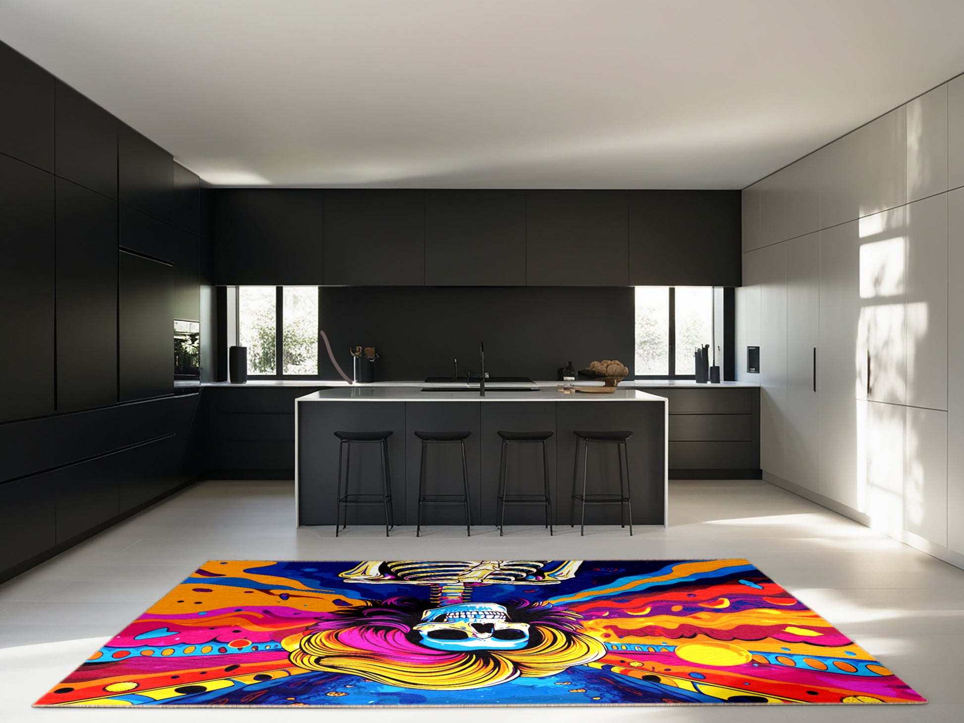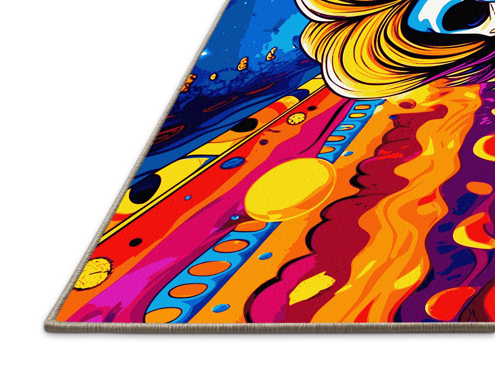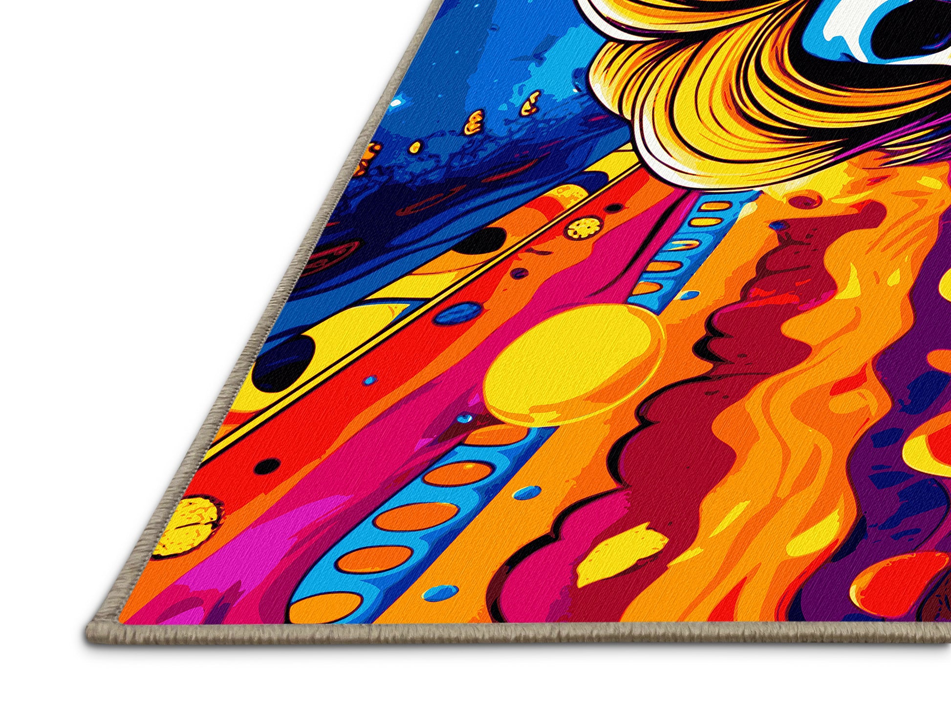 Flux Bloom from the Psychedelia Peaks collection radiates vibrant energy with its bold Yellow Orange or Orange Yellow color (A bright blend of yellow and orange, vibrant and lively.), a striking tone in the Orange color family. Featuring swirling, kaleidoscopic patterns and electrifying neon hues inspired by the psychedelic art movement, this rug brings a sense of dynamic motion and artistic expression to your space. Finished with Beige serging a durable edge that enhances its playful and vibrant aesthetic this rug is crafted from premium polyester and machine-made in the USA with imported materials. Perfect for eclectic living rooms, retro-inspired spaces, or creative studios, this design transforms any room into a lively haven of individuality and boldness. Available in multiple sizes, the Psychedelia Peaks collection adds a dramatic, colorful statement to your decor, turning your home into a canvas of unrestrained creativity.