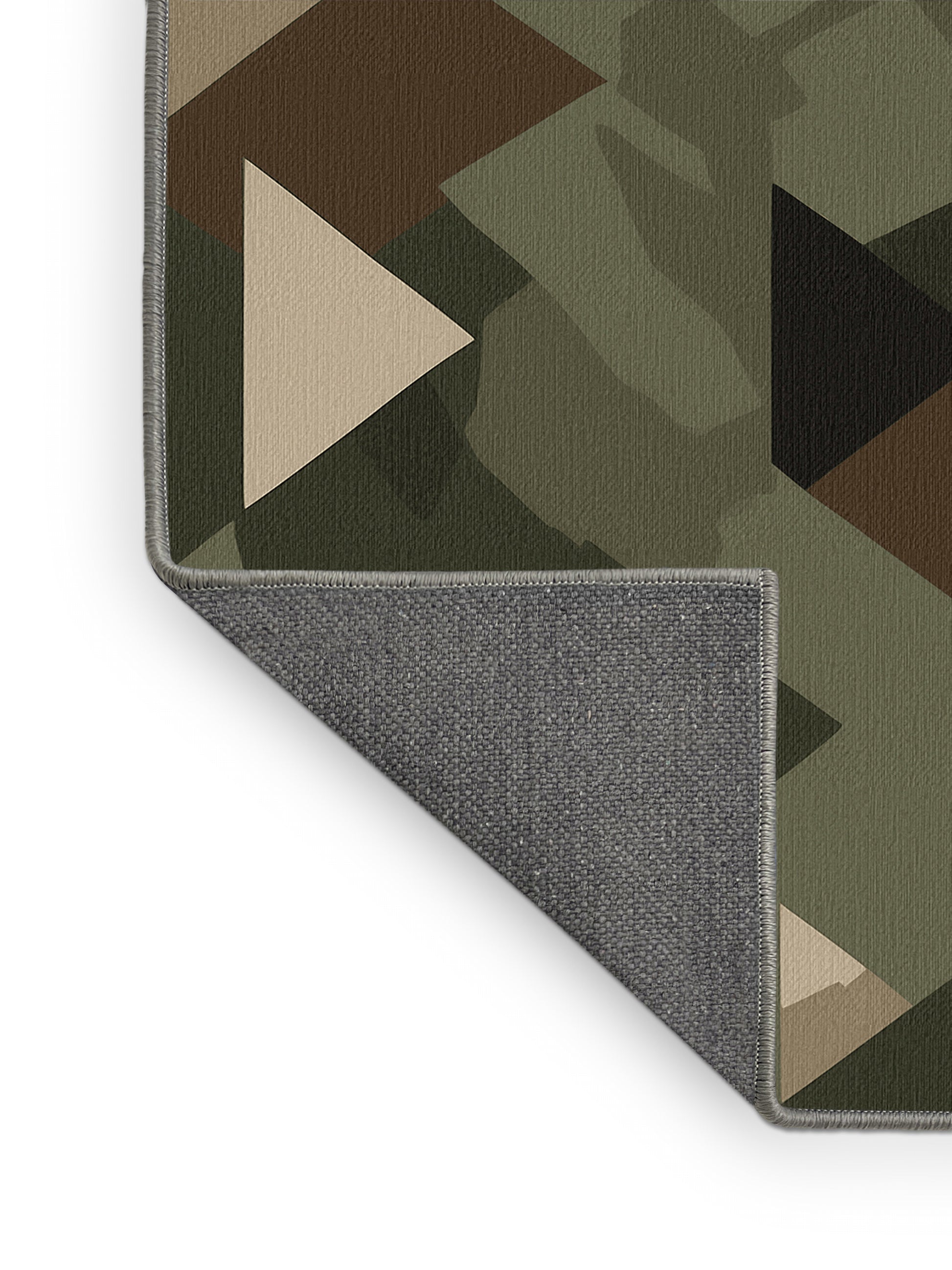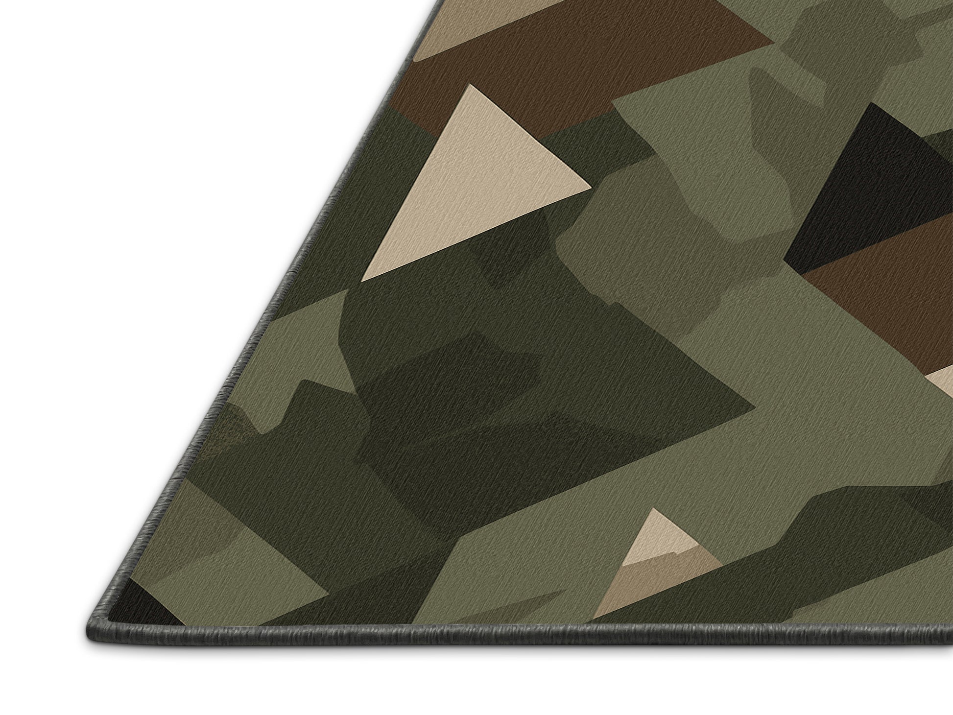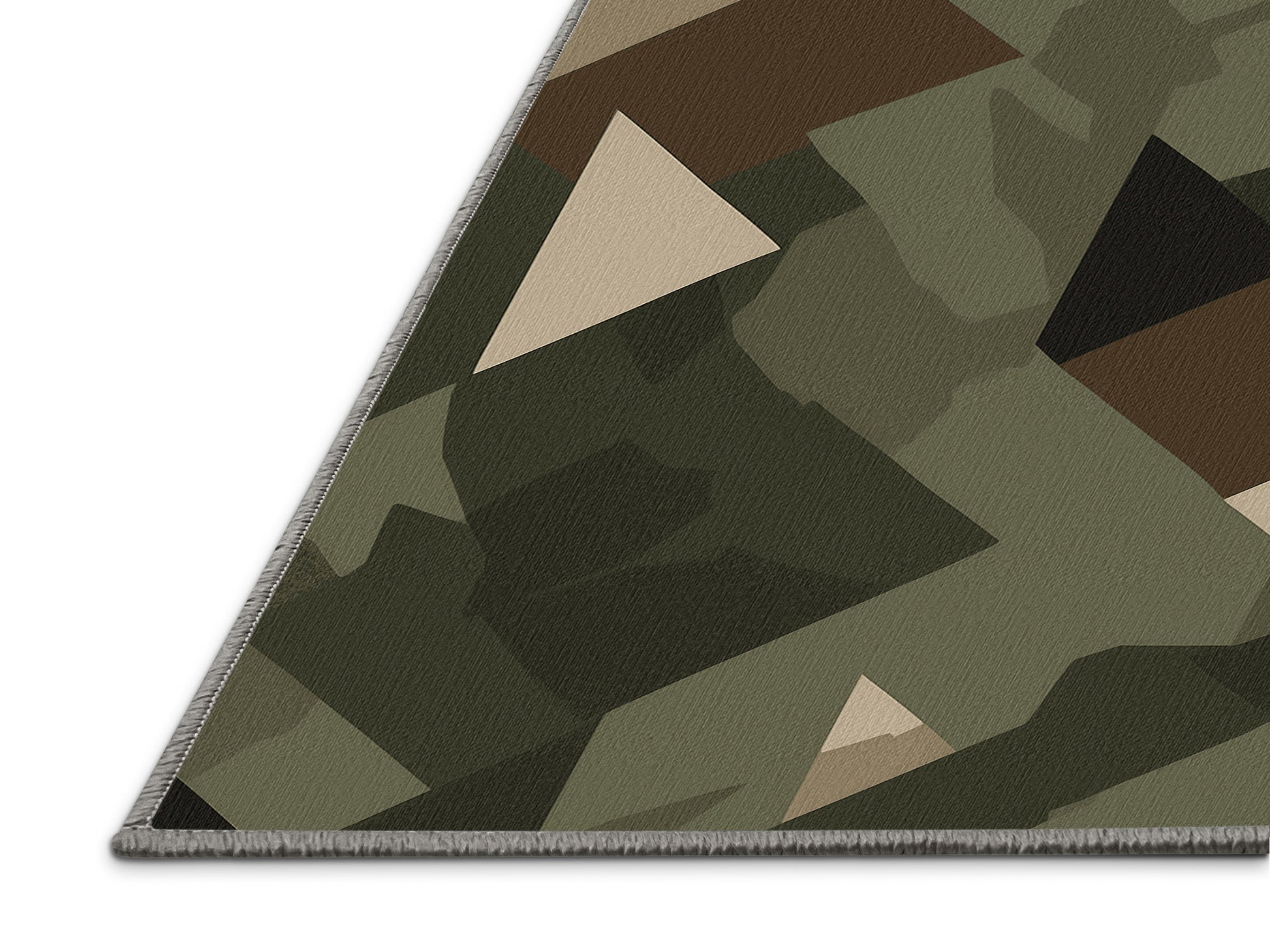 Fragment Peak from the Tactical Terrain collection brings rugged sophistication to your space with its striking Army Brown color (A muted and earthy brown inspired by military tones.), a bold tone in the Brown color family. Inspired by military camouflage and geometric precision, this rug features angular motifs, sharp black gridlines, and a muted palette that evokes strength and resilience. Finished with Gray serging a durable edge that enhances its contemporary aesthetic this rug is crafted from premium polyester and machine-made in the USA with imported materials. Perfect for modern living rooms, industrial home offices, or creative studios, this design blends tactical flair with versatile style. Available in multiple sizes, the Tactical Terrain collection transforms your home with a distinctive edge and bold character, elevating any decor scheme.