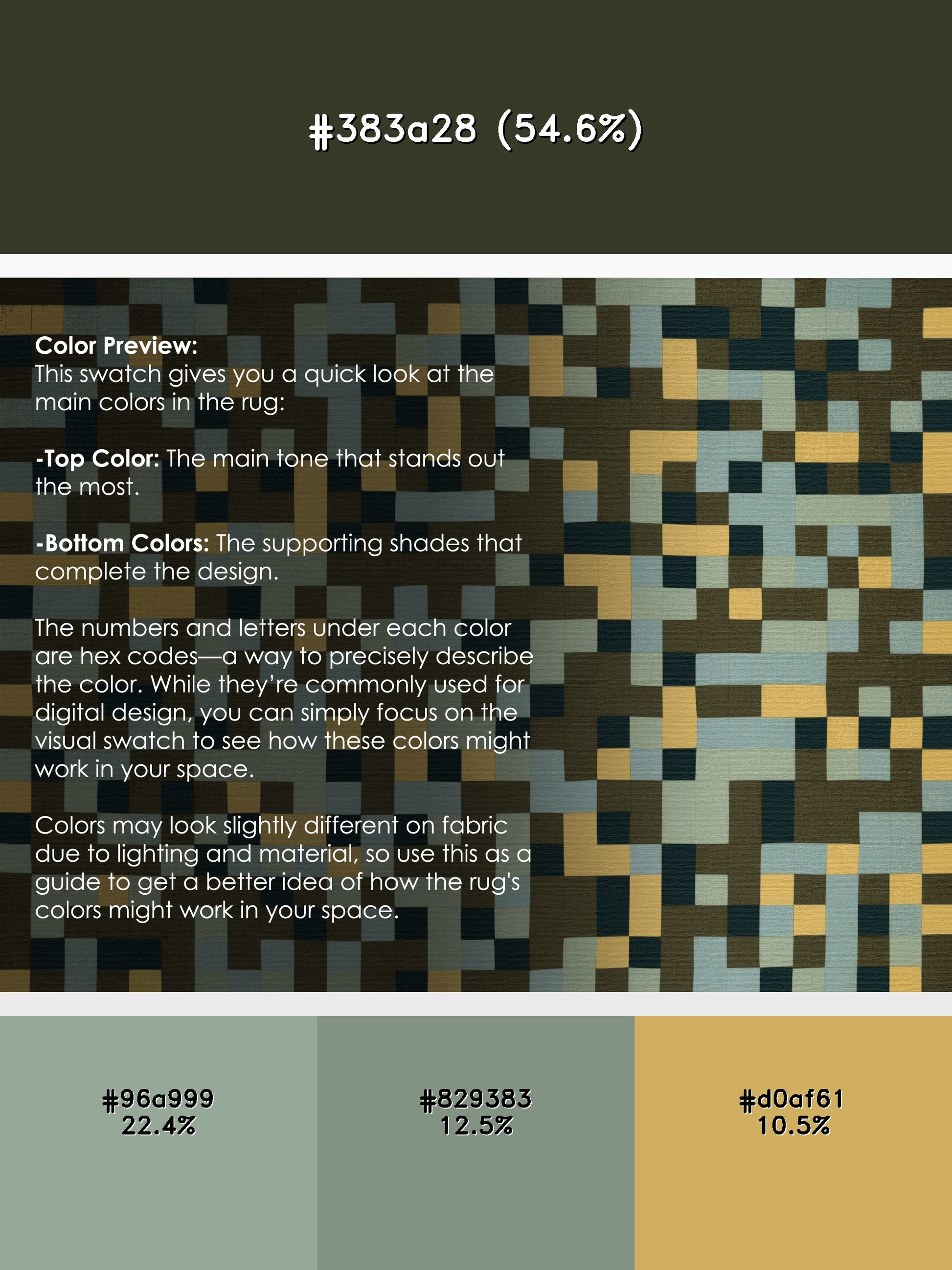 Fragmented Flora from the Pixel Earth collection brings a modern, pixelated charm to your space with its striking Camouflage Green color (A muted and earthy green, perfect for outdoor and natural themes.), a bold tone in the Green color family. Featuring intricate geometric patterns and pixel-like designs inspired by digital landscapes, this rug is finished with SageGreen serging a durable edge that enhances its contemporary aesthetic. Crafted from premium polyester and machine-made in the USA with imported materials, it offers a seamless blend of organic warmth and structured elegance. Perfect for creative studios, modern living rooms, or stylish home offices, this design balances bold artistry with versatile functionality. Available in multiple sizes, the Pixel Earth collection transforms any room into a unique and vibrant showcase of modern home decor.