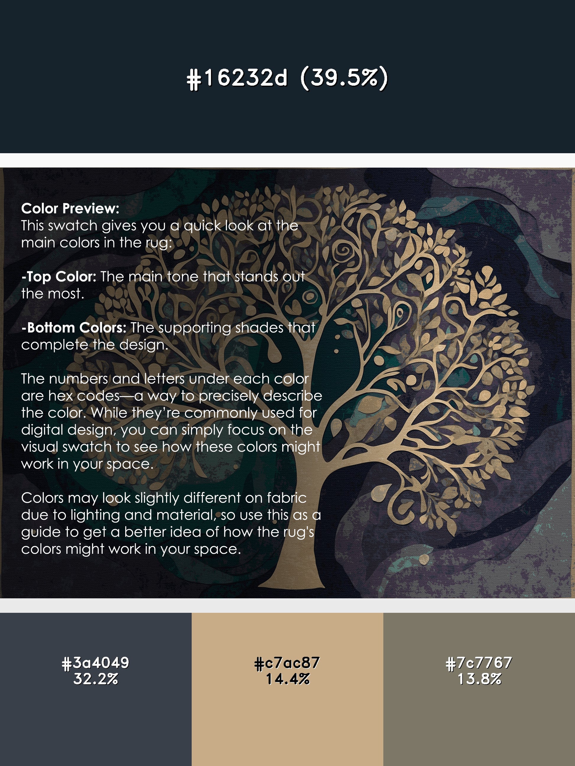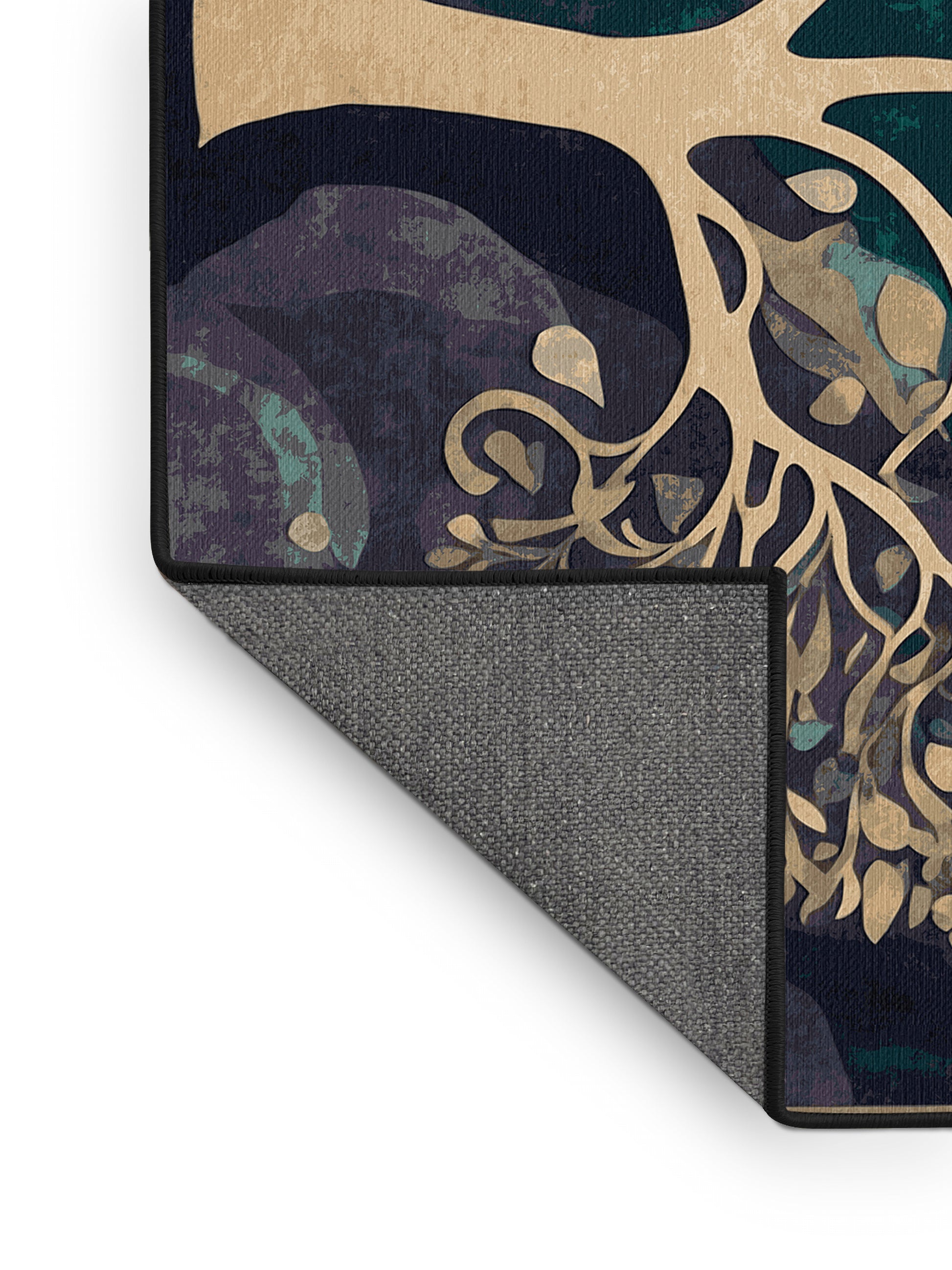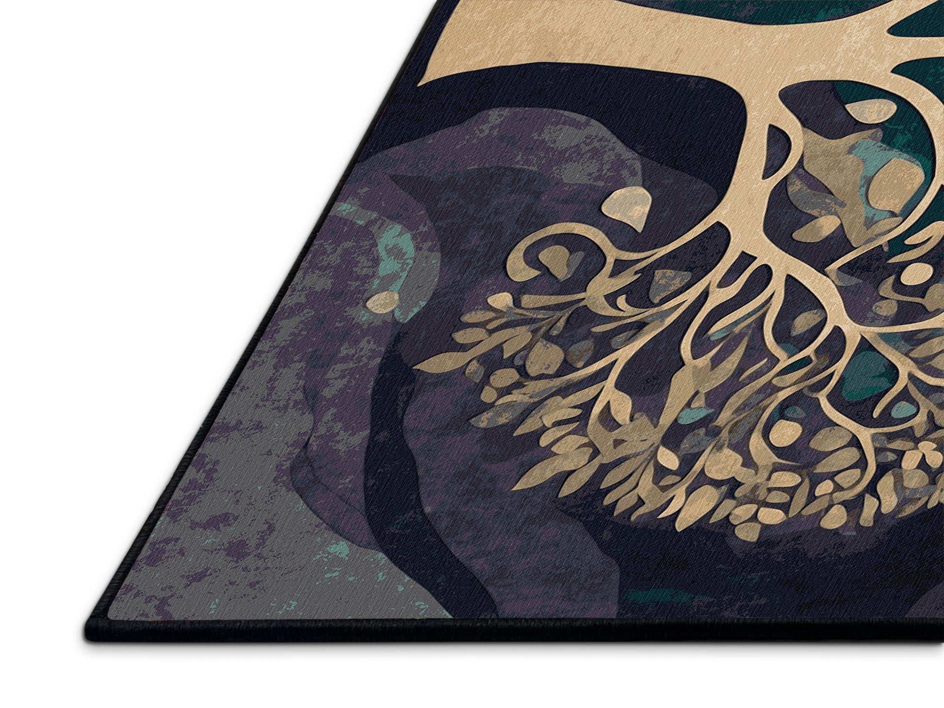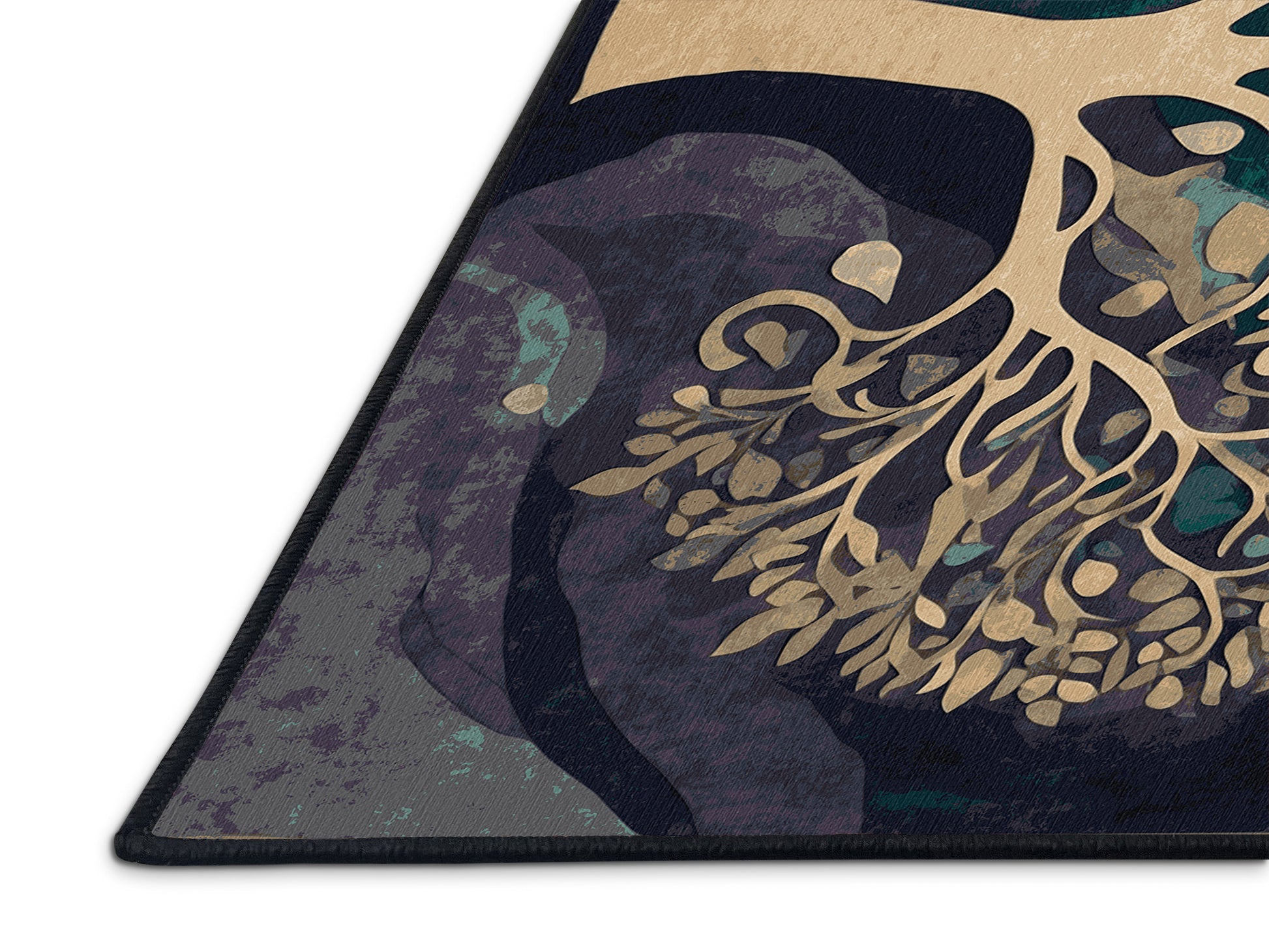 Galactic Greenery from the Mystic Flora collection brings the enchanting beauty of nature into your space with its captivating Dark Slate color (A dark slate blue with a cool and moody aesthetic.), a soothing tone in the Blue color family. Featuring intricate botanical patterns inspired by lush leaves and whimsical trees, this rug is finished with Black serging a durable stitched edge that prevents fraying and enhances its elegant design. Crafted from premium polyester and machine-made in the USA with imported materials, it combines modern artistry with lasting durability. Perfect for living rooms, serene bedrooms, or tranquil reading nooks, this design blends natural elements with a dreamy, ethereal quality. Available in multiple sizes, the Mystic Flora collection transforms your home into a tranquil retreat while adding a fresh, inviting touch to contemporary or bohemian interiors.