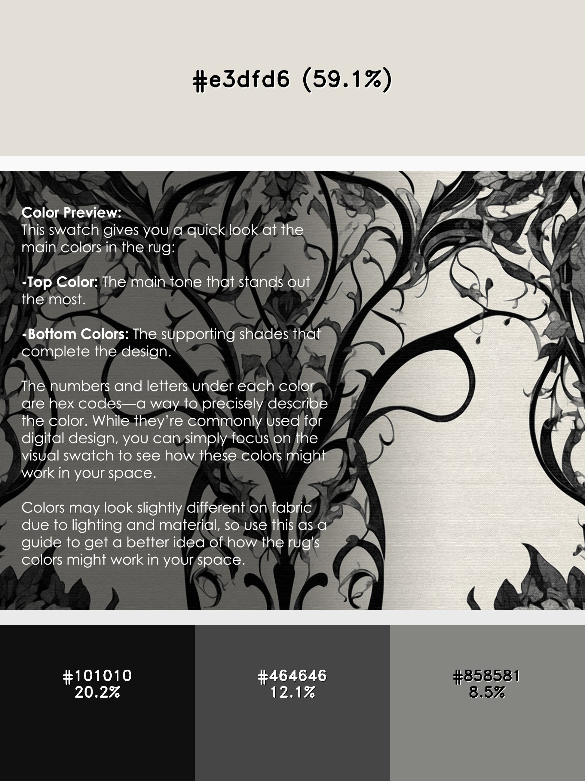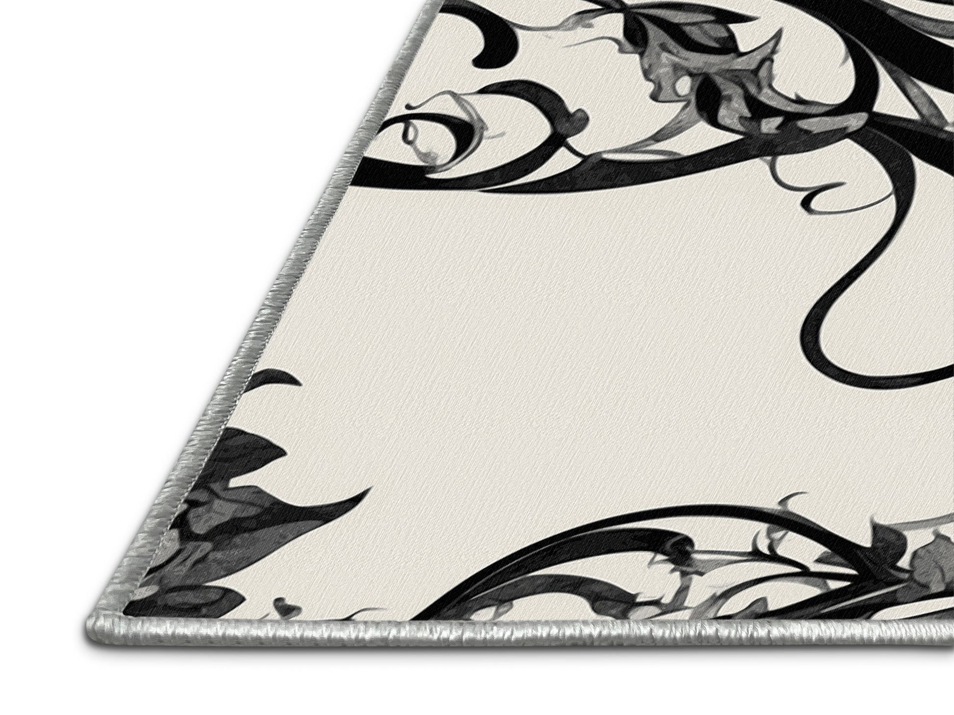 Gilded Nightshade from the Nocturne Elegance collection exudes timeless sophistication with its captivating Ash White color (A pale white with a subtle ash-like hue, delicate and soft.), a rich tone in the White color family. Featuring intricate baroque-inspired patterns and swirling vine designs, this rug creates a sense of depth and refined elegance. Finished with White serging a durable edge that enhances its luxurious aesthetic this rug is crafted from premium polyester and machine-made in the USA with imported materials. Perfect for formal dining rooms, chic living areas, or cozy bedrooms, this design balances bold drama with subtle charm, complementing both contemporary and traditional interiors. Available in multiple sizes, the Nocturne Elegance collection transforms your home into a haven of understated grandeur and classic refinement.
