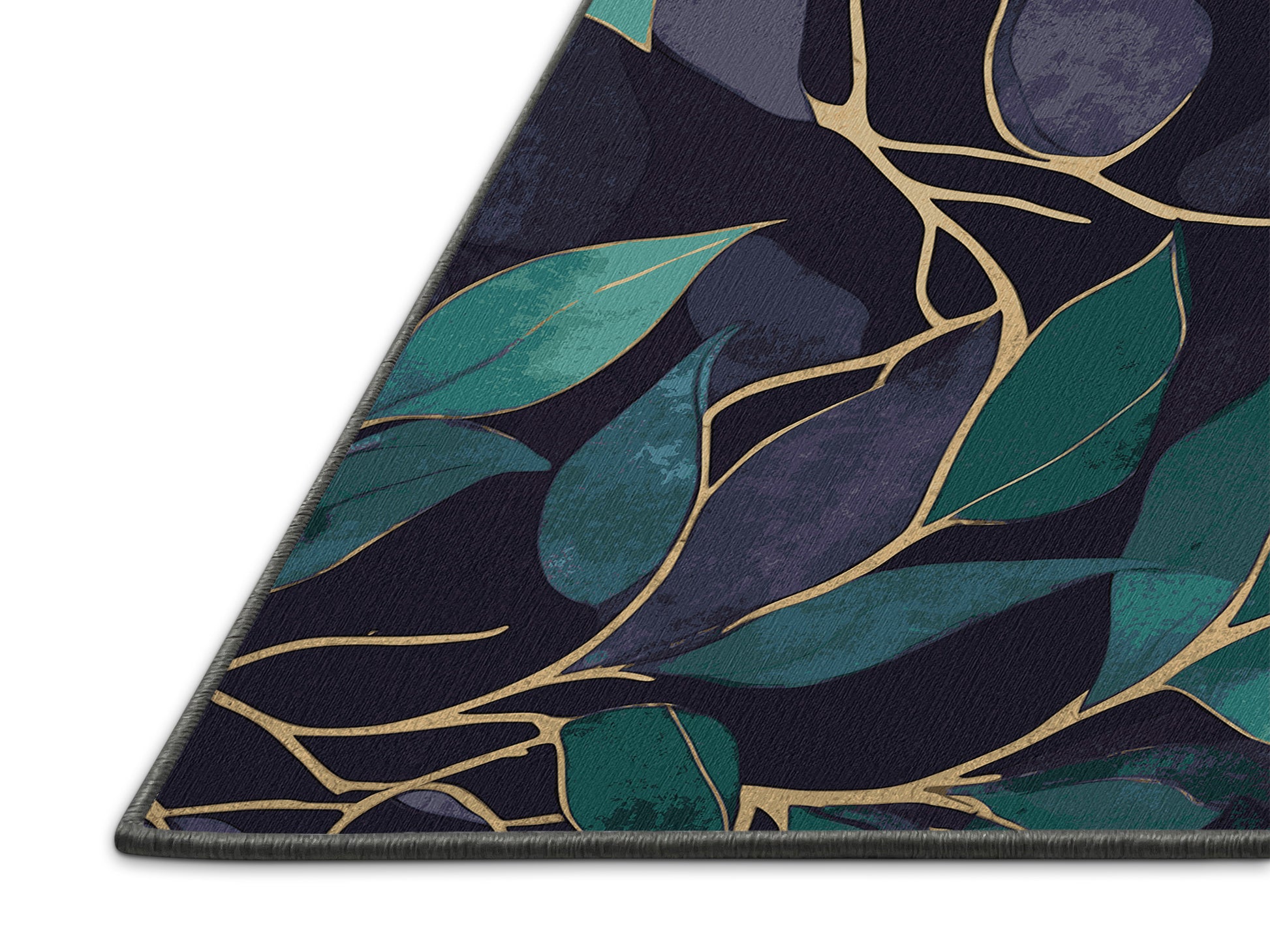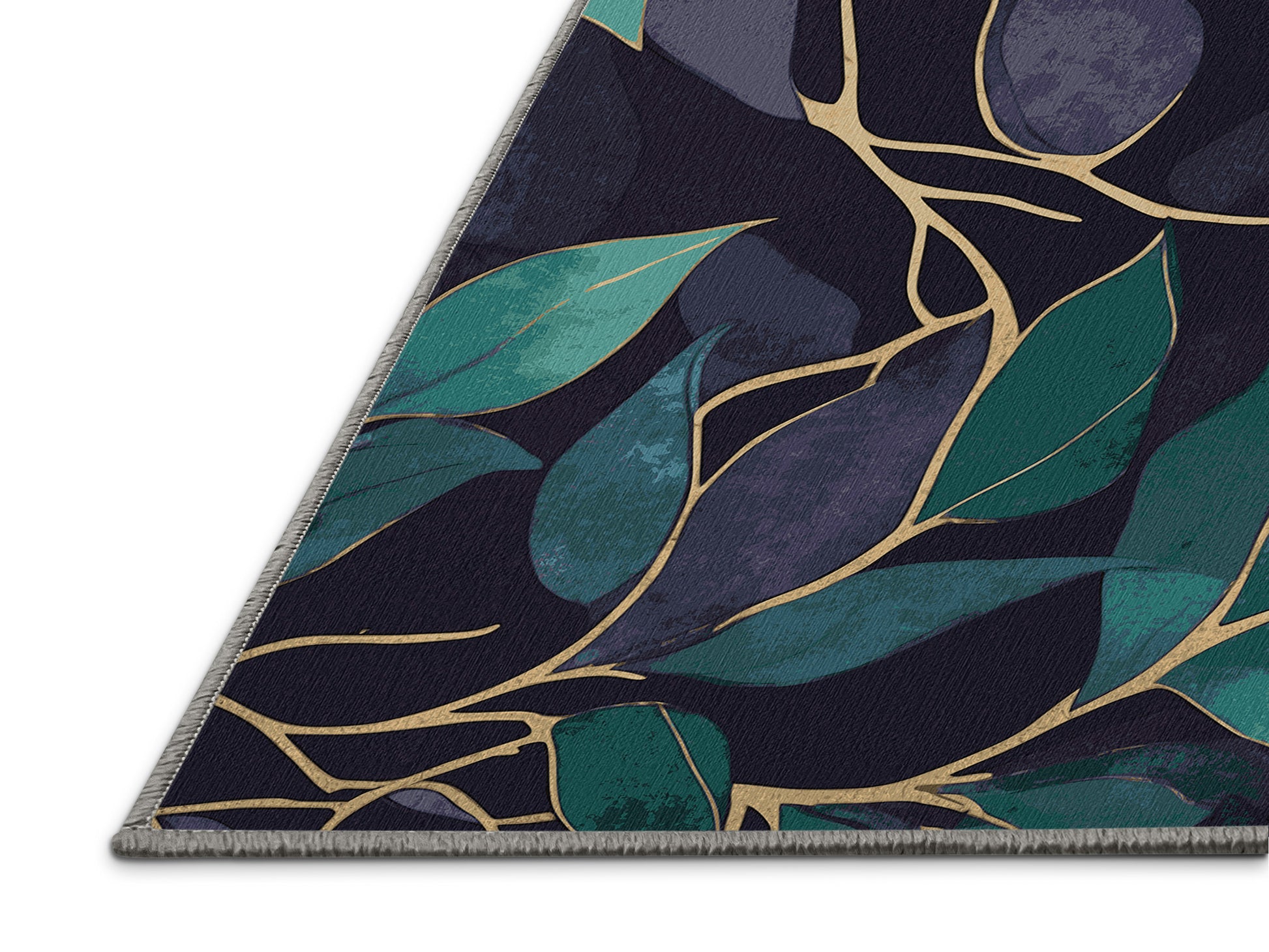 Gilded Underbrush from the Mystic Flora collection brings the enchanting beauty of nature into your space with its captivating Grape color (A rich purple inspired by the color of grapes, bold and vibrant.), a soothing tone in the Purple color family. Featuring intricate botanical patterns inspired by lush leaves and whimsical trees, this rug is finished with Gray serging a durable stitched edge that prevents fraying and enhances its elegant design. Crafted from premium polyester and machine-made in the USA with imported materials, it combines modern artistry with lasting durability. Perfect for living rooms, serene bedrooms, or tranquil reading nooks, this design blends natural elements with a dreamy, ethereal quality. Available in multiple sizes, the Mystic Flora collection transforms your home into a tranquil retreat while adding a fresh, inviting touch to contemporary or bohemian interiors.