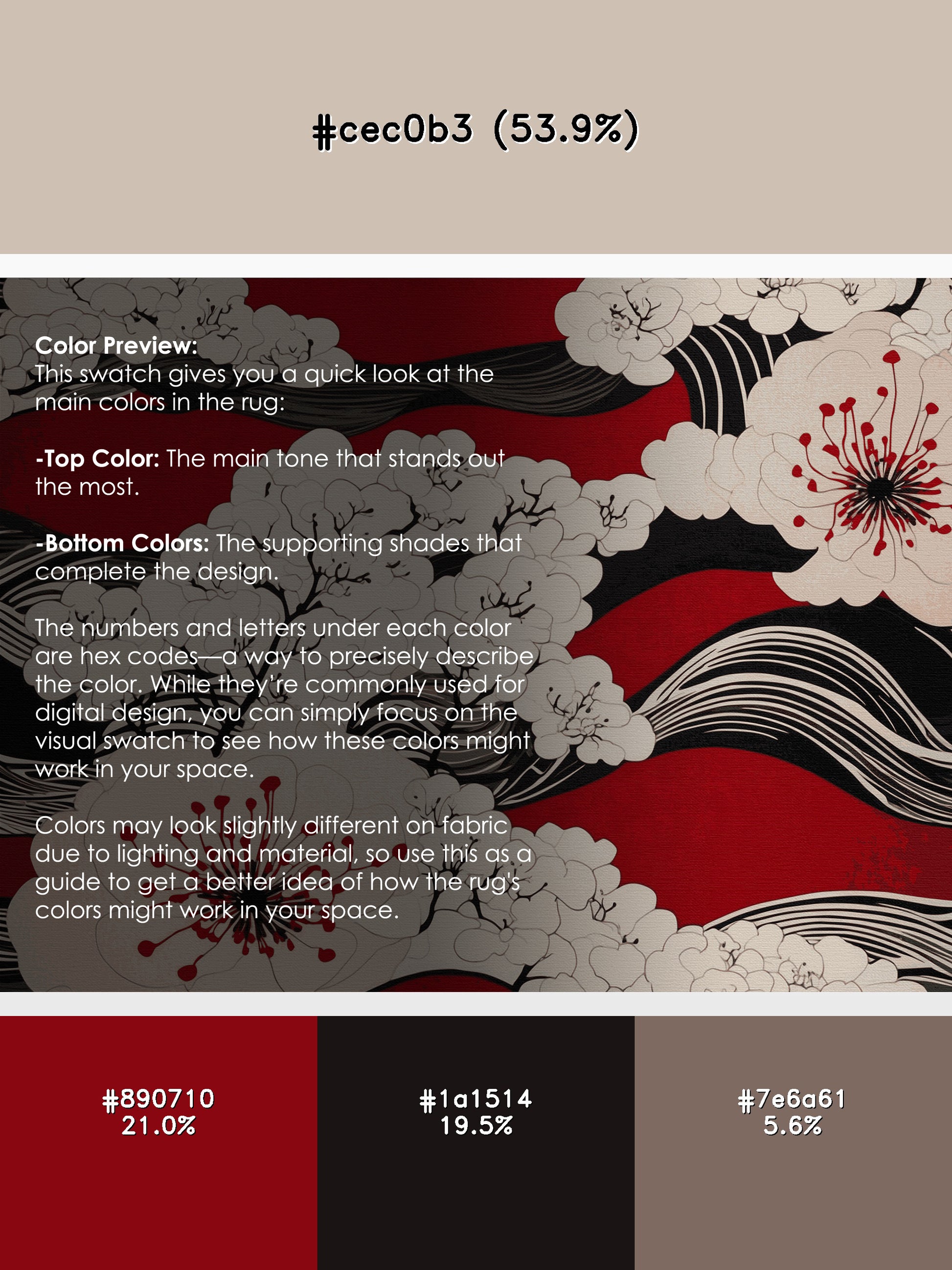 Golden Sakura from the Sakura Waves collection captures the timeless elegance of Japanese artistry with its captivating Dark White color (A muted white with soft grayish tones, calm and neutral.), a refined tone in the White color family. Featuring delicate cherry blossom motifs and flowing wave-inspired patterns, this rug evokes the serene beauty of nature and the transient charm of sakura in bloom. Finished with White serging a durable edge that enhances its artistic appeal this rug is crafted from premium polyester and machine-made in the USA with imported materials. Perfect for minimalist living rooms, tranquil bedrooms, or zen-inspired spaces, this design blends cultural sophistication with modern functionality. Available in multiple sizes, the Sakura Waves collection transforms your home into a serene retreat, balancing artistic expression and versatile style seamlessly.