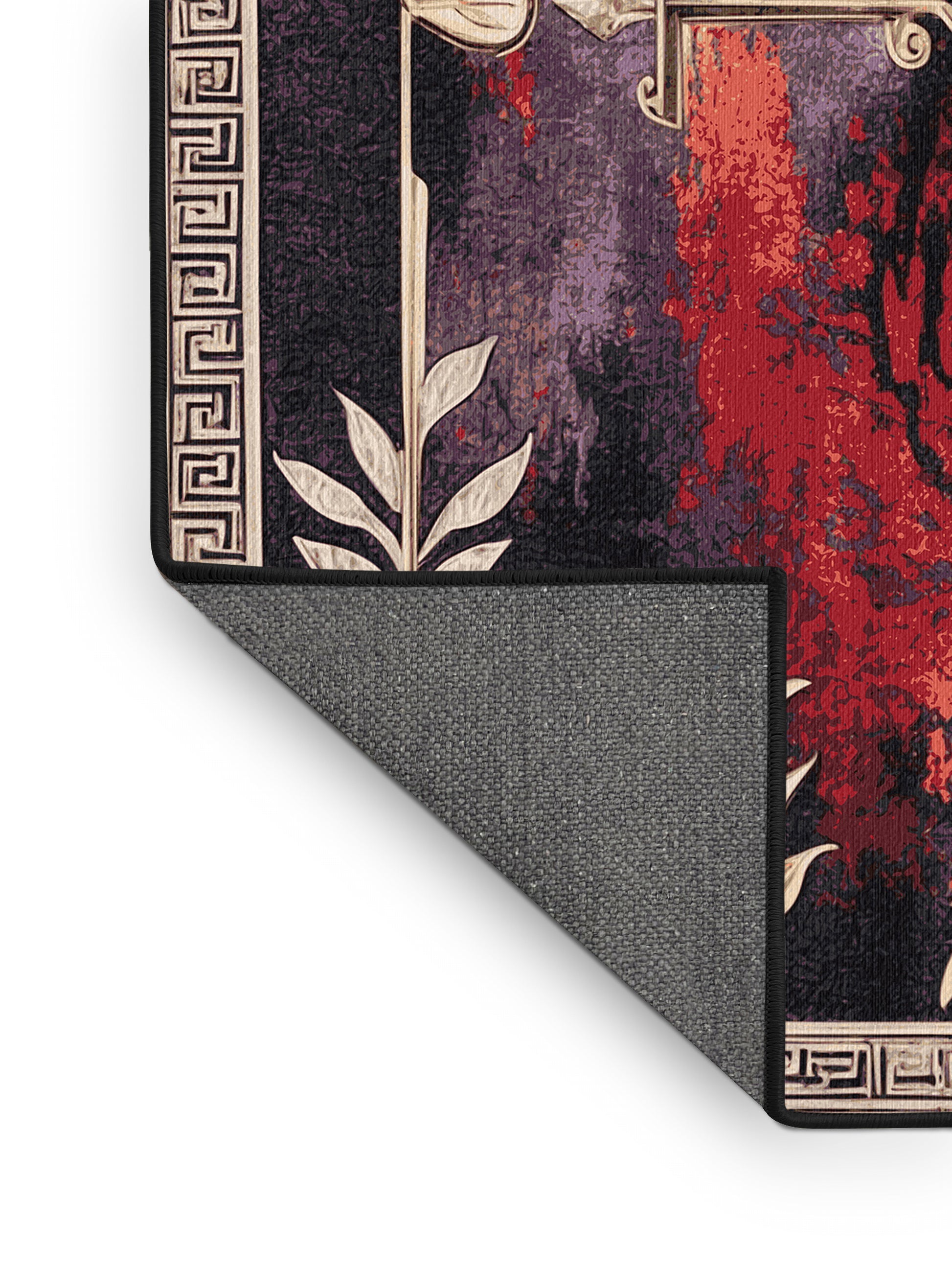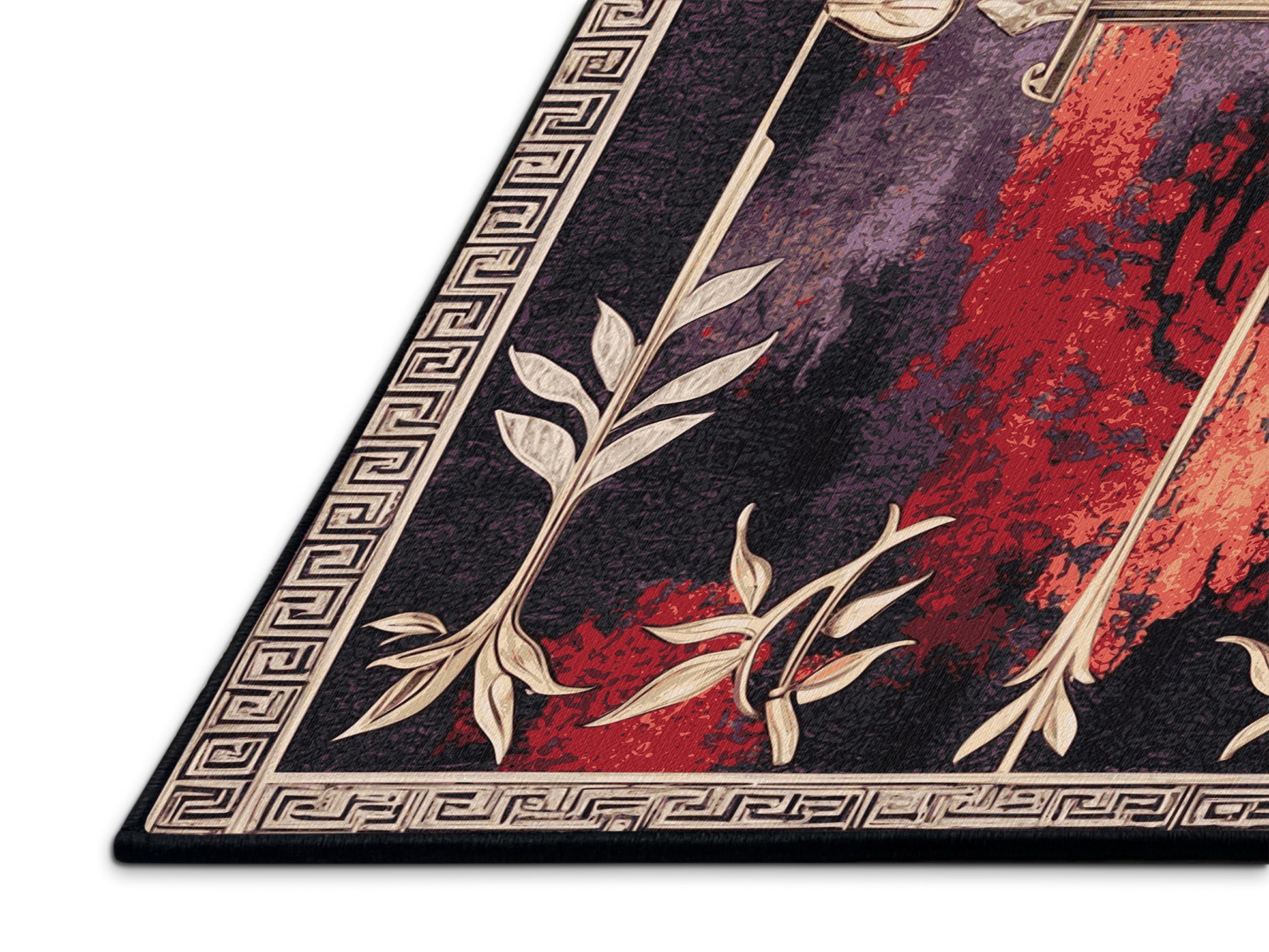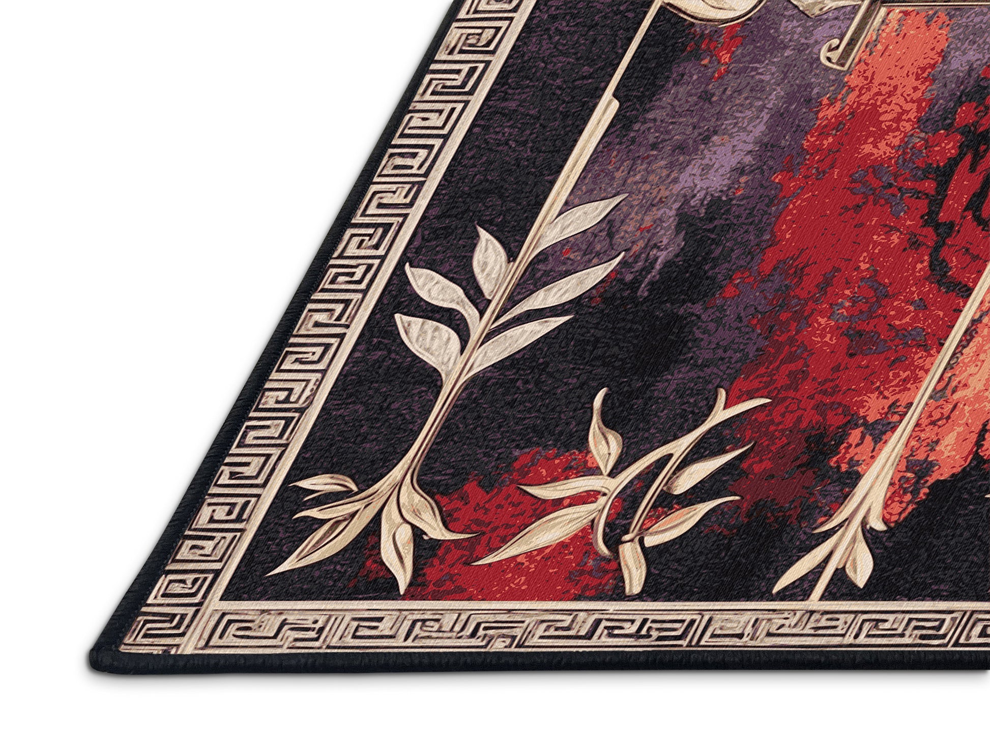 Hera's Embrace from the Hellenic Grandeurs collection embodies the timeless elegance of ancient Greek artistry with its stunning Charcoal color (A soft black with gray undertones, perfect for a modern, neutral look.), a rich tone in the Black color family. Featuring intricate geometric motifs, ornate floral patterns, and Grecian-inspired borders, this rug is finished with Black serging a durable stitched edge that prevents fraying and adds a polished, refined look. Crafted from premium polyester and machine-made in the USA with imported materials, it combines historical grandeur with everyday practicality. Perfect for formal living rooms, sophisticated study spaces, or dining areas, this design blends classical refinement with contemporary elegance. Available in multiple sizes, the Hellenic Grandeurs collection transforms any space into a luxurious setting steeped in cultural richness and timeless sophistication.
