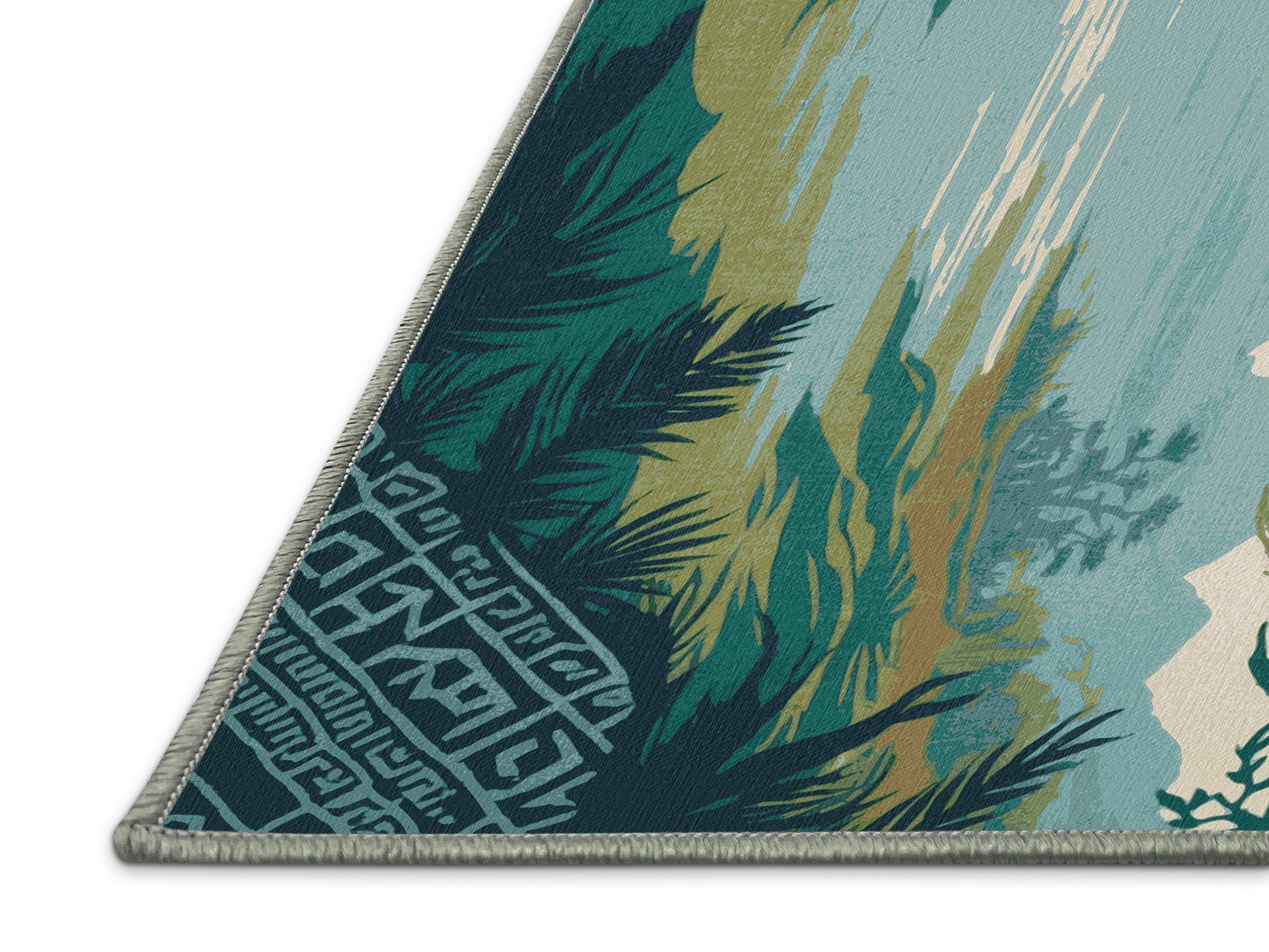 Heroic Emblem from the Hero's Path collection takes you on an epic journey of adventure and timeless wonder with its captivating DarkSeaGreen (W3C) color (A muted green with gray undertones, perfect for natural designs.), a bold tone in the Green color family. Inspired by mythical quests and heroic landscapes, this rug features intricate symbols and dynamic designs that evoke a sense of exploration and creativity. Finished with SageGreen serging a durable stitched edge that prevents fraying and enhances its artistic appeal this rug is crafted from premium polyester and machine-made in the USA with imported materials. Perfect for creating a bold statement in living rooms, inspiring creativity in home offices, or elevating entertainment areas, this design combines fantasy, elegance, and practicality. Available in multiple sizes, the Hero's Path collection transforms your space into a realm of imagination and discovery with its adventurous spirit and artistic flair.