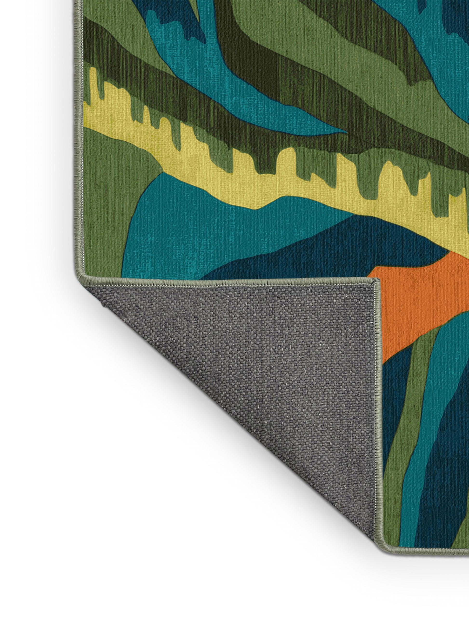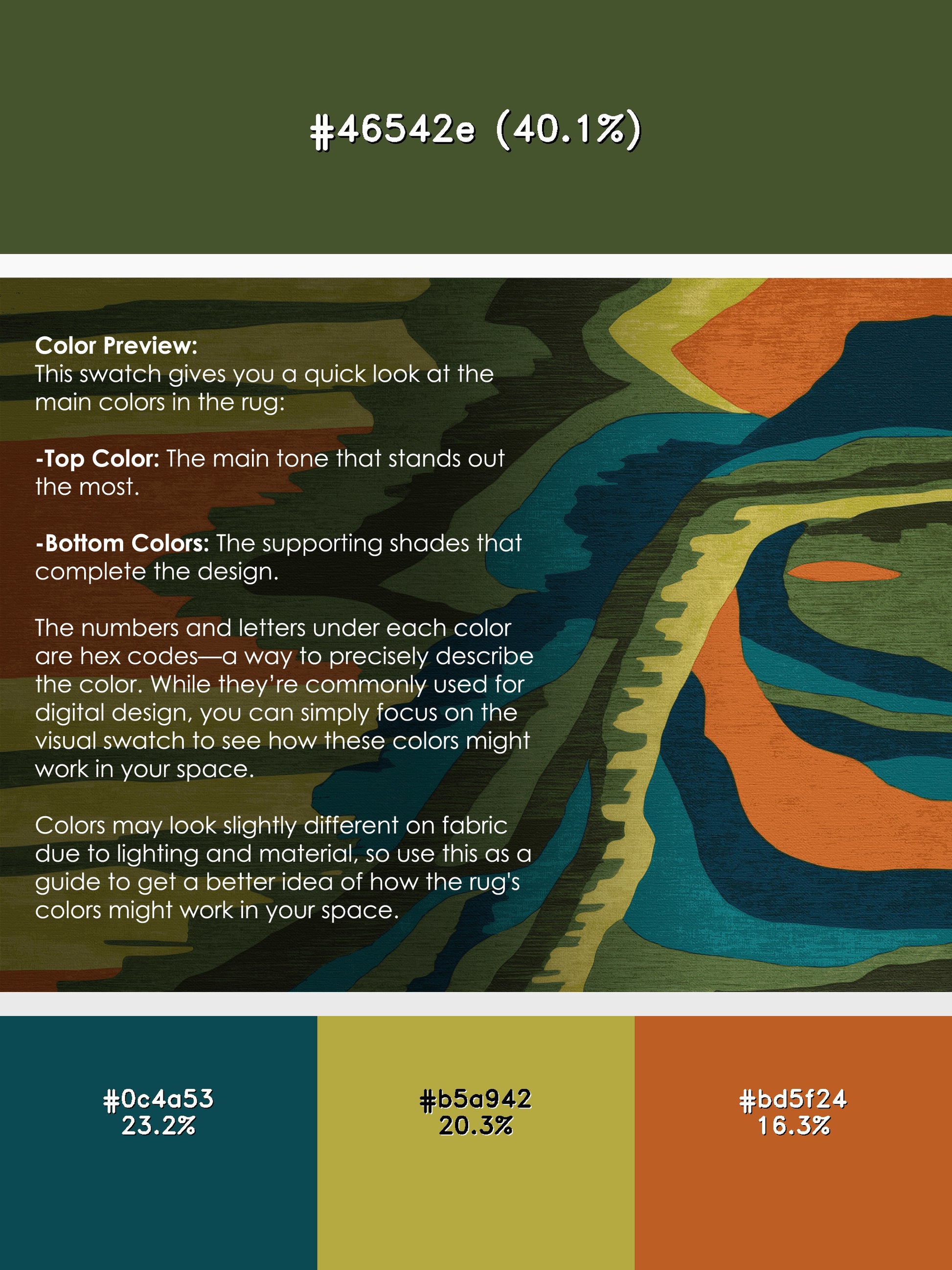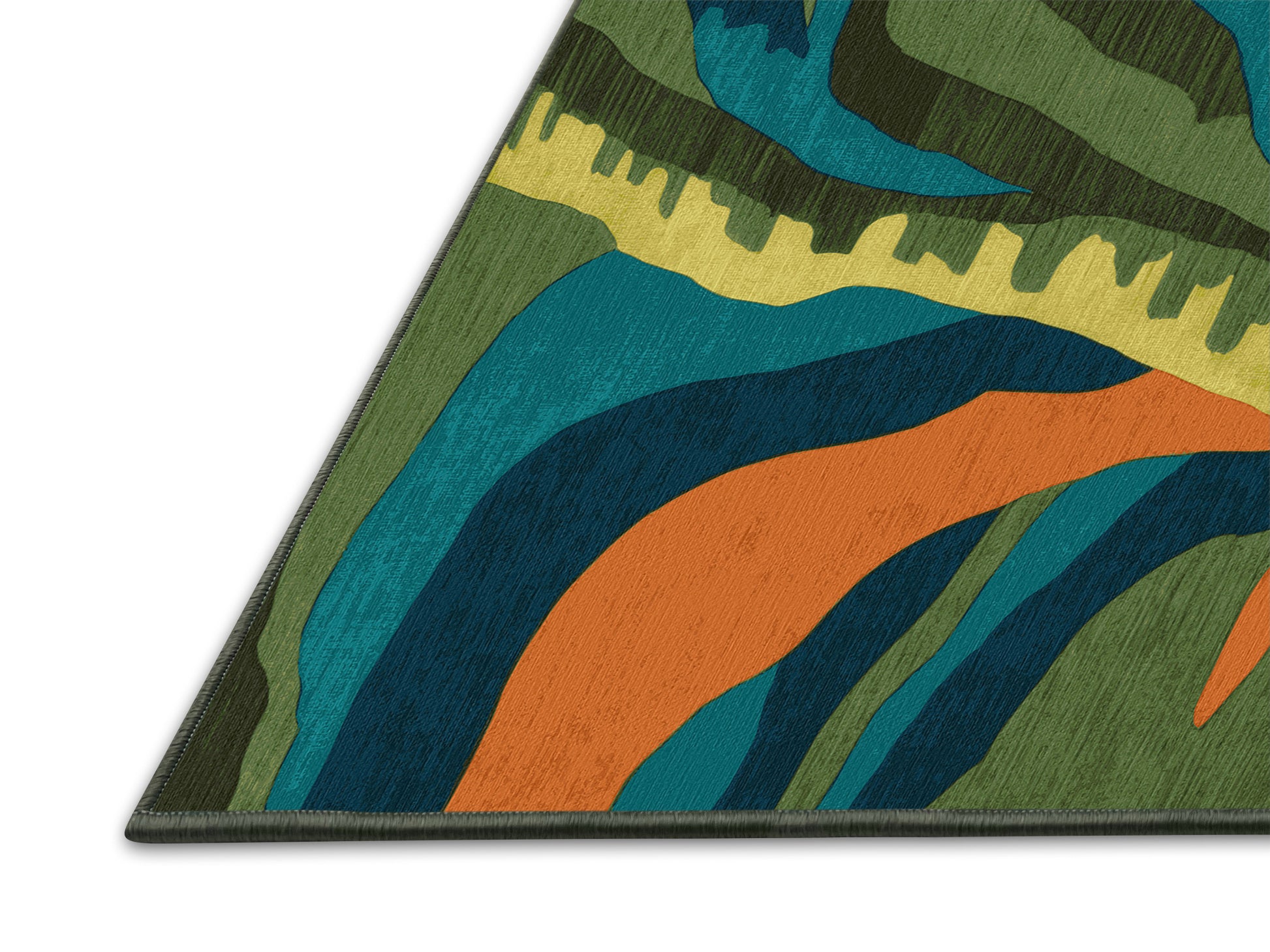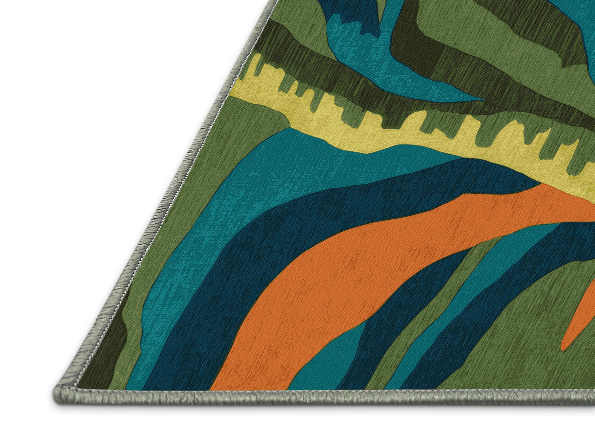 Highland Glow from the Vista Flow collection captures the rhythm and beauty of natural landscapes with its striking Hazel Green color (A medium green with earthy undertones, natural and grounding.), a vibrant tone in the Green color family. Featuring an artistic interplay of geometric shapes and organic lines, this rug evokes the fluidity of cascading hills and flowing vistas. Finished with SageGreen serging a durable edge that enhances its contemporary aesthetic this rug is crafted from premium polyester and machine-made in the USA with imported materials. Perfect for modern living rooms, dining spaces, creative home offices, or cozy bedrooms, this design blends artistic flair with versatile functionality. Available in multiple sizes, the Vista Flow collection transforms your home with dynamic patterns and timeless elegance, offering a creative touch to any decor.
