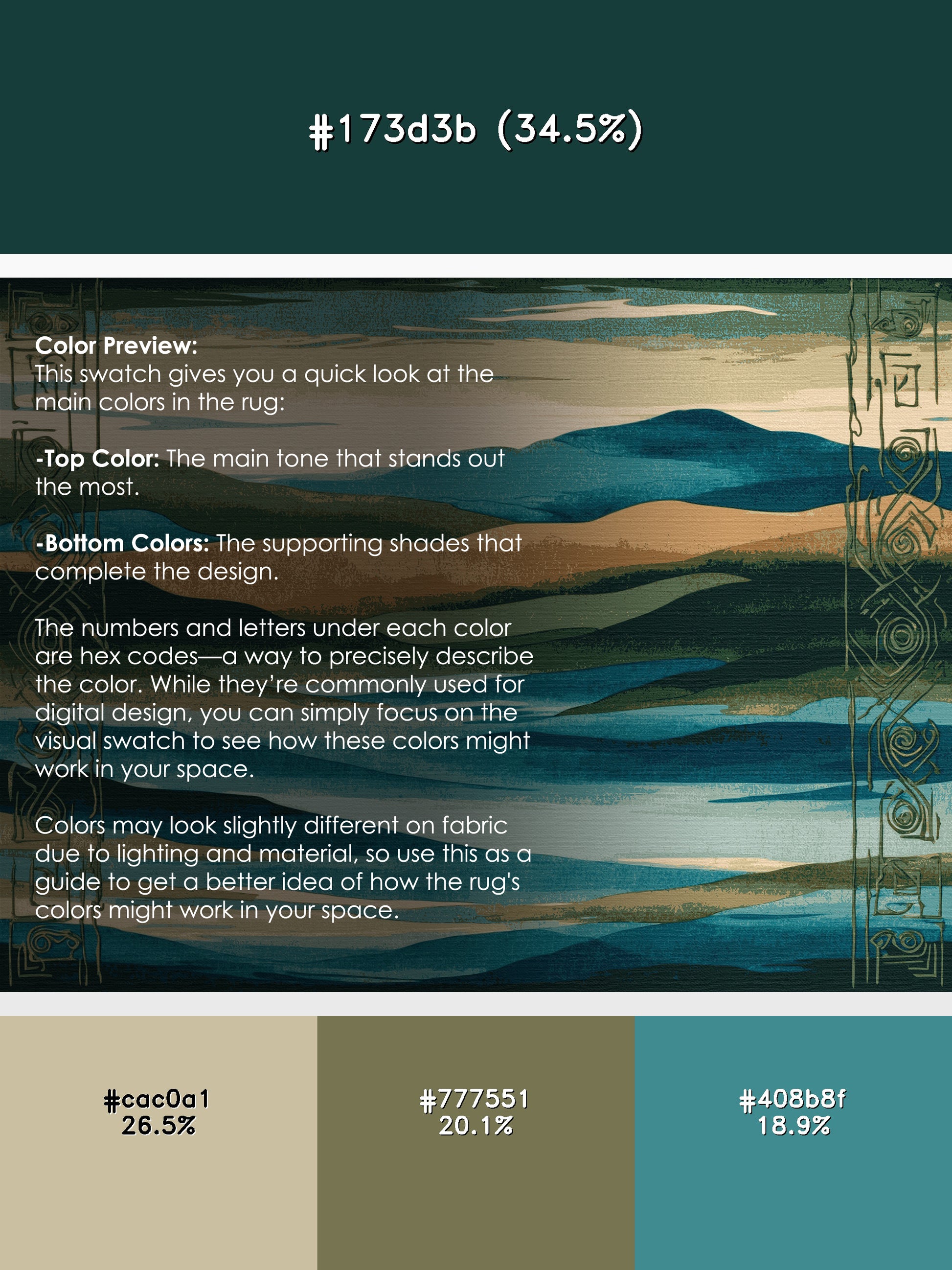 Horizon Drift from the Mystical Horizons collection captures the serene beauty of nature's fluidity with its captivating Grayish Turquoise color (A soft turquoise with gray undertones, cool and calming.), a calming tone in the Green color family. Inspired by sweeping vistas and flowing patterns, this rug features abstract, organic designs that mimic the movement of wind, water, and rolling landscapes. Finished with SageGreen serging a durable edge that enhances its refined aesthetic this rug is crafted from premium polyester and machine-made in the USA with imported materials. Perfect for creating a tranquil atmosphere in modern living rooms, serene bedrooms, or stylish home offices, this design blends natural inspiration with sophisticated artistry. Available in multiple sizes, the Mystical Horizons collection transforms any space into a serene retreat, offering a harmonious balance of style and tranquility.