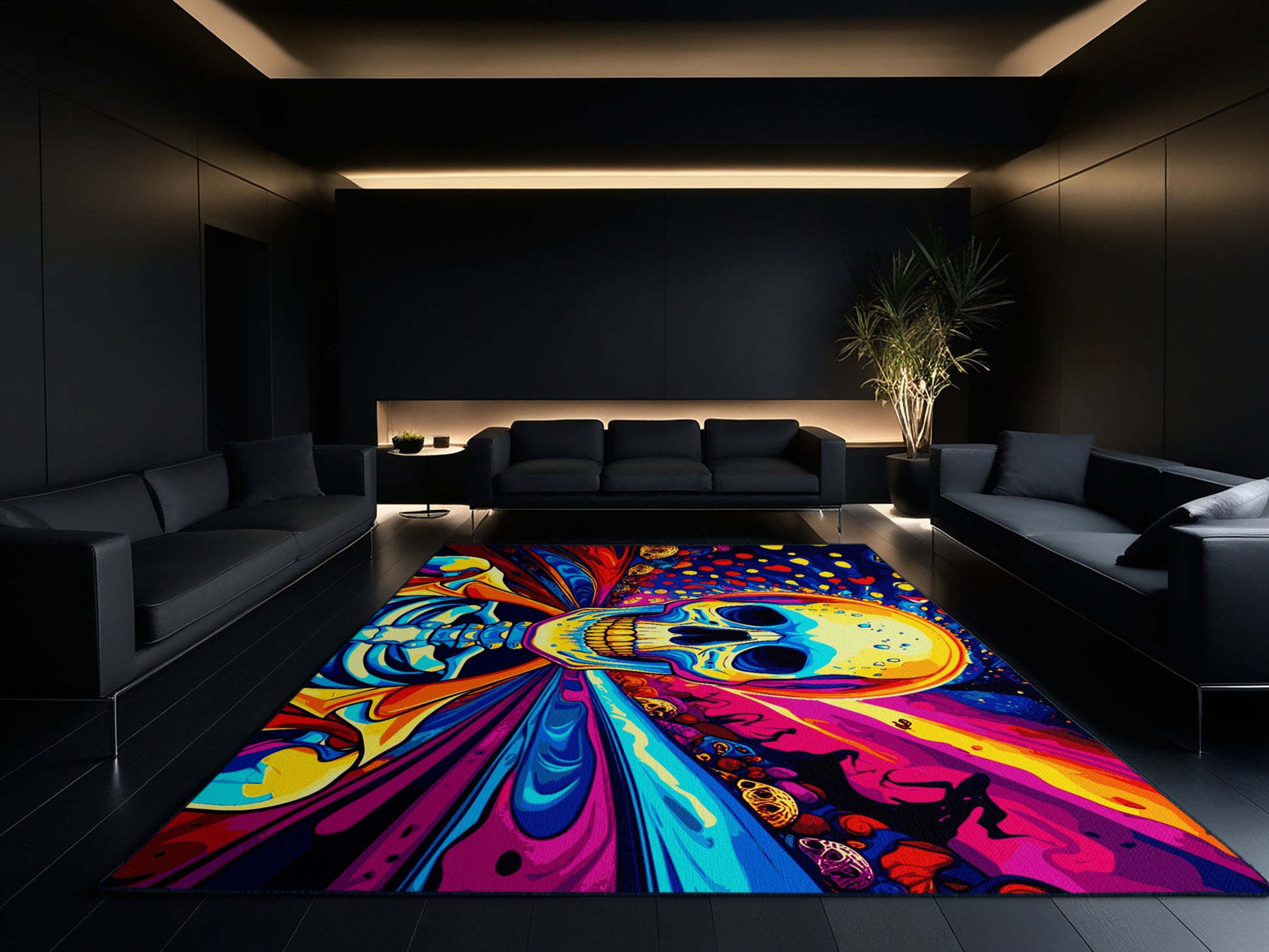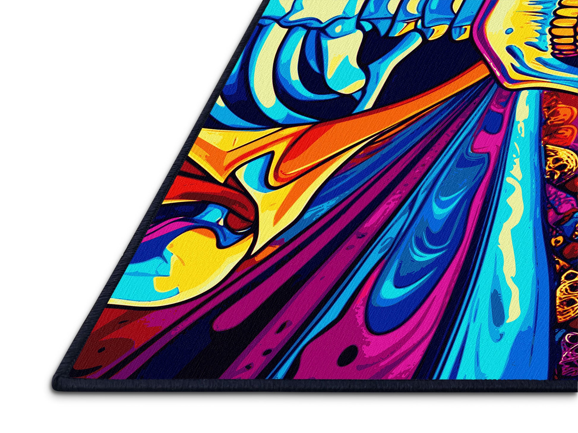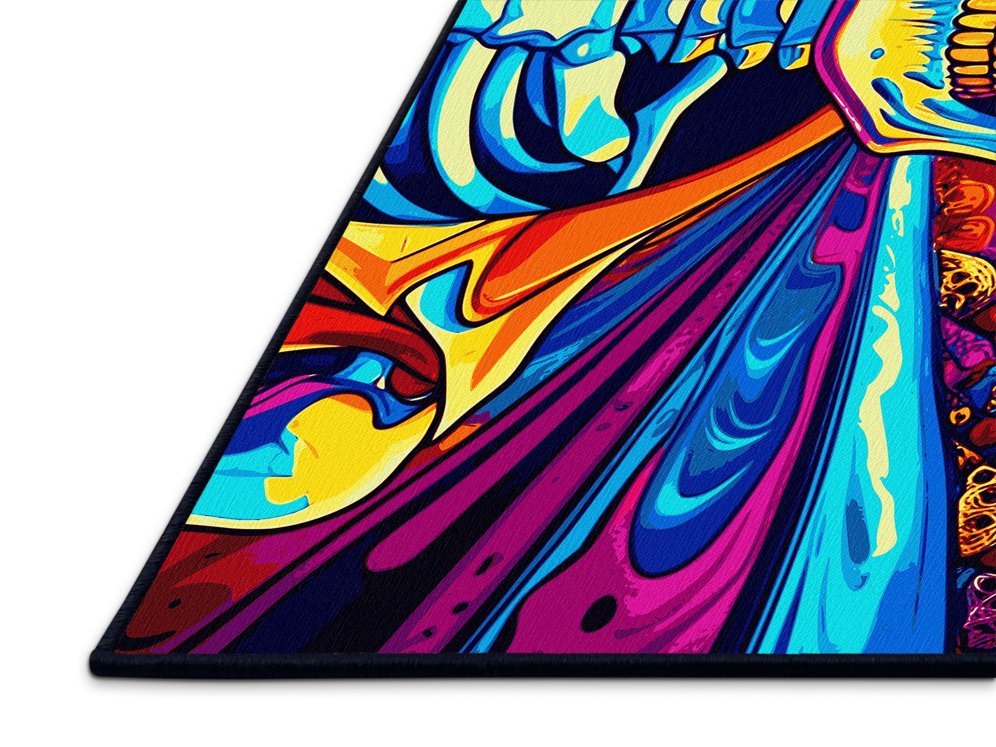 Infinity Glow from the Psychedelia Peaks collection radiates vibrant energy with its bold Purple Monster color (A bold and vibrant purple with a playful, lively character.), a striking tone in the Purple color family. Featuring swirling, kaleidoscopic patterns and electrifying neon hues inspired by the psychedelic art movement, this rug brings a sense of dynamic motion and artistic expression to your space. Finished with Navy serging a durable edge that enhances its playful and vibrant aesthetic this rug is crafted from premium polyester and machine-made in the USA with imported materials. Perfect for eclectic living rooms, retro-inspired spaces, or creative studios, this design transforms any room into a lively haven of individuality and boldness. Available in multiple sizes, the Psychedelia Peaks collection adds a dramatic, colorful statement to your decor, turning your home into a canvas of unrestrained creativity.