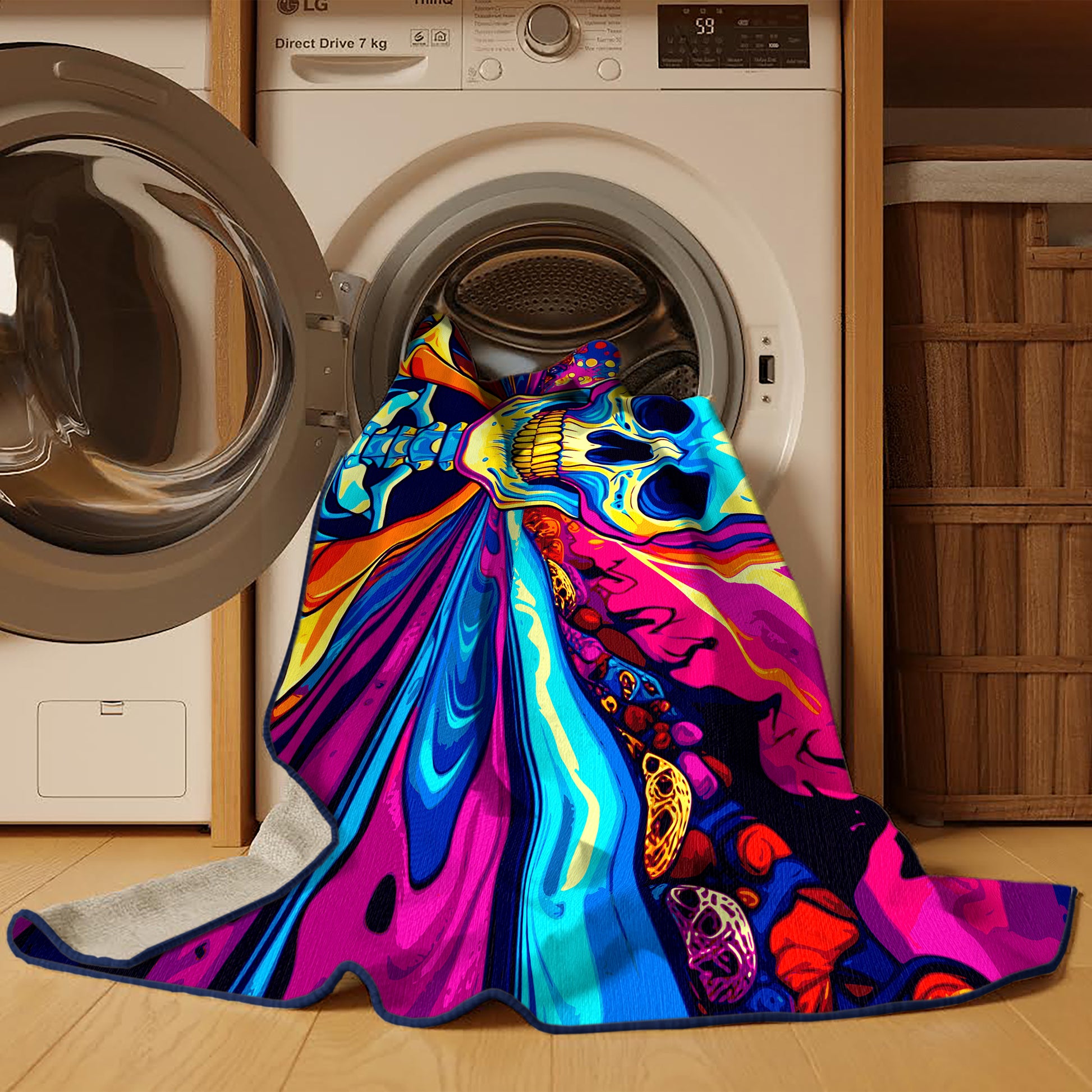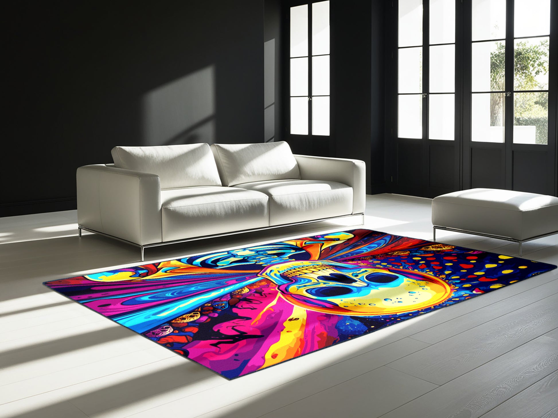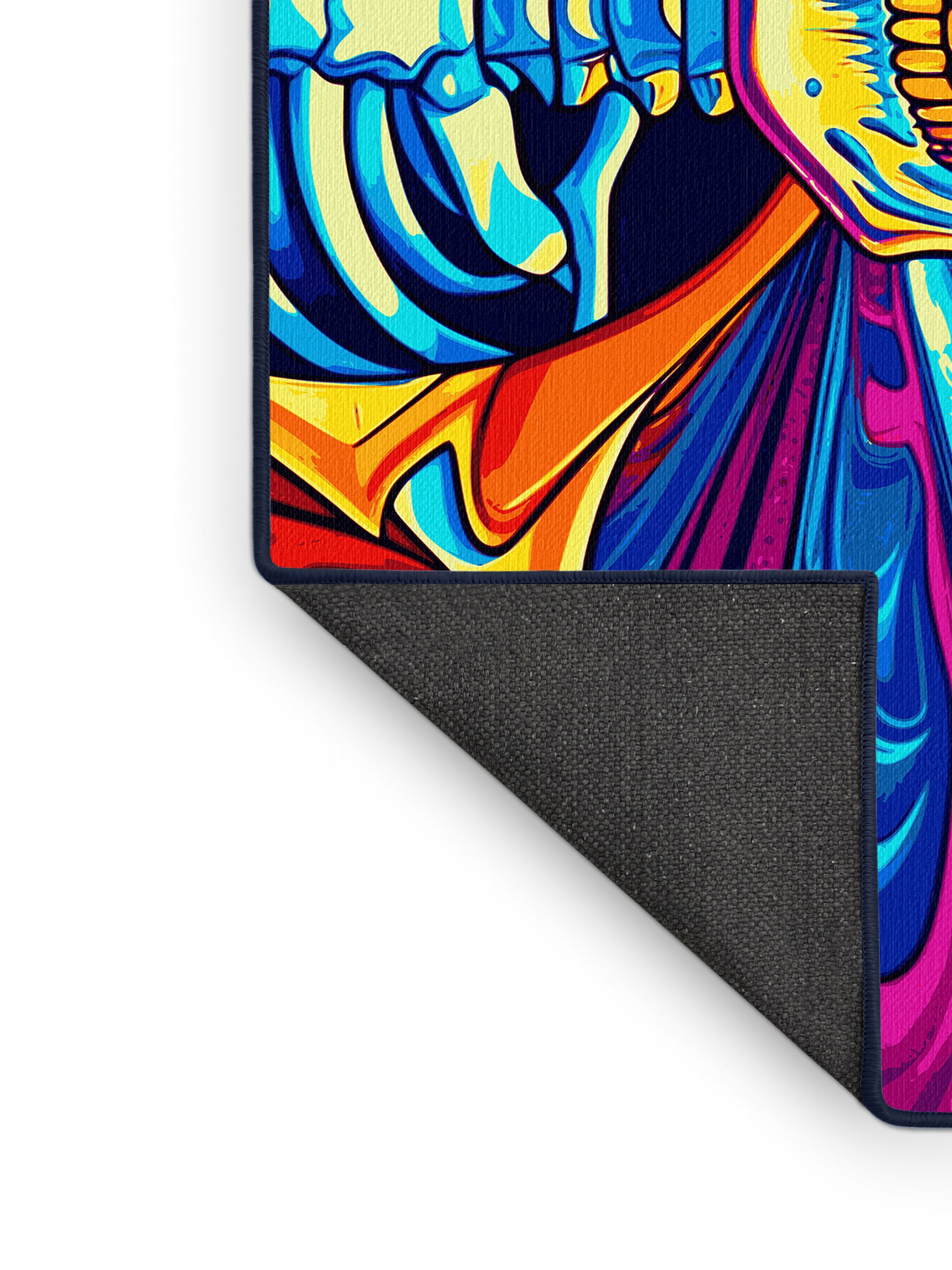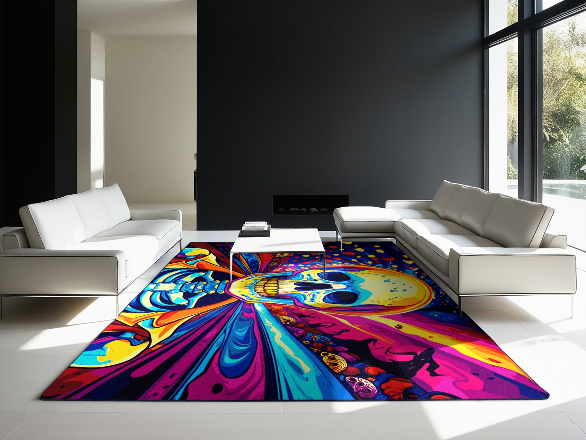 Infinity Glow from the Psychedelia Peaks collection radiates vibrant energy with its bold Purple Monster color (A bold and vibrant purple with a playful, lively character.), a striking tone in the Purple color family. Featuring swirling, kaleidoscopic patterns and electrifying neon hues inspired by the psychedelic art movement, this rug brings a sense of dynamic motion and artistic expression to your space. Finished with Navy serging a durable edge that enhances its playful and vibrant aesthetic this rug is crafted from premium polyester and machine-made in the USA with imported materials. Perfect for eclectic living rooms, retro-inspired spaces, or creative studios, this design transforms any room into a lively haven of individuality and boldness. Available in multiple sizes, the Psychedelia Peaks collection adds a dramatic, colorful statement to your decor, turning your home into a canvas of unrestrained creativity.