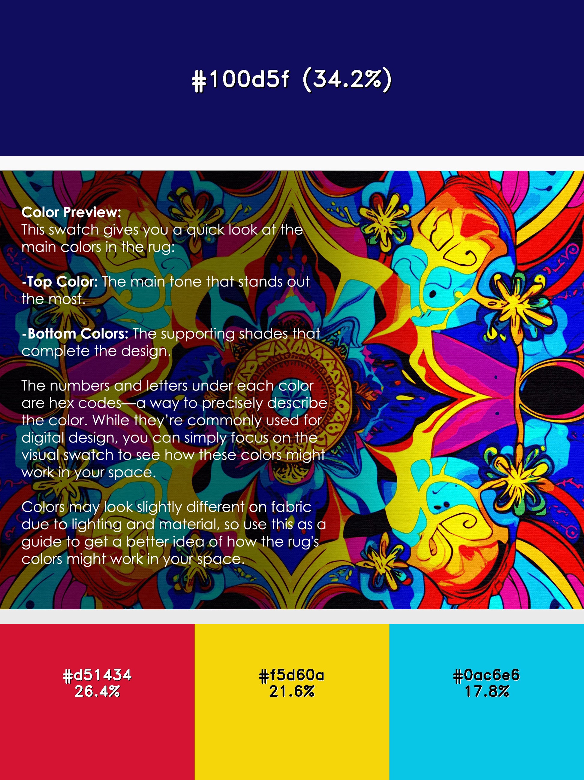 Infinity Spiral from the Psychedelia Peaks collection radiates vibrant energy with its bold Purple Monster color (A bold and vibrant purple with a playful, lively character.), a striking tone in the Purple color family. Featuring swirling, kaleidoscopic patterns and electrifying neon hues inspired by the psychedelic art movement, this rug brings a sense of dynamic motion and artistic expression to your space. Finished with Navy serging a durable edge that enhances its playful and vibrant aesthetic this rug is crafted from premium polyester and machine-made in the USA with imported materials. Perfect for eclectic living rooms, retro-inspired spaces, or creative studios, this design transforms any room into a lively haven of individuality and boldness. Available in multiple sizes, the Psychedelia Peaks collection adds a dramatic, colorful statement to your decor, turning your home into a canvas of unrestrained creativity.