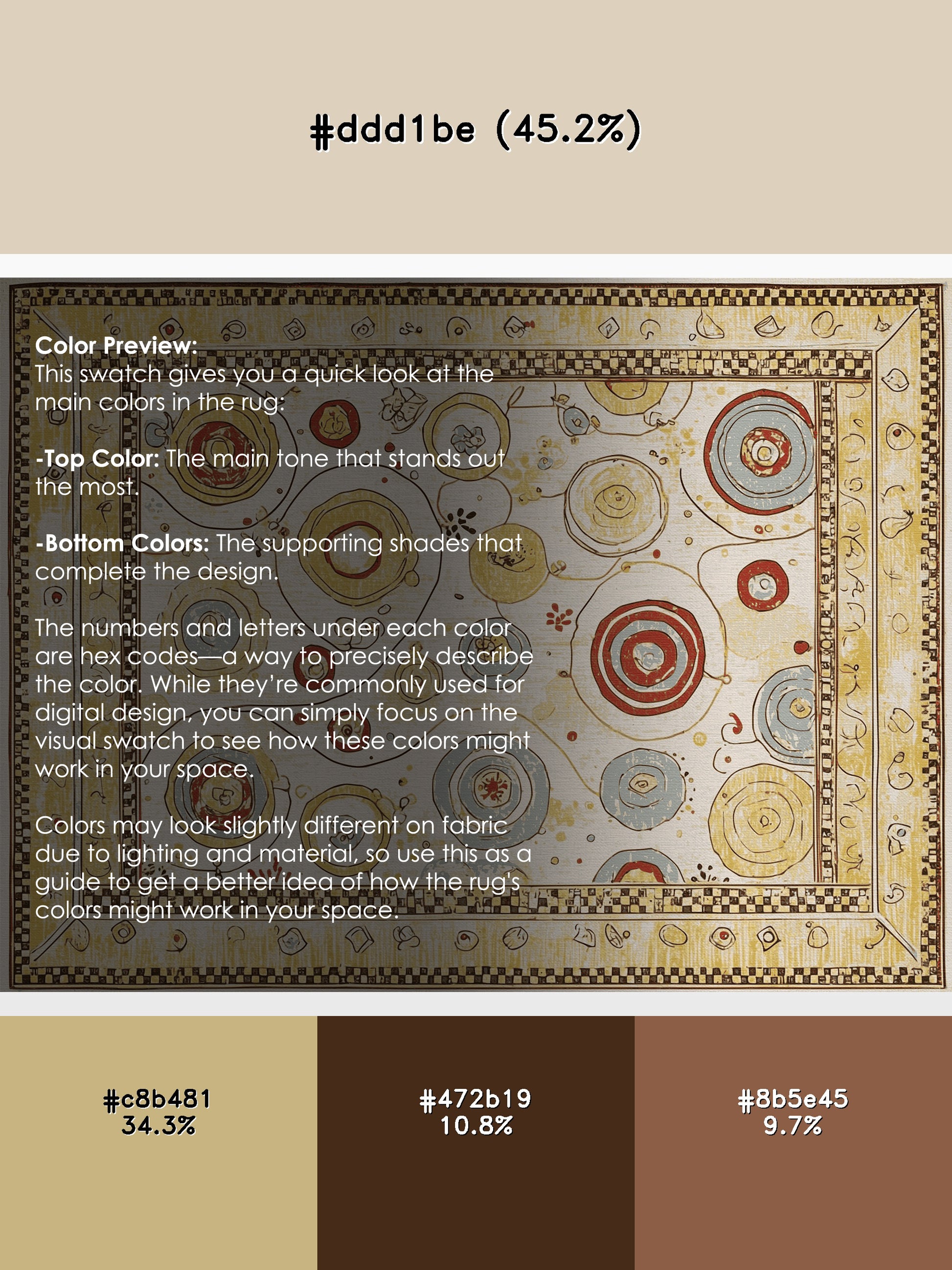 Jazzy Beam from the Retro Ruckus collection revives the bold, playful charm of mid-century modern design with its captivating Champagne color (A soft and elegant beige with a hint of golden warmth.), a vibrant tone in the Beige color family. Featuring a dynamic mix of geometric patterns, freeform swirls, and abstract shapes, this rug brings a nostalgic yet modern aesthetic to your space. Finished with White serging a durable edge that enhances its retro flair this rug is crafted from premium polyester and machine-made in the USA with imported materials. Perfect for eclectic living rooms, creative studios, or retro-inspired dining areas, this design adds warmth, personality, and energy to your decor. Available in multiple sizes, the Retro Ruckus collection seamlessly blends vintage aesthetics with contemporary functionality, transforming your home with its unique style and durable comfort.