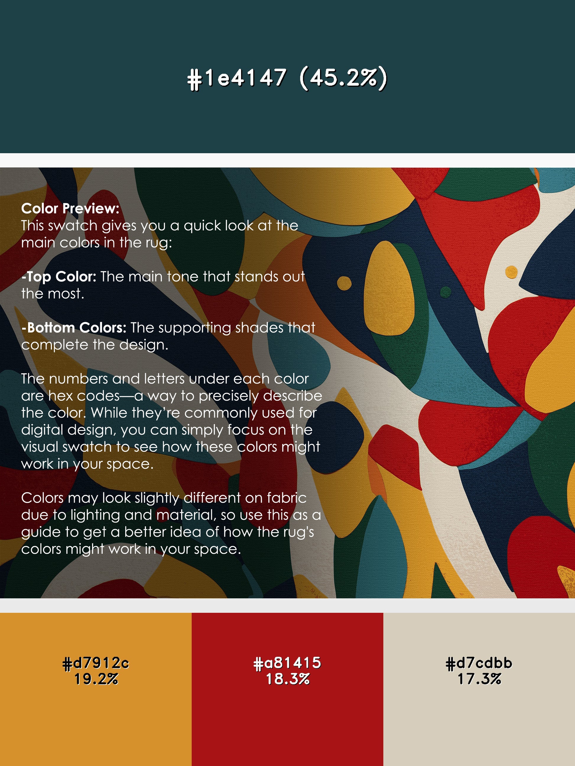 Jazzy Gleam from the Retro Ruckus collection revives the bold, playful charm of mid-century modern design with its captivating DarkSlateGray or DarkSlateGrey color (A dark and muted gray with strong green undertones.), a vibrant tone in the Gray color family. Featuring a dynamic mix of geometric patterns, freeform swirls, and abstract shapes, this rug brings a nostalgic yet modern aesthetic to your space. Finished with Navy serging a durable edge that enhances its retro flair this rug is crafted from premium polyester and machine-made in the USA with imported materials. Perfect for eclectic living rooms, creative studios, or retro-inspired dining areas, this design adds warmth, personality, and energy to your decor. Available in multiple sizes, the Retro Ruckus collection seamlessly blends vintage aesthetics with contemporary functionality, transforming your home with its unique style and durable comfort.