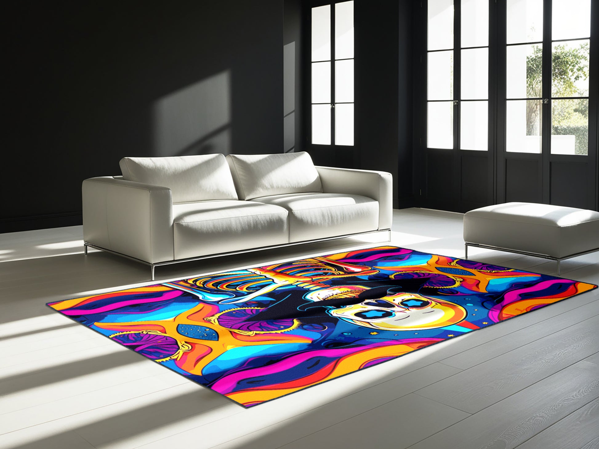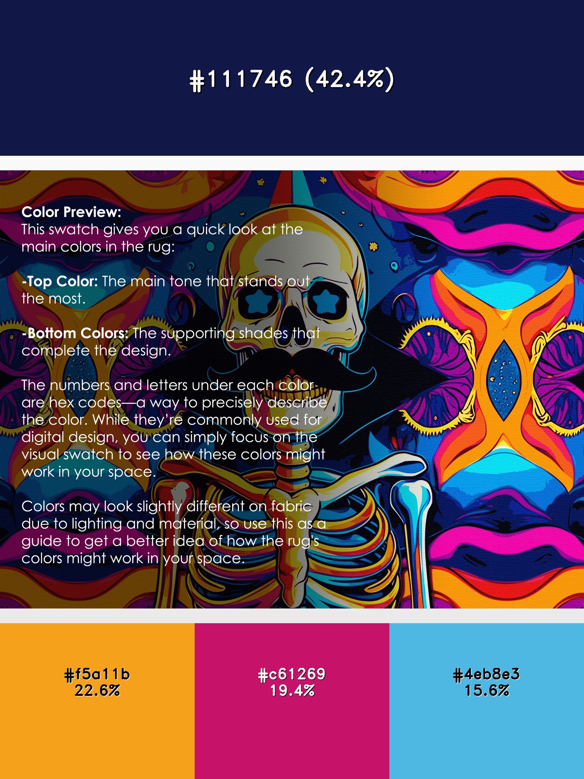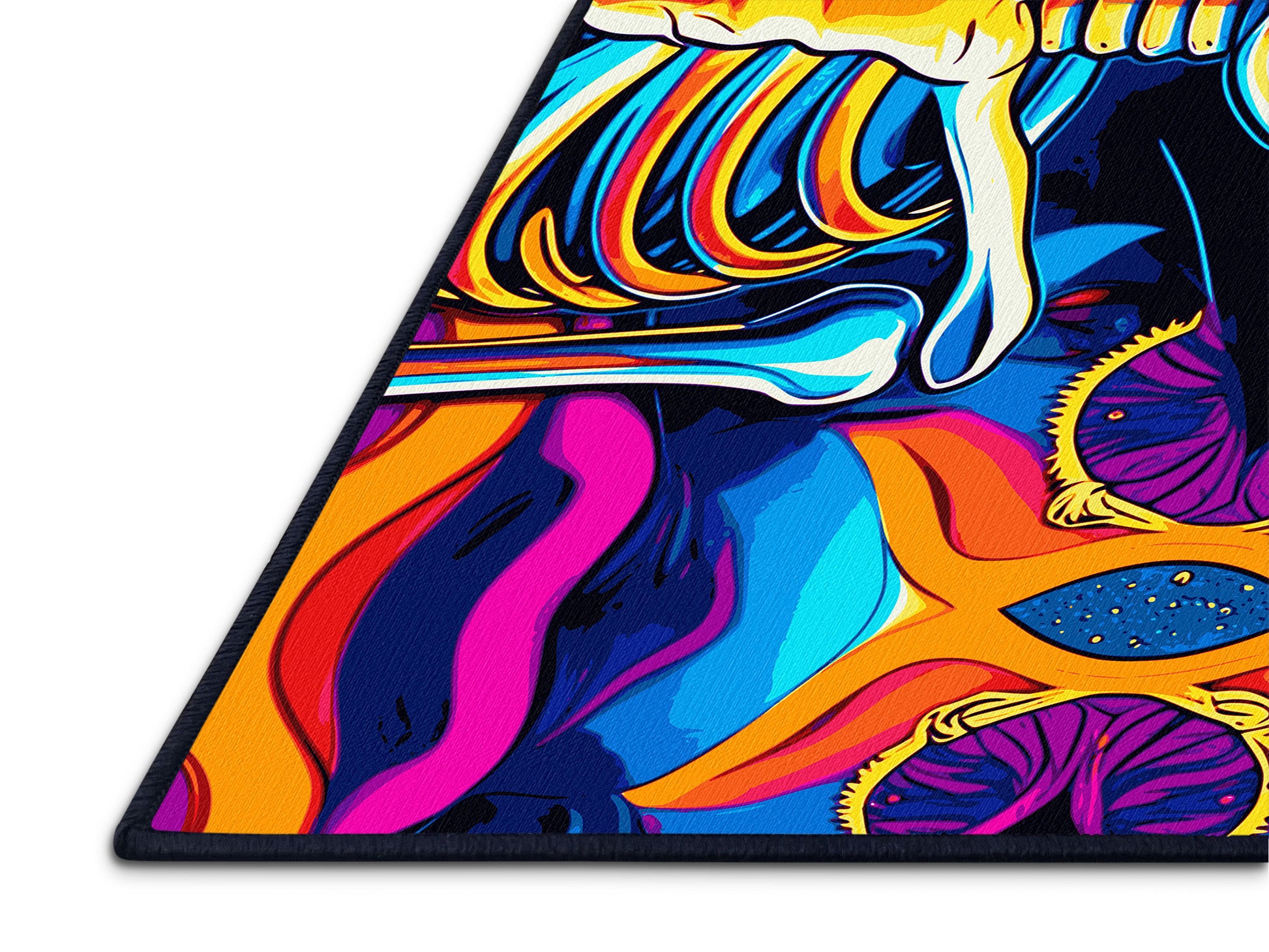 Kaleidoscope Radiance from the Psychedelia Peaks collection radiates vibrant energy with its bold Blue Whale color (A dark blue with soft purple undertones, deep and elegant.), a striking tone in the Blue color family. Featuring swirling, kaleidoscopic patterns and electrifying neon hues inspired by the psychedelic art movement, this rug brings a sense of dynamic motion and artistic expression to your space. Finished with Navy serging a durable edge that enhances its playful and vibrant aesthetic this rug is crafted from premium polyester and machine-made in the USA with imported materials. Perfect for eclectic living rooms, retro-inspired spaces, or creative studios, this design transforms any room into a lively haven of individuality and boldness. Available in multiple sizes, the Psychedelia Peaks collection adds a dramatic, colorful statement to your decor, turning your home into a canvas of unrestrained creativity.