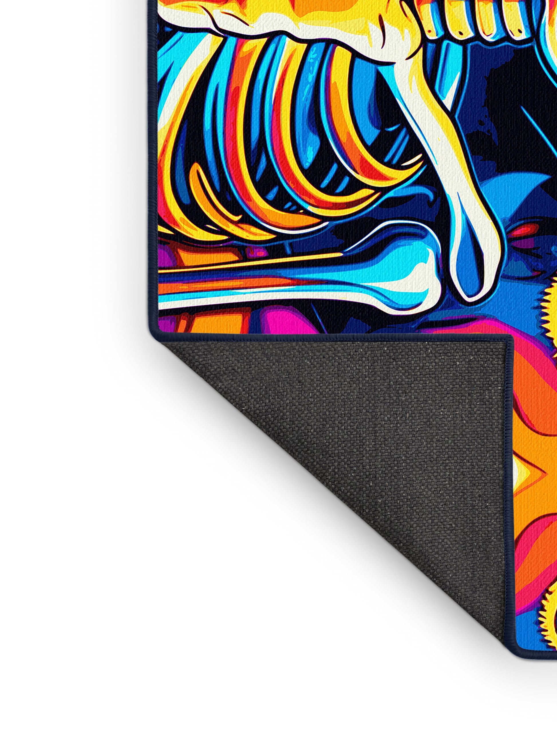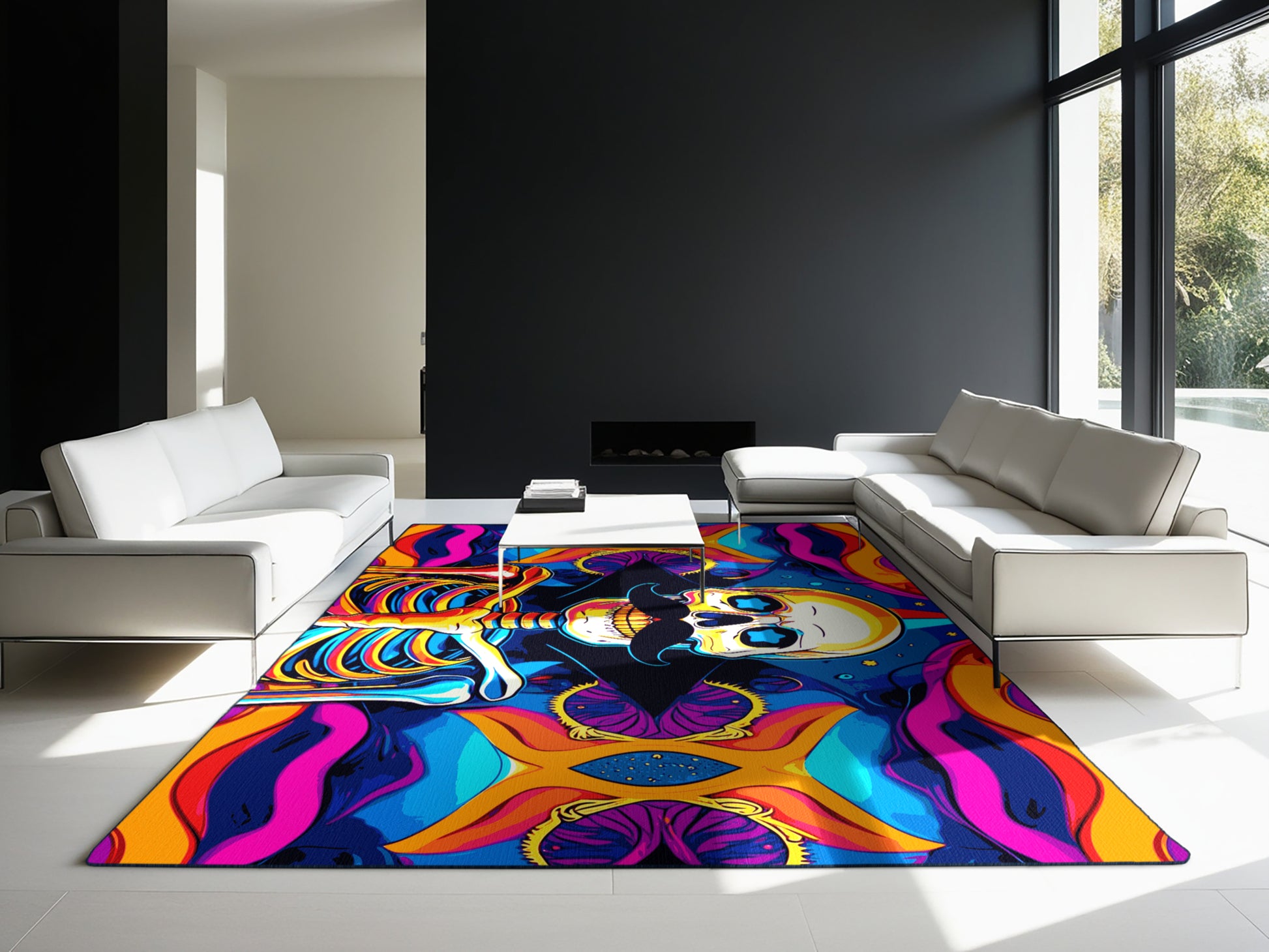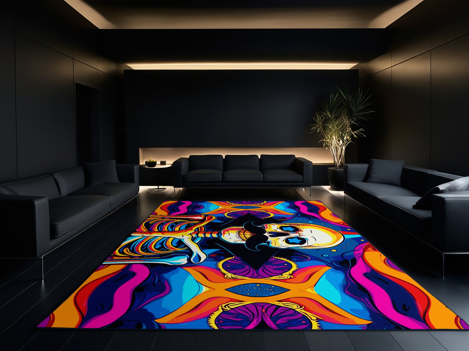 Kaleidoscope Radiance from the Psychedelia Peaks collection radiates vibrant energy with its bold Blue Whale color (A dark blue with soft purple undertones, deep and elegant.), a striking tone in the Blue color family. Featuring swirling, kaleidoscopic patterns and electrifying neon hues inspired by the psychedelic art movement, this rug brings a sense of dynamic motion and artistic expression to your space. Finished with Navy serging a durable edge that enhances its playful and vibrant aesthetic this rug is crafted from premium polyester and machine-made in the USA with imported materials. Perfect for eclectic living rooms, retro-inspired spaces, or creative studios, this design transforms any room into a lively haven of individuality and boldness. Available in multiple sizes, the Psychedelia Peaks collection adds a dramatic, colorful statement to your decor, turning your home into a canvas of unrestrained creativity.