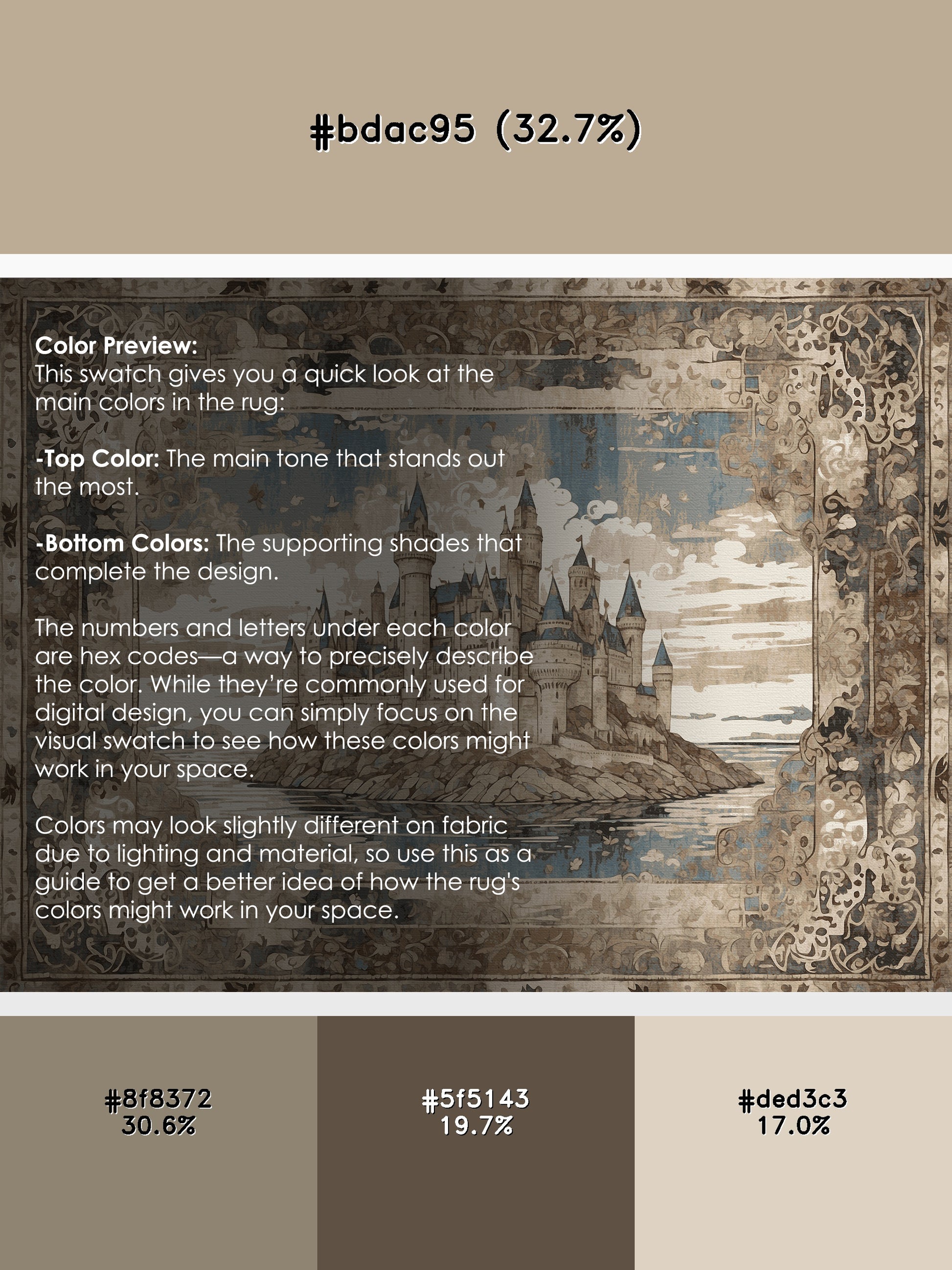 Knight's Haven from the Castle Chronicles collection brings the timeless grandeur of medieval elegance to your space with its striking Sandstone color (A soft and warm beige inspired by natural sandstone.), a rich tone in the Beige color family. Featuring intricate castle motifs and ornate detailing, this rug is finished with Gray serging a durable stitched edge that prevents fraying and enhances its refined look. Crafted from premium polyester and machine-made in the USA with imported materials, it delivers lasting quality and effortless sophistication. Perfect for study rooms, traditional living spaces, luxurious offices, and dining areas, this design combines heraldic patterns, vintage artistry, and everyday practicality. Available in multiple sizes, the Castle Chronicles collection offers a stately yet versatile style to transform your home into a regal retreat steeped in history and charm.