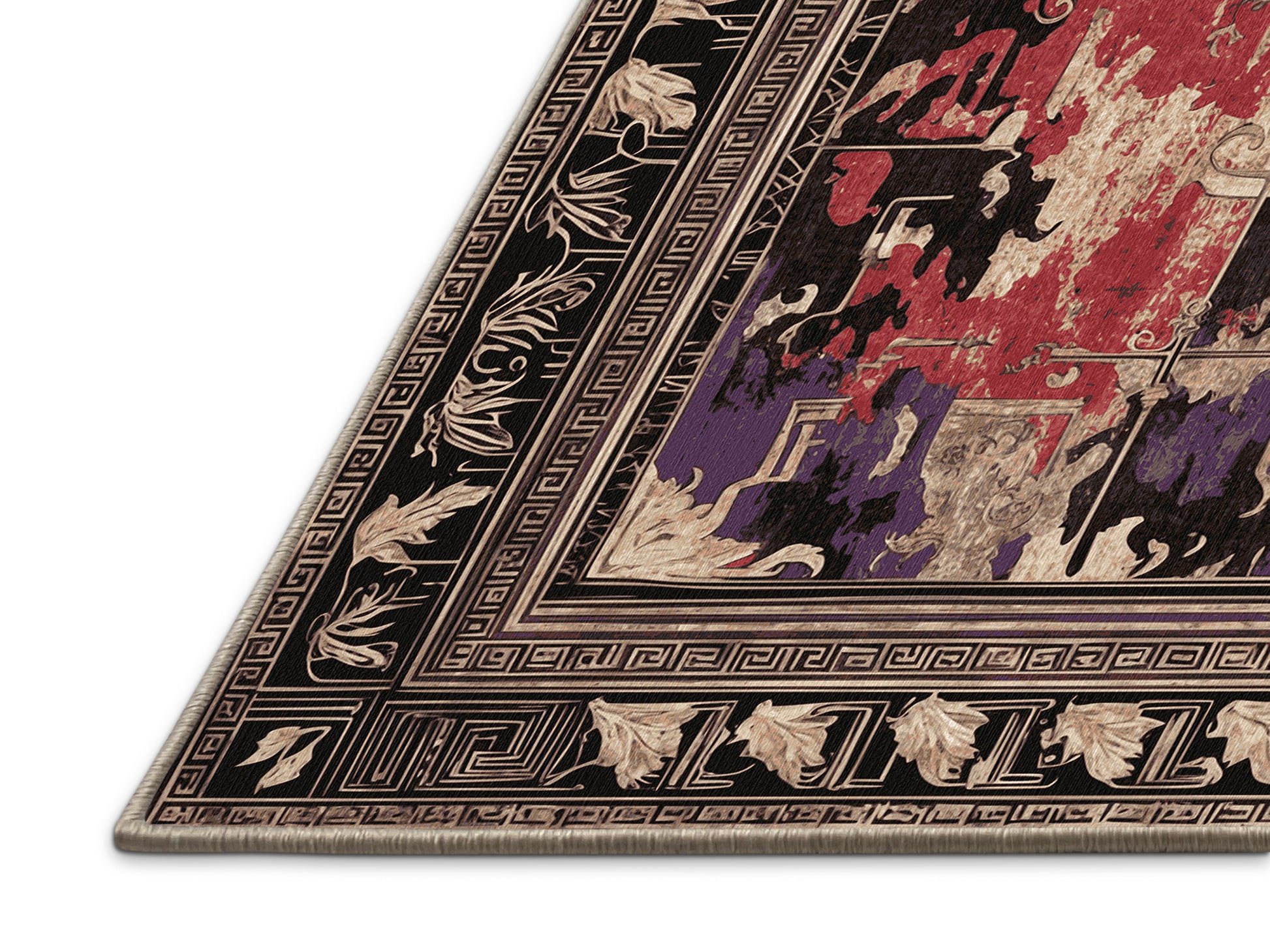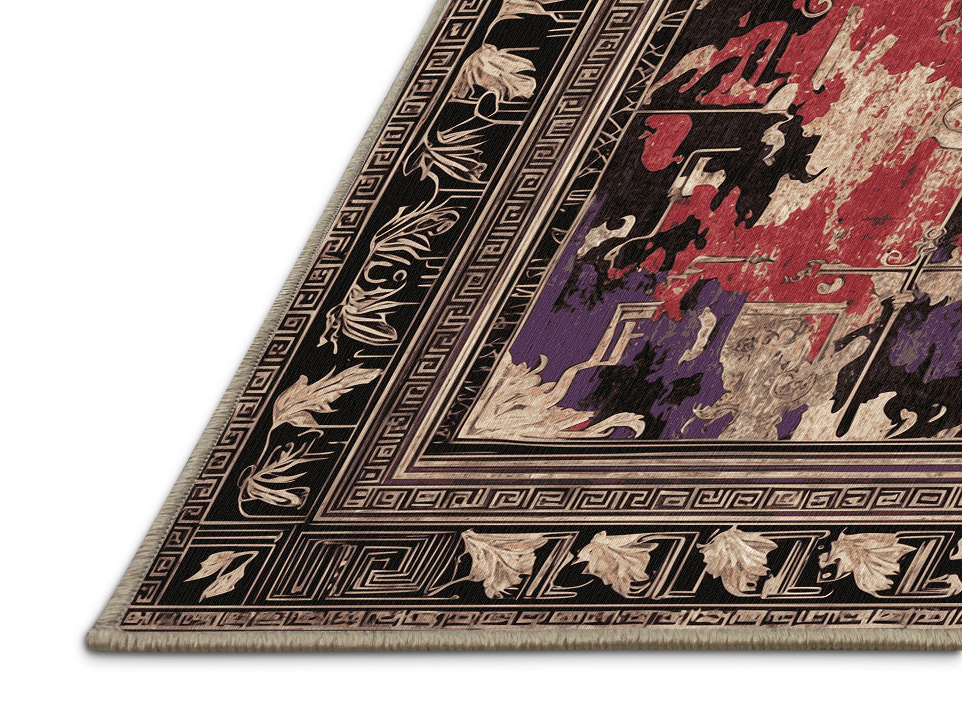 Laurel Crown from the Hellenic Grandeurs collection embodies the timeless elegance of ancient Greek artistry with its stunning Puce color (A soft and warm purple with gray undertones, subtle and refined.), a rich tone in the Purple color family. Featuring intricate geometric motifs, ornate floral patterns, and Grecian-inspired borders, this rug is finished with Beige serging a durable stitched edge that prevents fraying and adds a polished, refined look. Crafted from premium polyester and machine-made in the USA with imported materials, it combines historical grandeur with everyday practicality. Perfect for formal living rooms, sophisticated study spaces, or dining areas, this design blends classical refinement with contemporary elegance. Available in multiple sizes, the Hellenic Grandeurs collection transforms any space into a luxurious setting steeped in cultural richness and timeless sophistication.