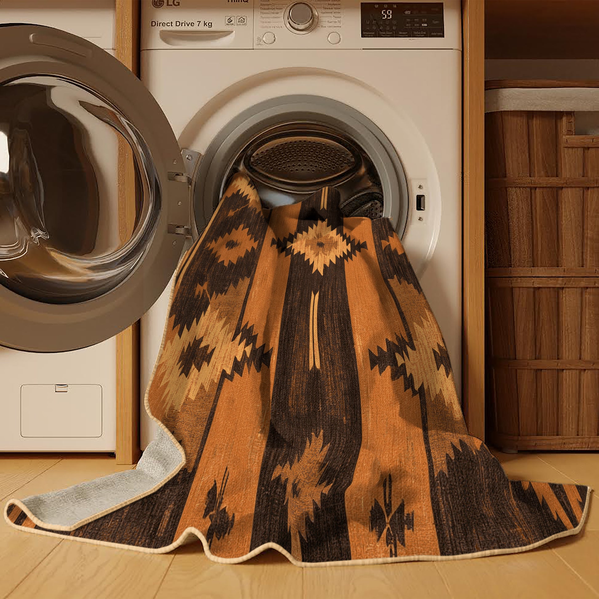 Lost Pueblo from the Heritage Southwest collection captures the rugged charm of the American Southwest with its bold Sienna (W3C) color (A warm, reddish-brown inspired by natural pigments.), a striking tone in the Brown color family. Inspired by traditional Navajo artistry and desert landscapes, this rug features geometric patterns and tribal-inspired designs that evoke cultural heritage and timeless beauty. Finished with LightBrown serging a durable stitched edge that prevents fraying and enhances its rustic appeal this rug is crafted from premium polyester and machine-made in the USA with imported materials. Perfect for grounding a living room, adding warmth to a bedroom, or enhancing a dining area, this design seamlessly complements rustic, bohemian, or modern interiors. Available in multiple sizes, the Heritage Southwest collection brings the spirit of the desert into your home with its warm tones and artisanal charm.