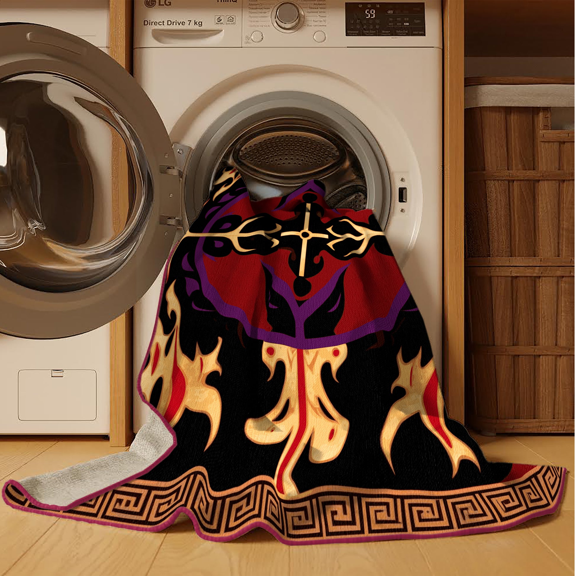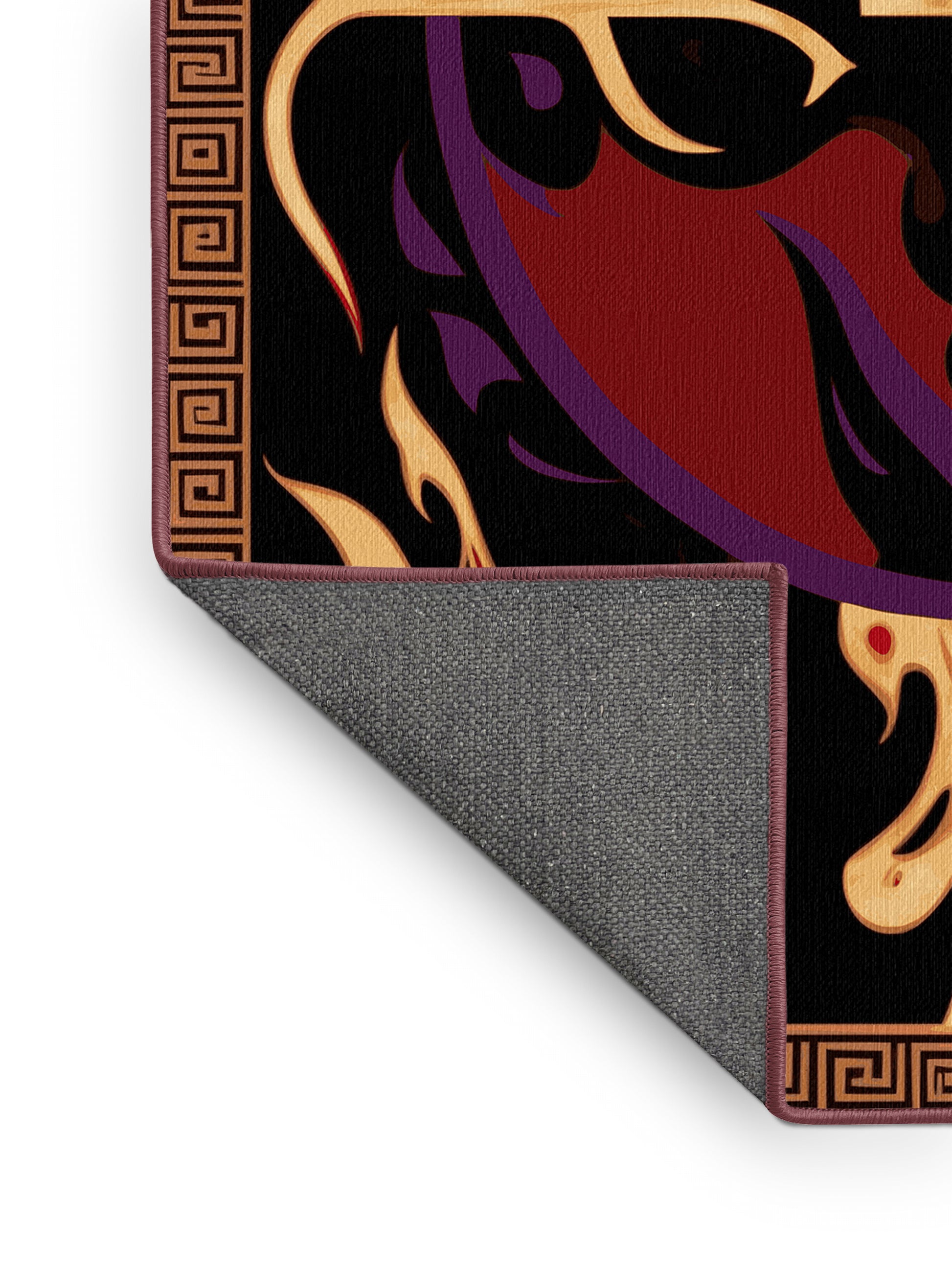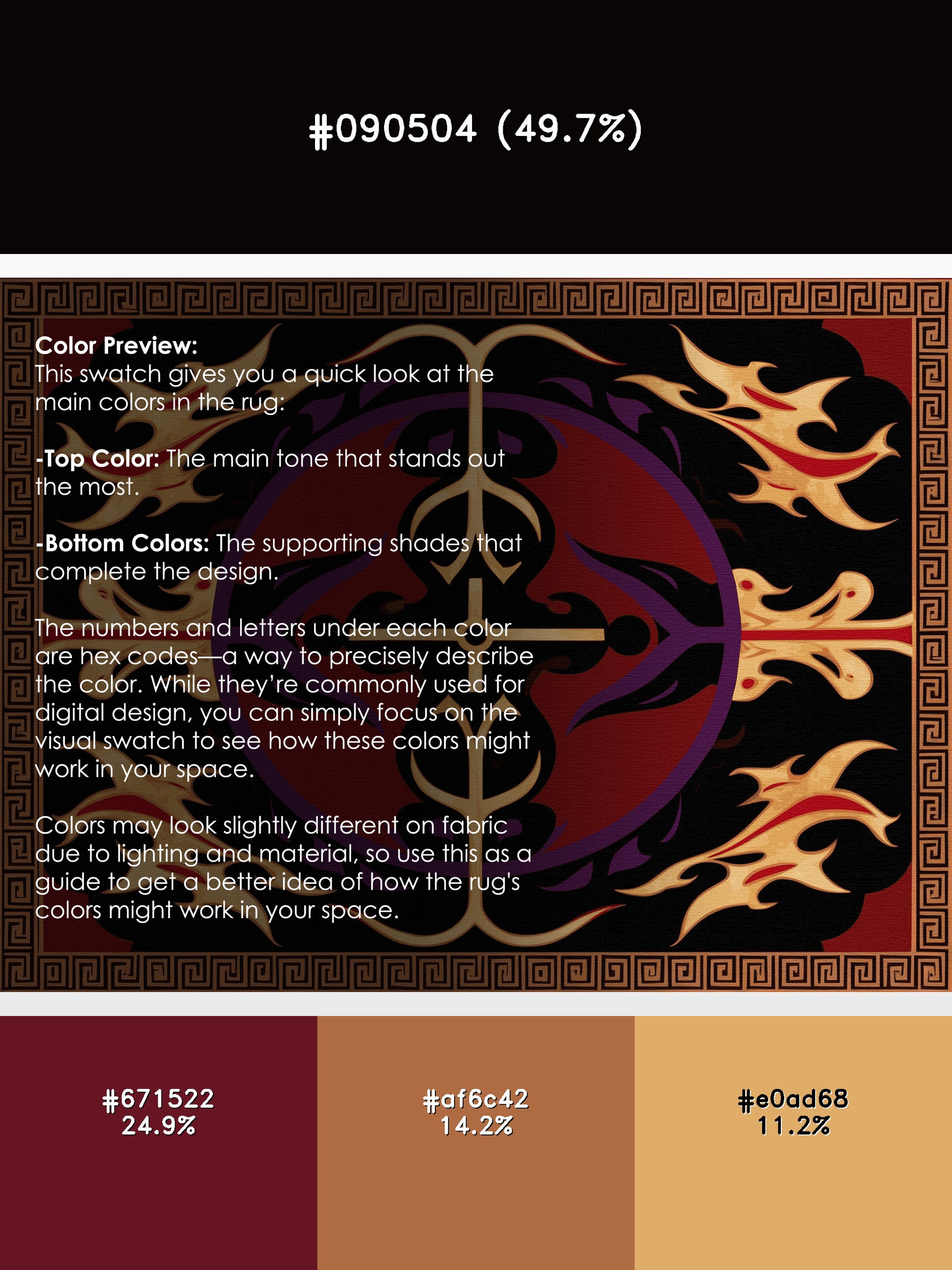 Luminous Fleur from the Gilded Mythos collection embodies the drama and opulence of ancient mythology with its captivating Velvet Maroon color (A soft and warm maroon with a velvety finish.), a bold tone in the Purple color family. Featuring intricate patterns reminiscent of mythological symbols and lavish gilded accents, this rug is finished with Rose serging a durable stitched edge that prevents fraying and enhances its regal aesthetic. Crafted from premium polyester and machine-made in the USA with imported materials, it offers both timeless elegance and lasting durability. Perfect for grand living spaces, formal dining rooms, or statement entryways, this design weaves together sophistication and mystique to create a bold focal point. Available in multiple sizes, the Gilded Mythos collection transforms any room into a space of mythical grandeur and artistic allure.