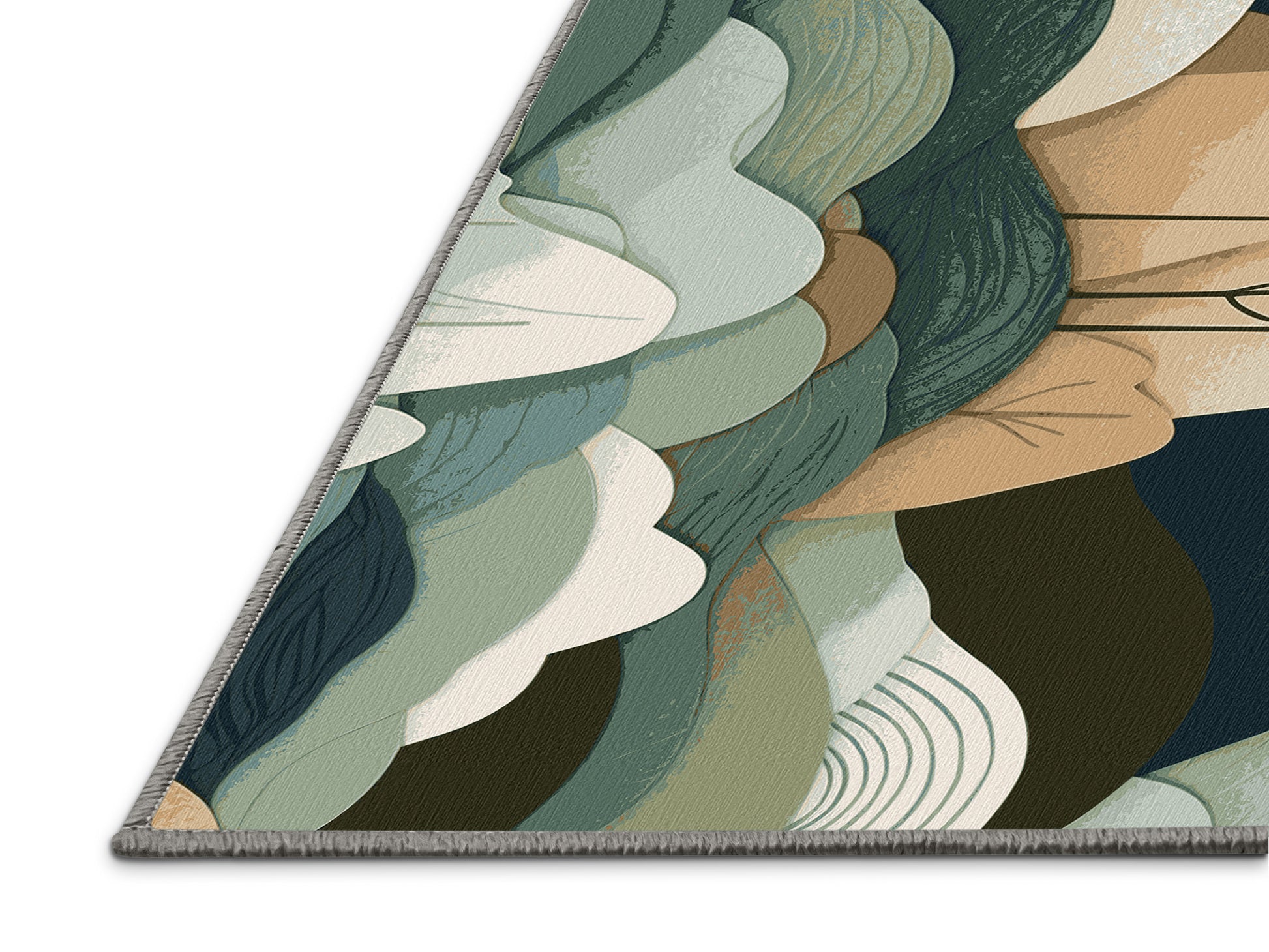 Lunar Embers from the Mystical Horizons collection captures the serene beauty of nature's fluidity with its captivating Sage Green color (A soft and muted green with a touch of gray, calm and soothing.), a calming tone in the Green color family. Inspired by sweeping vistas and flowing patterns, this rug features abstract, organic designs that mimic the movement of wind, water, and rolling landscapes. Finished with Gray serging a durable edge that enhances its refined aesthetic this rug is crafted from premium polyester and machine-made in the USA with imported materials. Perfect for creating a tranquil atmosphere in modern living rooms, serene bedrooms, or stylish home offices, this design blends natural inspiration with sophisticated artistry. Available in multiple sizes, the Mystical Horizons collection transforms any space into a serene retreat, offering a harmonious balance of style and tranquility.