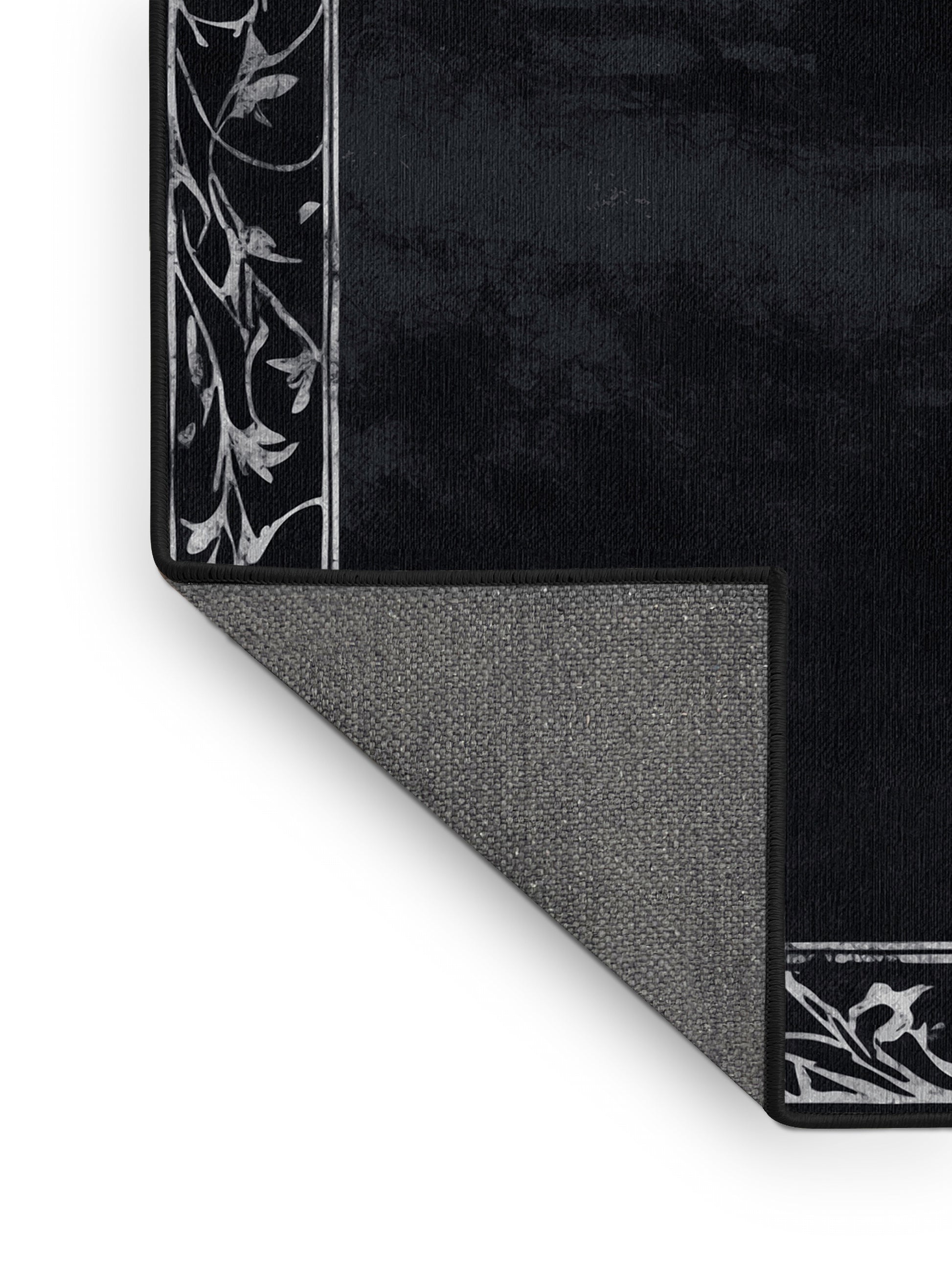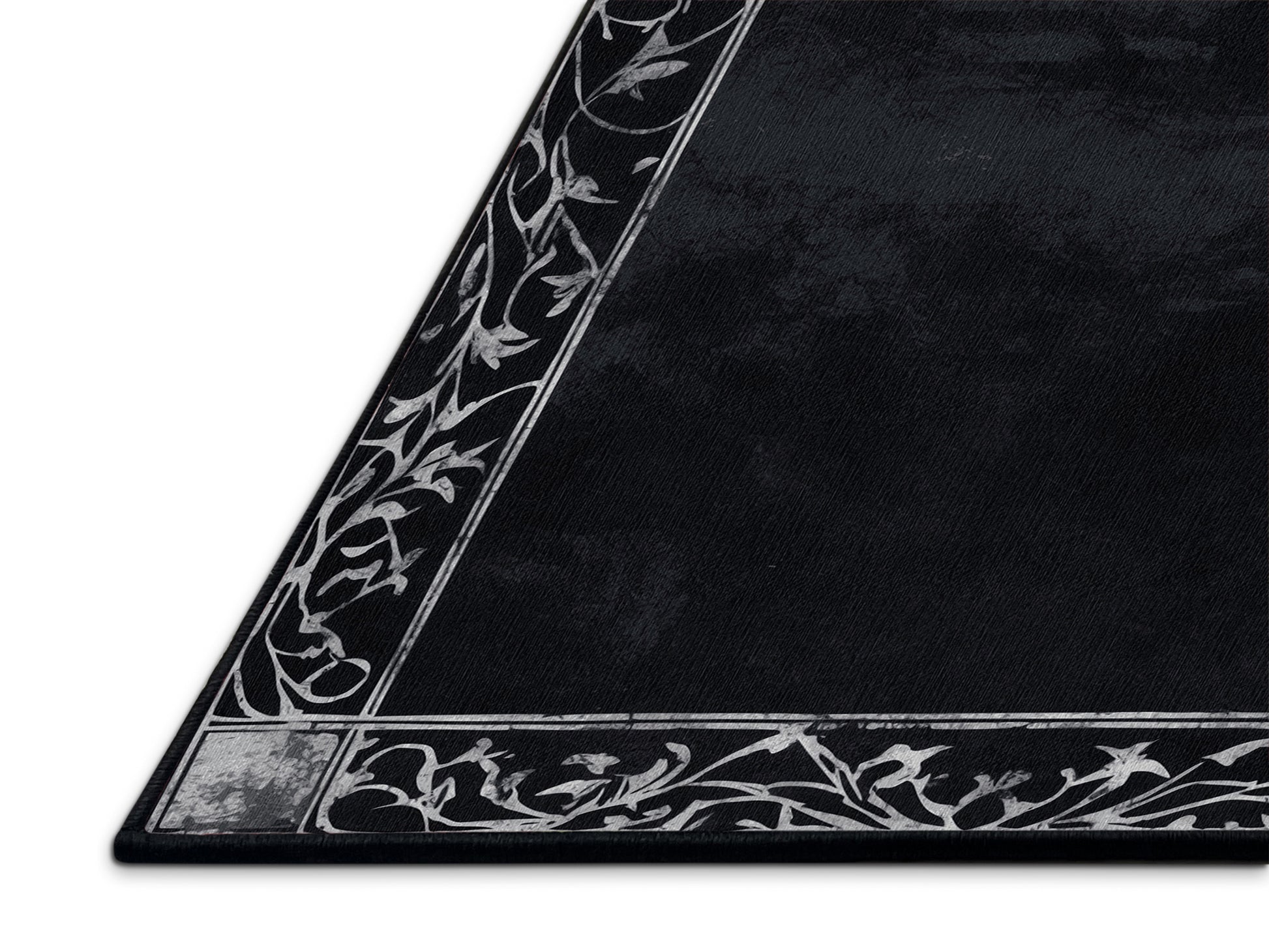 Lunar Glow from the Nocturne Elegance collection exudes timeless sophistication with its captivating Gunmetal color (A deep, metallic gray with hints of green and blue.), a rich tone in the Gray color family. Featuring intricate baroque-inspired patterns and swirling vine designs, this rug creates a sense of depth and refined elegance. Finished with Black serging a durable edge that enhances its luxurious aesthetic this rug is crafted from premium polyester and machine-made in the USA with imported materials. Perfect for formal dining rooms, chic living areas, or cozy bedrooms, this design balances bold drama with subtle charm, complementing both contemporary and traditional interiors. Available in multiple sizes, the Nocturne Elegance collection transforms your home into a haven of understated grandeur and classic refinement.