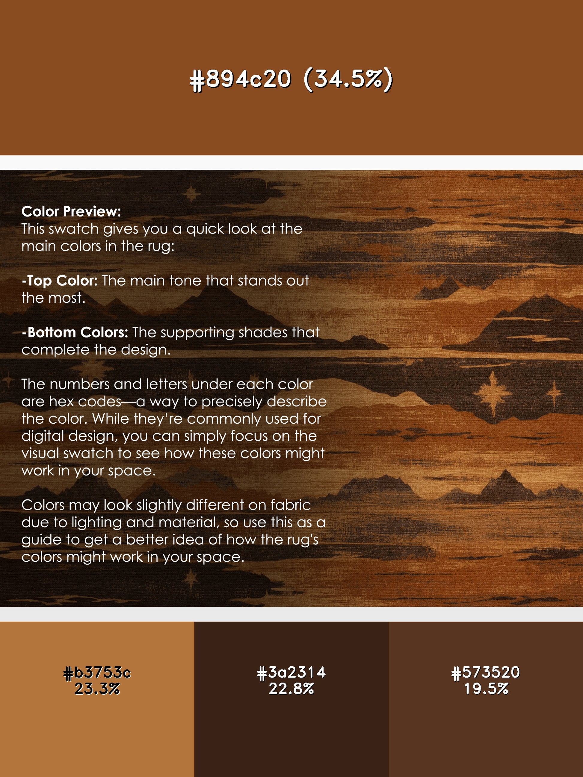 Lunar Rise from the Desert Horizons collection captures the raw beauty of desert landscapes with its stunning Milk Chocolate color (A soft and sweet brown, like creamy milk chocolate.), a warm tone in the Brown color family. Featuring organic, flowing patterns inspired by sunlit dunes and expansive horizons, this rug is finished with Black serging a durable stitched edge that prevents fraying and enhances its refined look. Crafted from premium polyester and machine-made in the USA with imported materials, it combines natural elegance with long-lasting durability. Perfect for cozy living rooms, warm bedrooms, or bohemian-inspired spaces, this design brings texture, warmth, and timeless charm into your home. Available in multiple sizes, the Desert Horizons collection offers a versatile foundation for rustic, modern, or eclectic interiors, delivering a cozy yet sophisticated vibe.