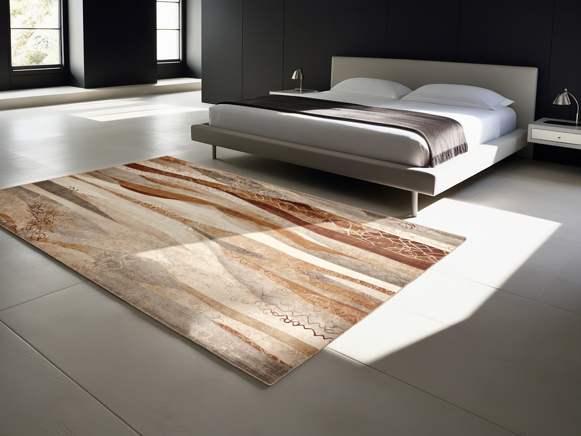 Lunar Tides from the Dunes of Light collection reflects the serene beauty of sunlit sands with its elegant Tan (W3C) color (A classic tan with a soft and neutral appearance.), a soft tone in the Beige color family. Featuring flowing organic patterns and intricate detailing, this rug is finished with Beige serging a refined stitched edge that prevents fraying and adds a polished look. Crafted from premium polyester and machine-made in the USA with imported materials, it delivers both timeless style and everyday durability. Perfect for living rooms, cozy bedrooms, or serene reading nooks, this design evokes the tranquility of sunlit landscapes, blending natural beauty with sophisticated charm. Available in multiple sizes, the Dunes of Light collection offers a versatile foundation for modern, transitional, or traditional interiors, infusing your home with warmth and elegance.