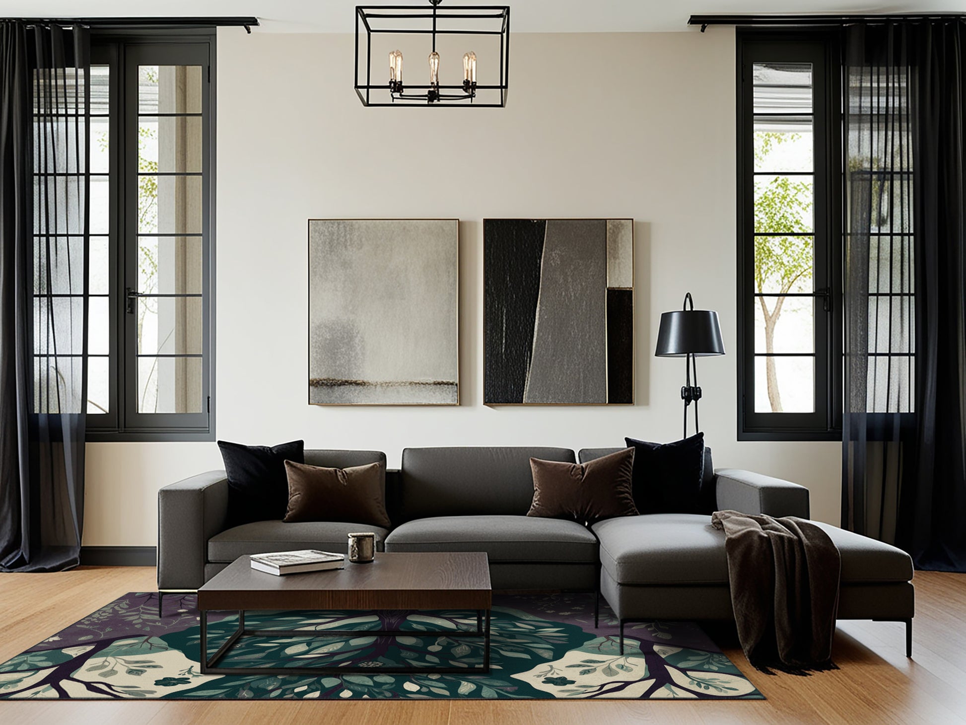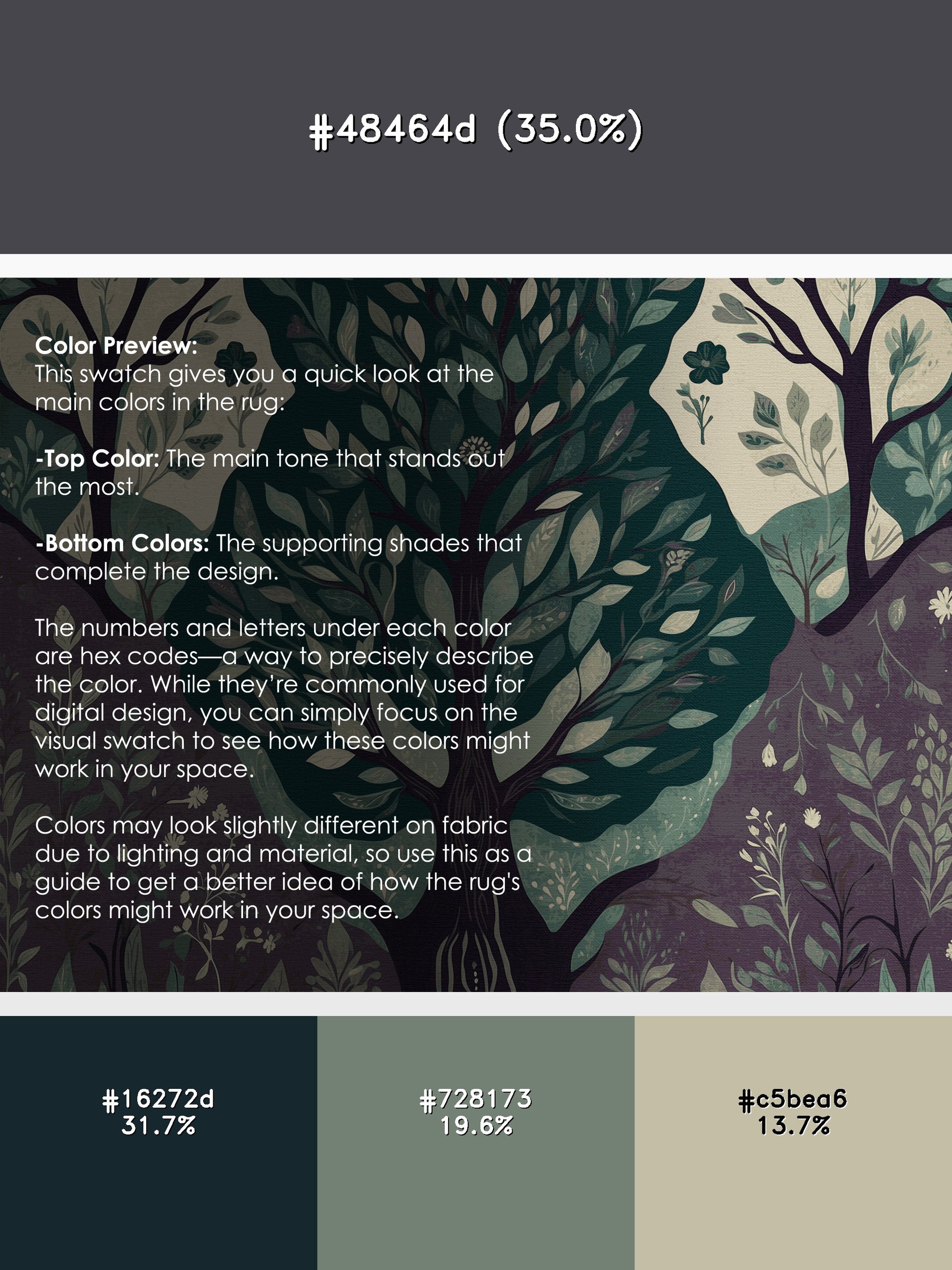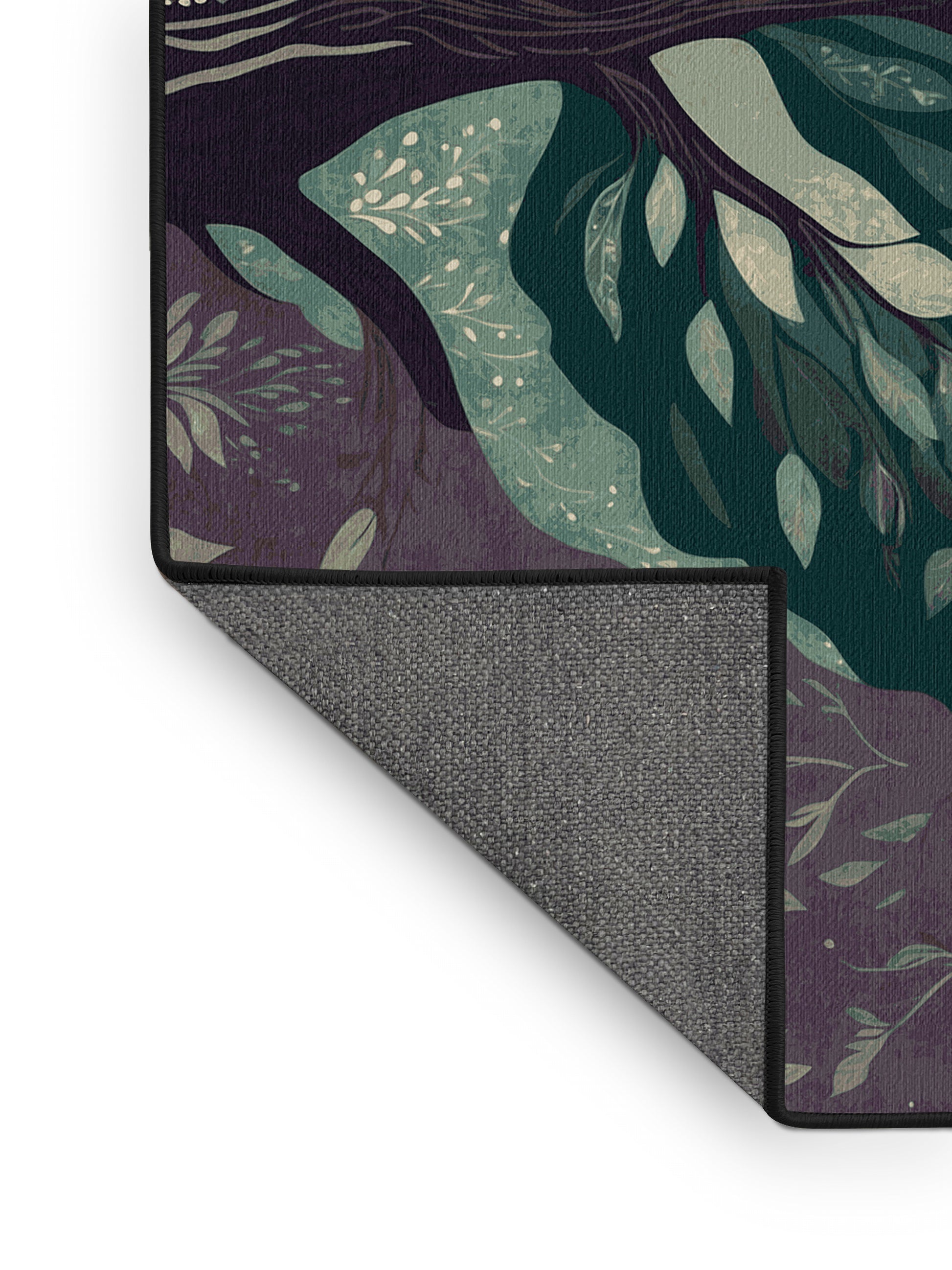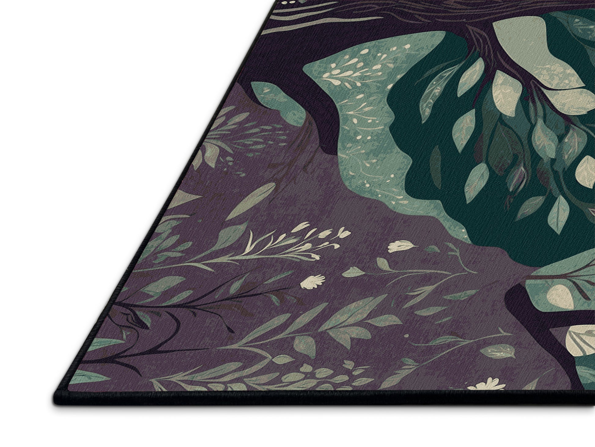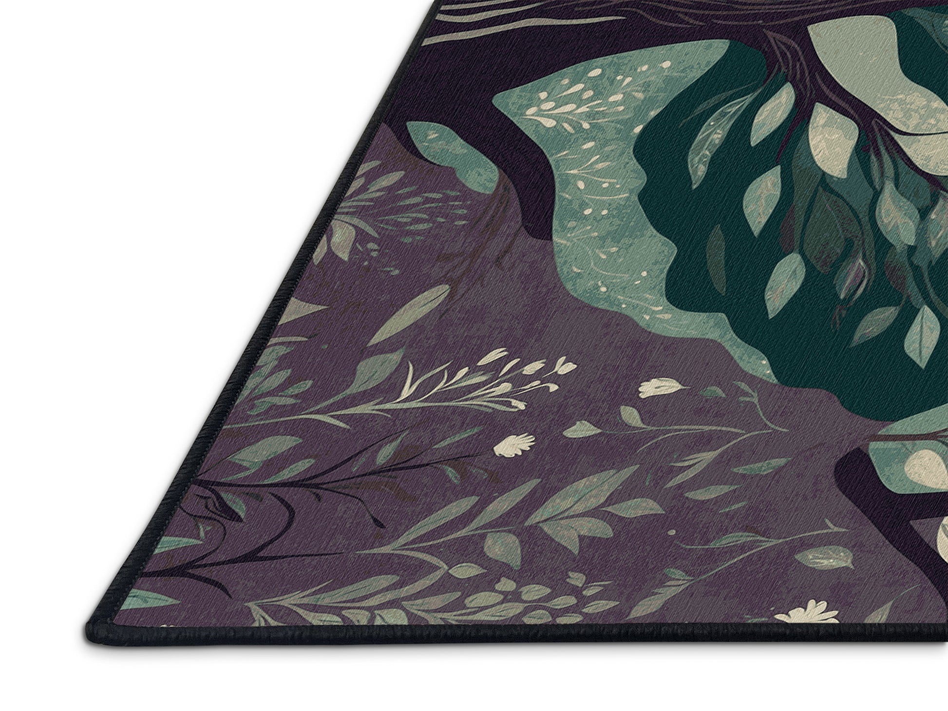 Midnight Arbor from the Mystic Grove collection captures the tranquil essence of lush forest canopies with its stunning Gunmetal color (A deep, metallic gray with hints of green and blue.), a calming tone in the Gray color family. Inspired by flourishing greenery and woodland shadows, this rug features intricate leaf patterns, organic shapes, and layered designs that evoke depth and elegance. Finished with Black serging a durable edge that enhances its artisanal look this rug is crafted from premium polyester and machine-made in the USA with imported materials. Perfect for creating a serene retreat in living rooms, calming bedrooms, or artistic reading corners, this design brings a harmonious blend of nature and refinement to your space. Available in multiple sizes, the Mystic Grove collection transforms your home into a tranquil haven, offering timeless beauty and versatile style for modern or nature-inspired interiors.