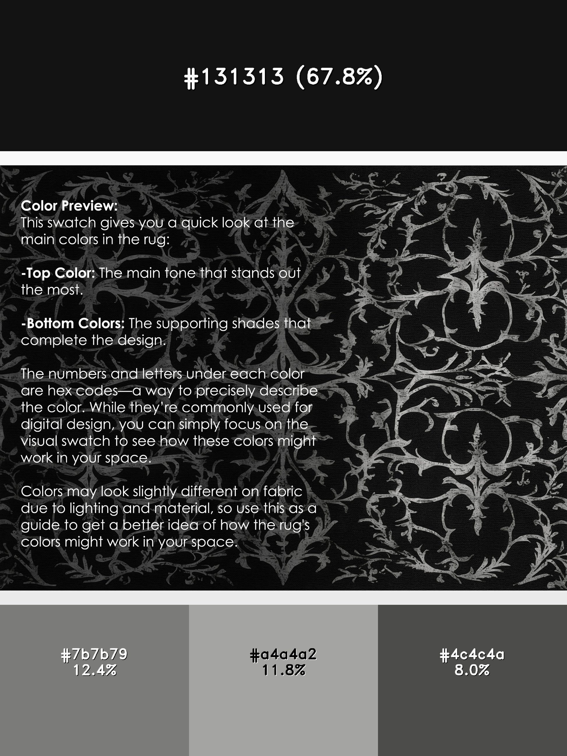 Midnight Majesty from the Nocturne Elegance collection exudes timeless sophistication with its captivating Grayish Turquoise color (A soft turquoise with gray undertones, cool and calming.), a rich tone in the Green color family. Featuring intricate baroque-inspired patterns and swirling vine designs, this rug creates a sense of depth and refined elegance. Finished with Gray serging a durable edge that enhances its luxurious aesthetic this rug is crafted from premium polyester and machine-made in the USA with imported materials. Perfect for formal dining rooms, chic living areas, or cozy bedrooms, this design balances bold drama with subtle charm, complementing both contemporary and traditional interiors. Available in multiple sizes, the Nocturne Elegance collection transforms your home into a haven of understated grandeur and classic refinement.