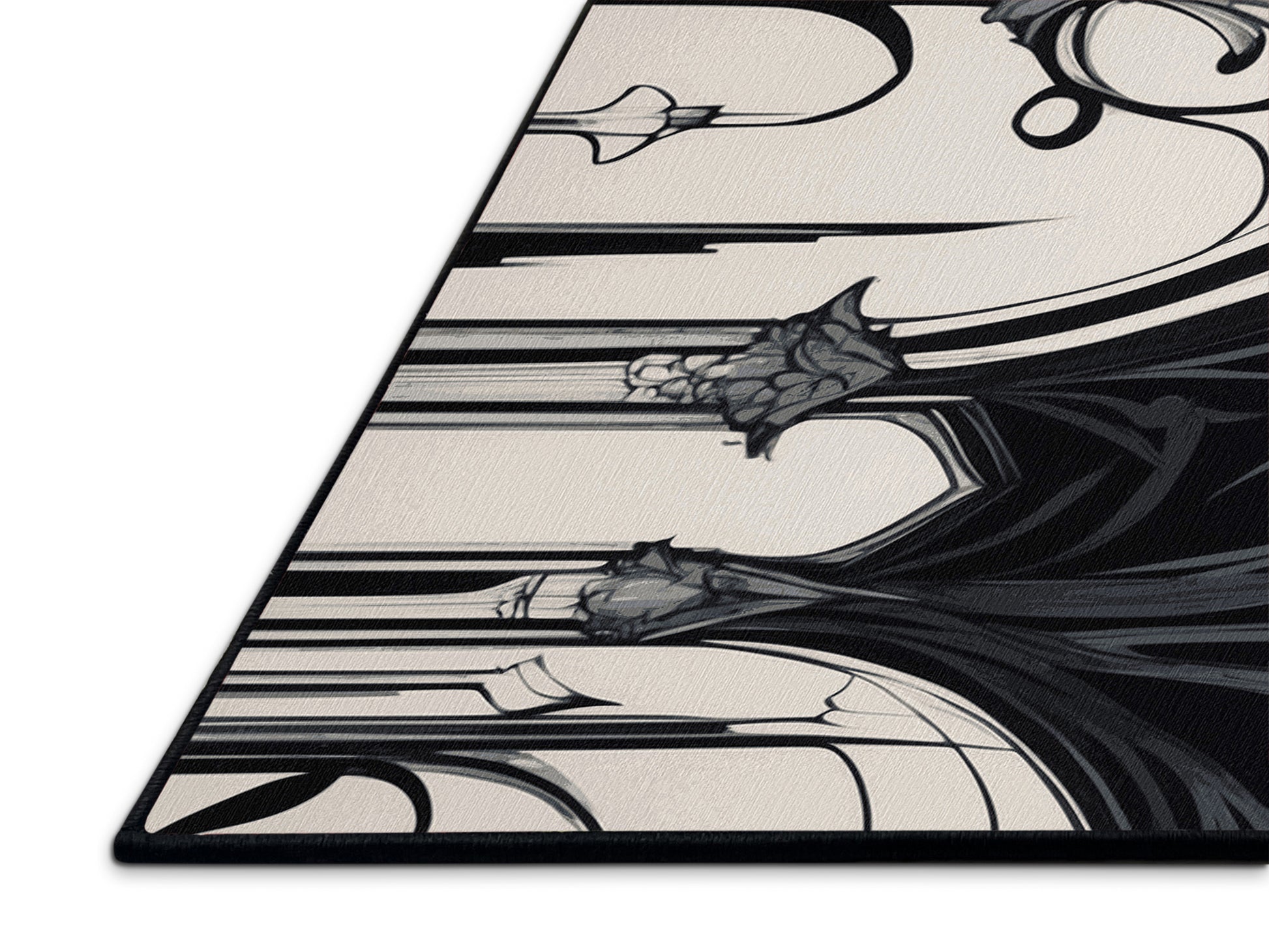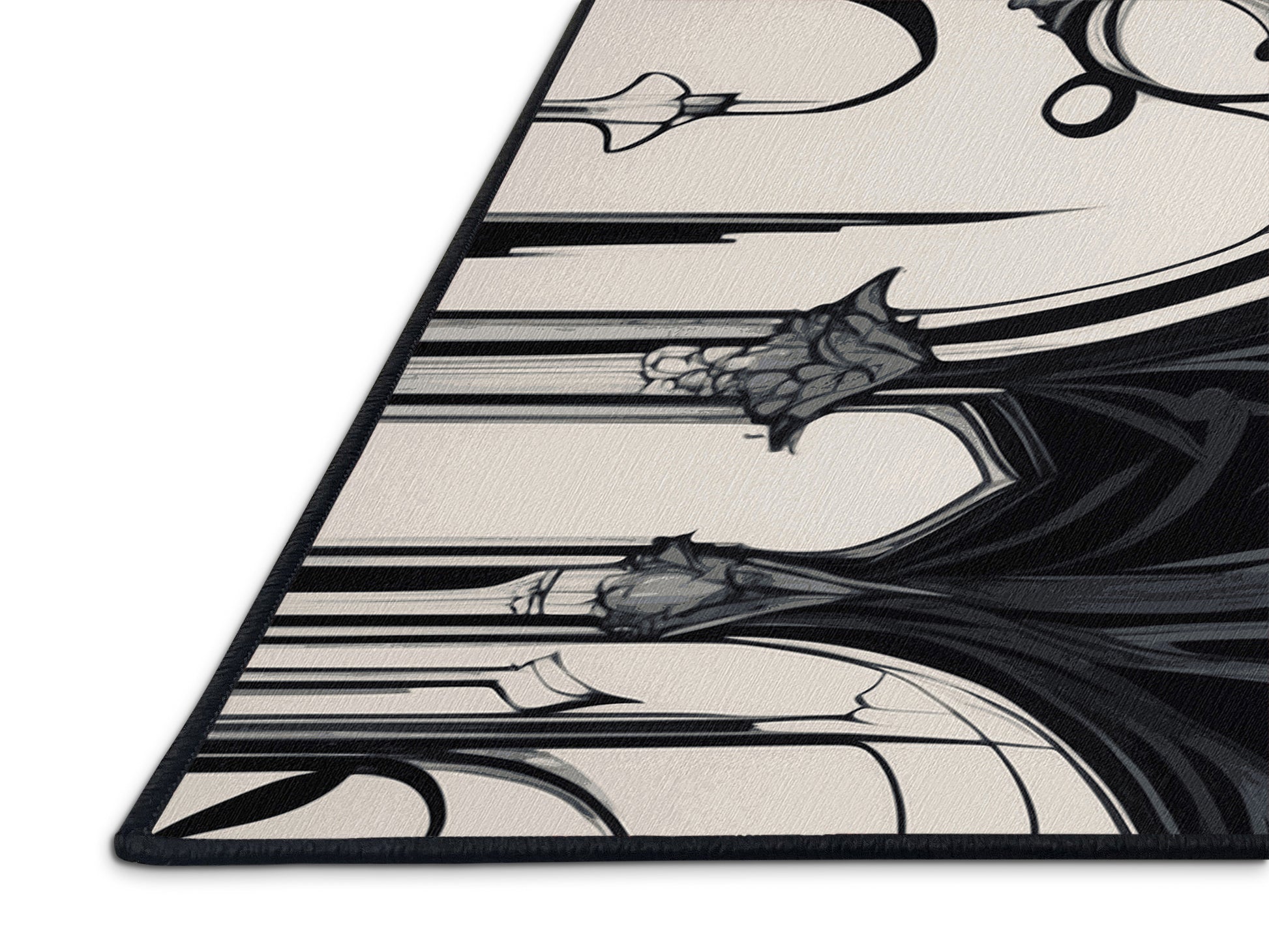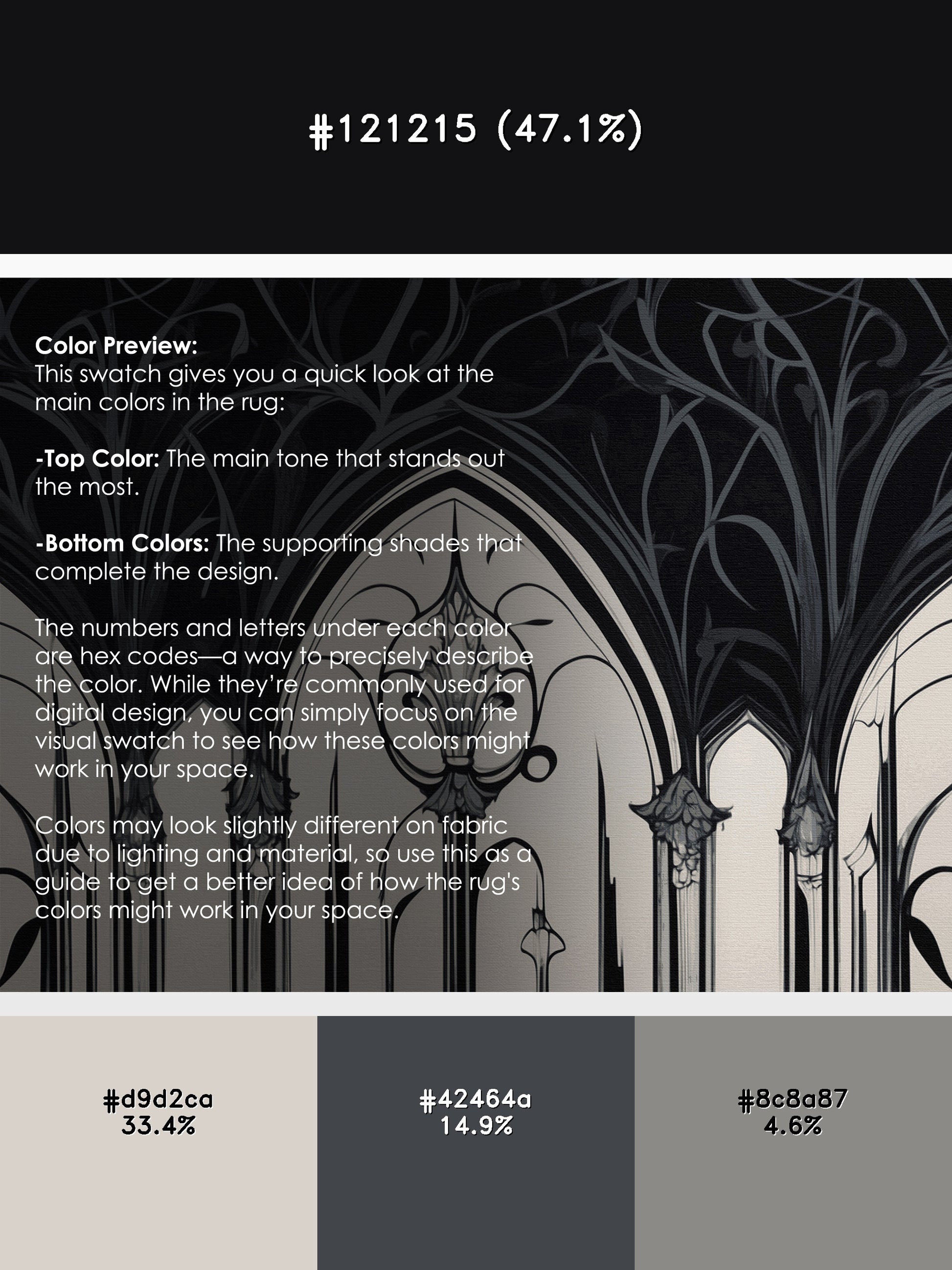 Midnight Wreath from the Nocturne Elegance collection exudes timeless sophistication with its captivating Gunmetal color (A deep, metallic gray with hints of green and blue.), a rich tone in the Gray color family. Featuring intricate baroque-inspired patterns and swirling vine designs, this rug creates a sense of depth and refined elegance. Finished with Black serging a durable edge that enhances its luxurious aesthetic this rug is crafted from premium polyester and machine-made in the USA with imported materials. Perfect for formal dining rooms, chic living areas, or cozy bedrooms, this design balances bold drama with subtle charm, complementing both contemporary and traditional interiors. Available in multiple sizes, the Nocturne Elegance collection transforms your home into a haven of understated grandeur and classic refinement.