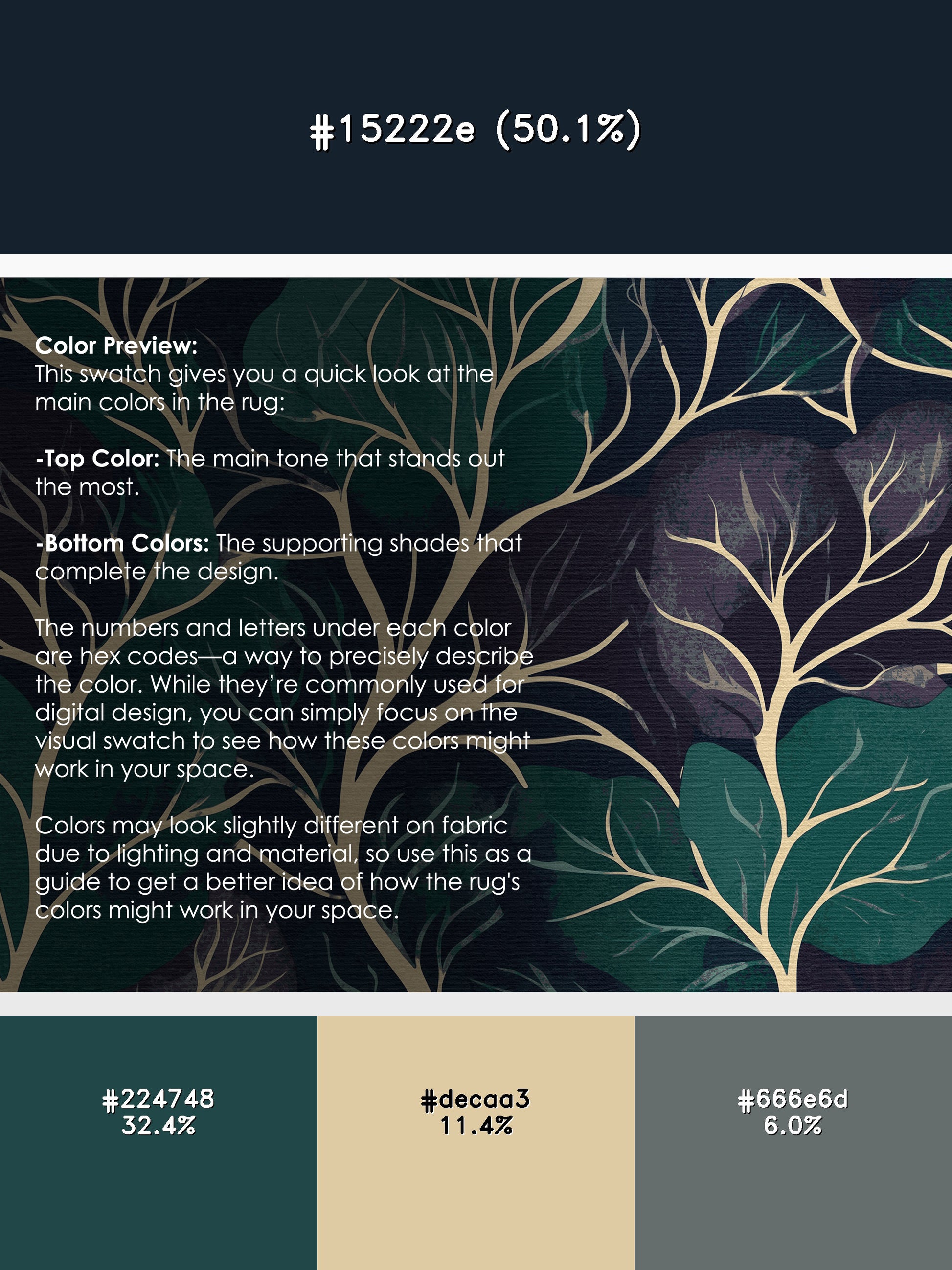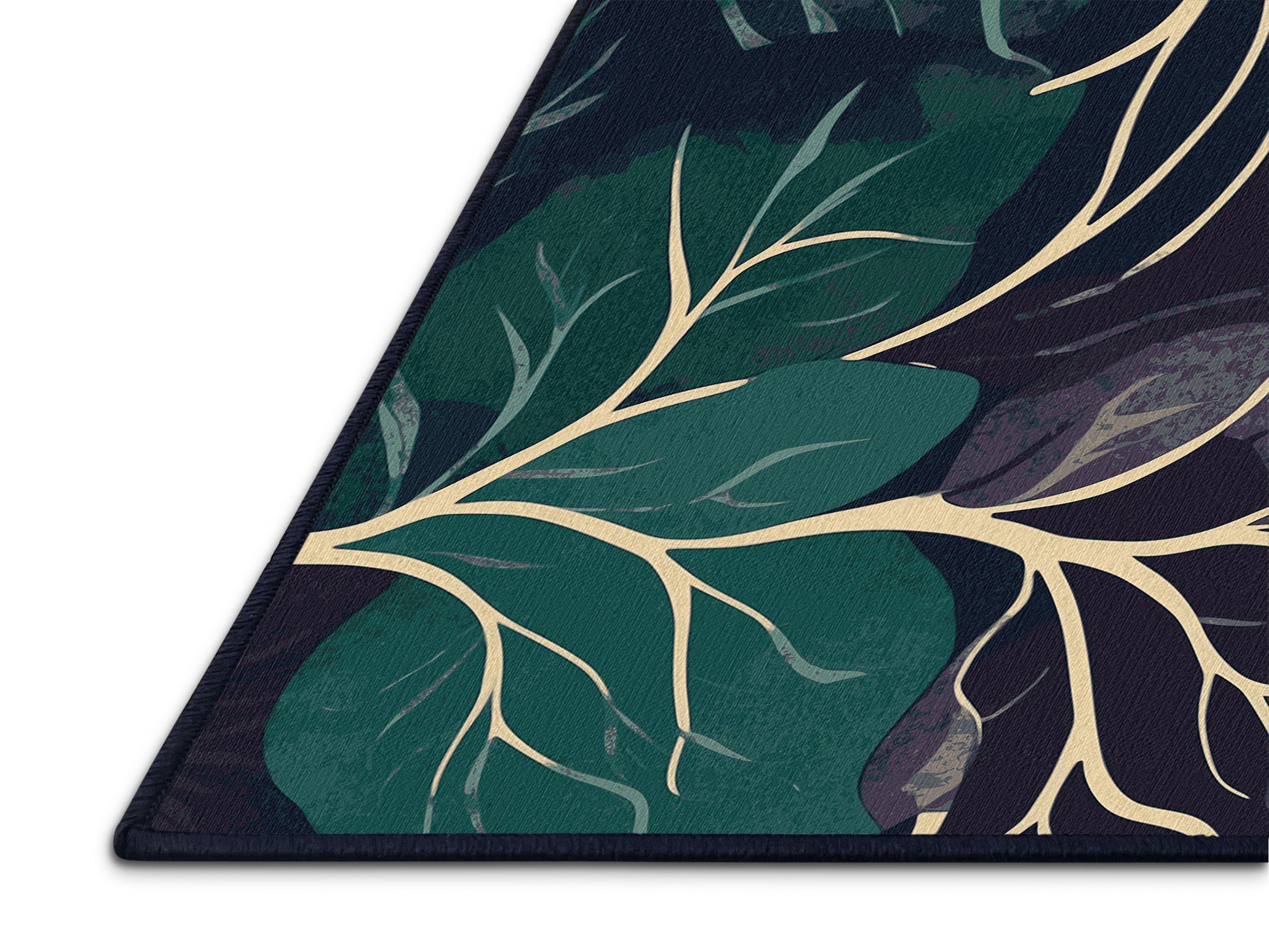 Moonlit Grove from the Mystic Flora collection brings the enchanting beauty of nature into your space with its captivating Charcoal Blue color (A dark, muted blue with gray undertones, sleek and understated.), a soothing tone in the Blue color family. Featuring intricate botanical patterns inspired by lush leaves and whimsical trees, this rug is finished with Navy serging a durable stitched edge that prevents fraying and enhances its elegant design. Crafted from premium polyester and machine-made in the USA with imported materials, it combines modern artistry with lasting durability. Perfect for living rooms, serene bedrooms, or tranquil reading nooks, this design blends natural elements with a dreamy, ethereal quality. Available in multiple sizes, the Mystic Flora collection transforms your home into a tranquil retreat while adding a fresh, inviting touch to contemporary or bohemian interiors.