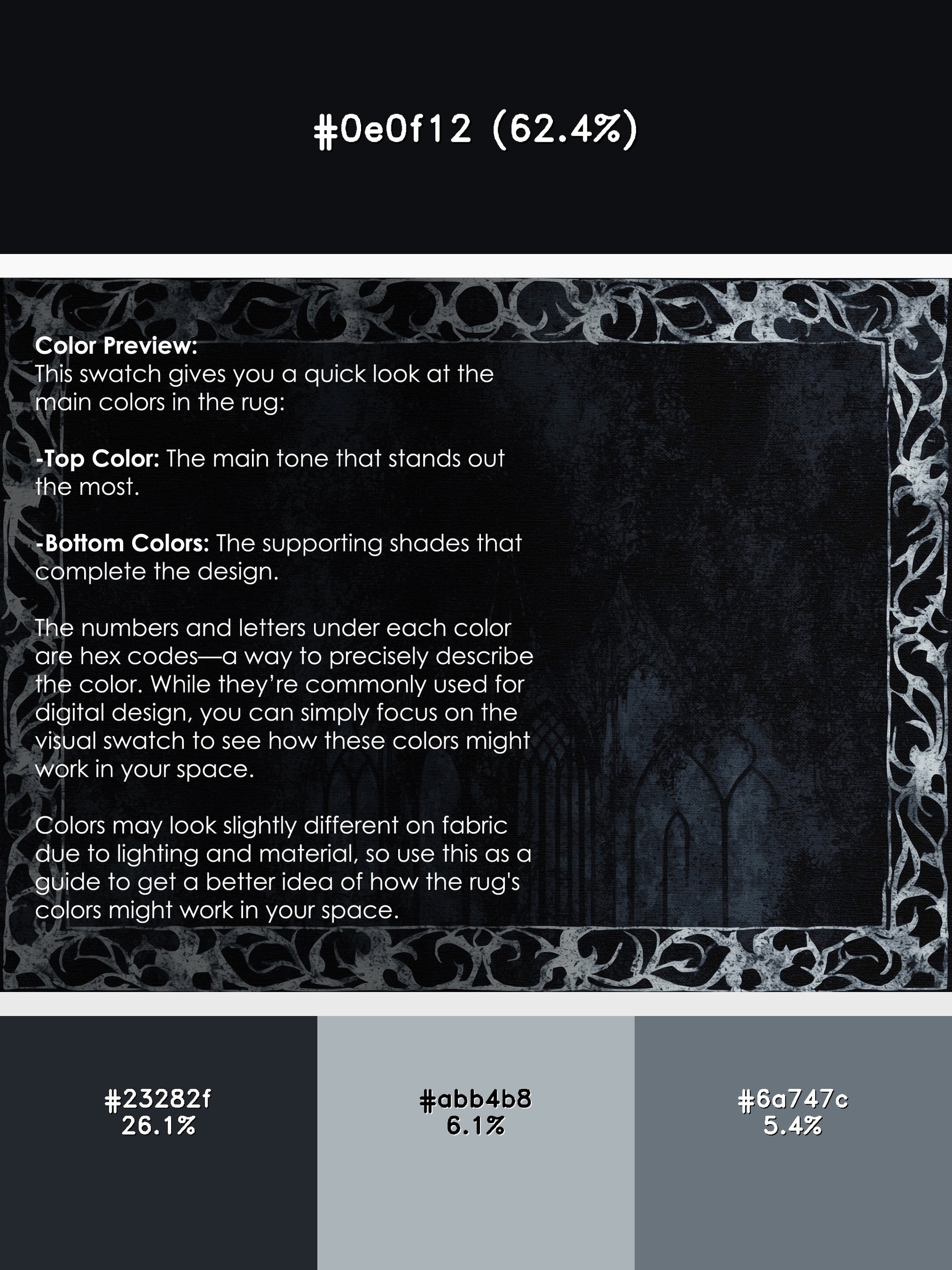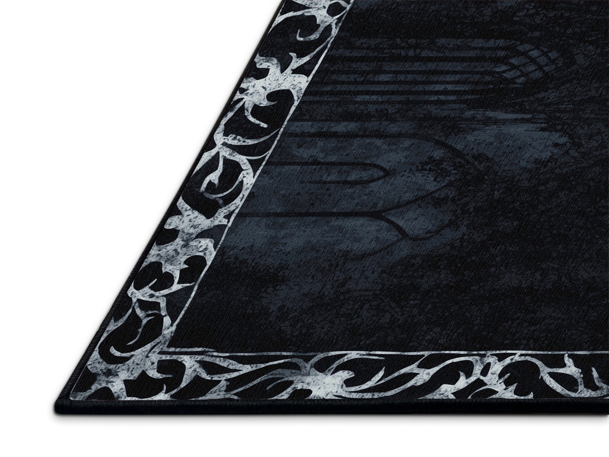 Moonlit Wreath from the Nocturne Elegance collection exudes timeless sophistication with its captivating Charcoal Blue color (A dark, muted blue with gray undertones, sleek and understated.), a rich tone in the Blue color family. Featuring intricate baroque-inspired patterns and swirling vine designs, this rug creates a sense of depth and refined elegance. Finished with Black serging a durable edge that enhances its luxurious aesthetic this rug is crafted from premium polyester and machine-made in the USA with imported materials. Perfect for formal dining rooms, chic living areas, or cozy bedrooms, this design balances bold drama with subtle charm, complementing both contemporary and traditional interiors. Available in multiple sizes, the Nocturne Elegance collection transforms your home into a haven of understated grandeur and classic refinement.