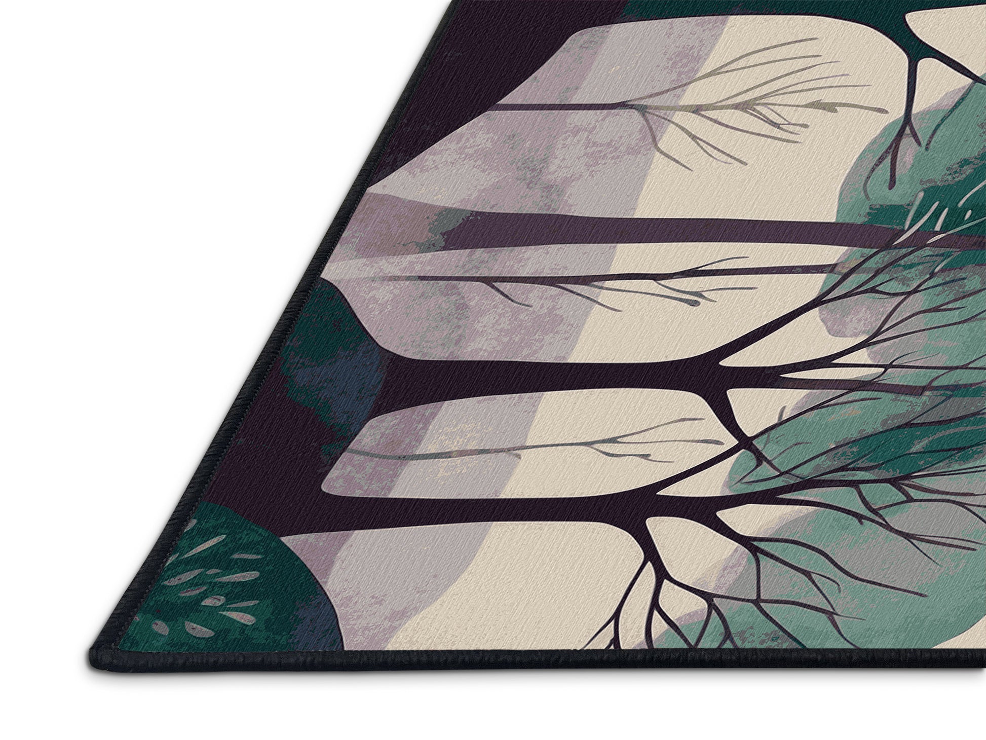 Mystic Petals from the Mystic Flora collection brings the enchanting beauty of nature into your space with its captivating Charcoal Blue color (A dark, muted blue with gray undertones, sleek and understated.), a soothing tone in the Blue color family. Featuring intricate botanical patterns inspired by lush leaves and whimsical trees, this rug is finished with Black serging a durable stitched edge that prevents fraying and enhances its elegant design. Crafted from premium polyester and machine-made in the USA with imported materials, it combines modern artistry with lasting durability. Perfect for living rooms, serene bedrooms, or tranquil reading nooks, this design blends natural elements with a dreamy, ethereal quality. Available in multiple sizes, the Mystic Flora collection transforms your home into a tranquil retreat while adding a fresh, inviting touch to contemporary or bohemian interiors.