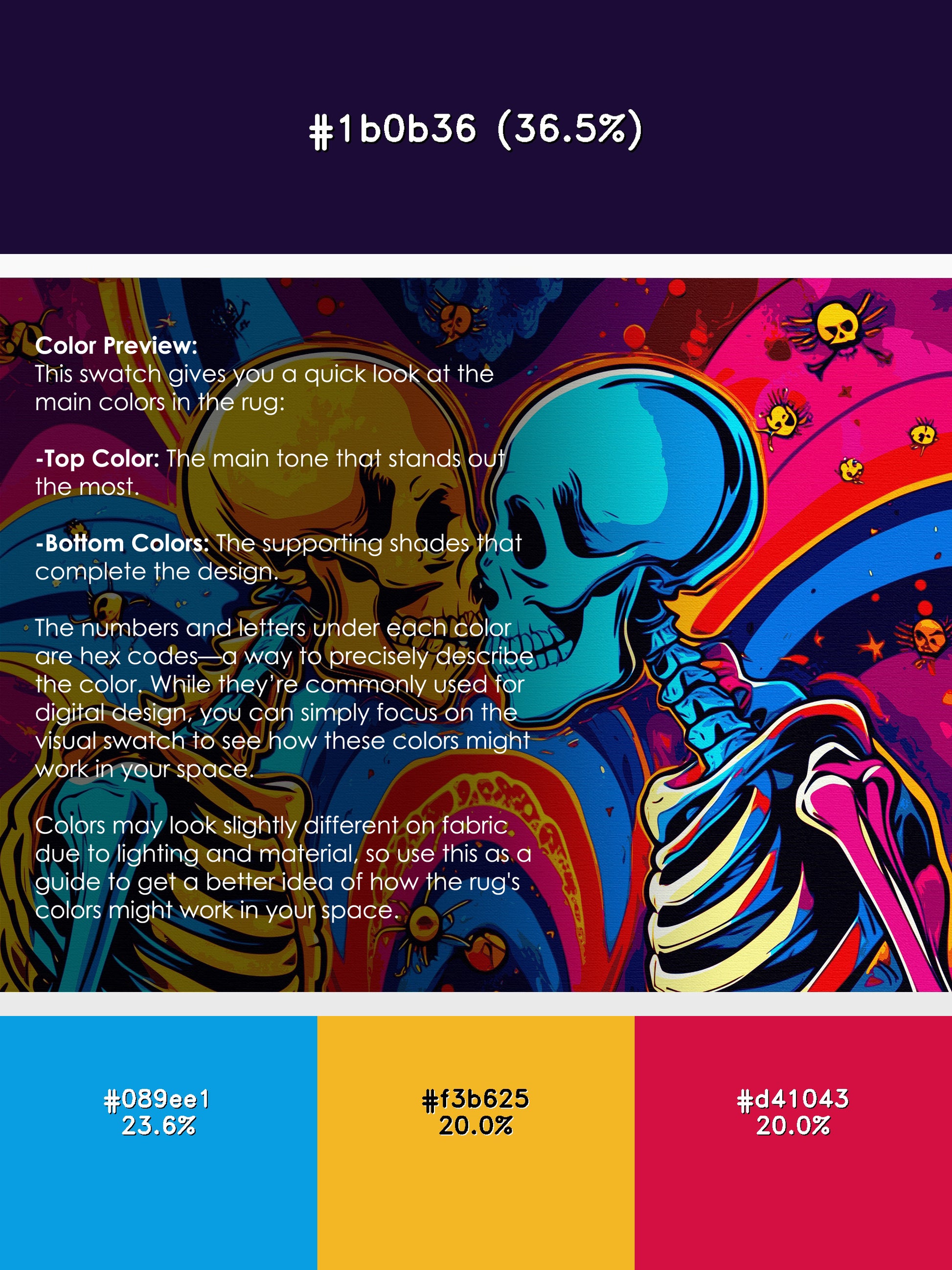 Nebula Radiance from the Psychedelia Peaks collection radiates vibrant energy with its bold Purple Jam color (A rich and deep purple with a vibrant, jam-like hue.), a striking tone in the Purple color family. Featuring swirling, kaleidoscopic patterns and electrifying neon hues inspired by the psychedelic art movement, this rug brings a sense of dynamic motion and artistic expression to your space. Finished with Navy serging a durable edge that enhances its playful and vibrant aesthetic this rug is crafted from premium polyester and machine-made in the USA with imported materials. Perfect for eclectic living rooms, retro-inspired spaces, or creative studios, this design transforms any room into a lively haven of individuality and boldness. Available in multiple sizes, the Psychedelia Peaks collection adds a dramatic, colorful statement to your decor, turning your home into a canvas of unrestrained creativity.