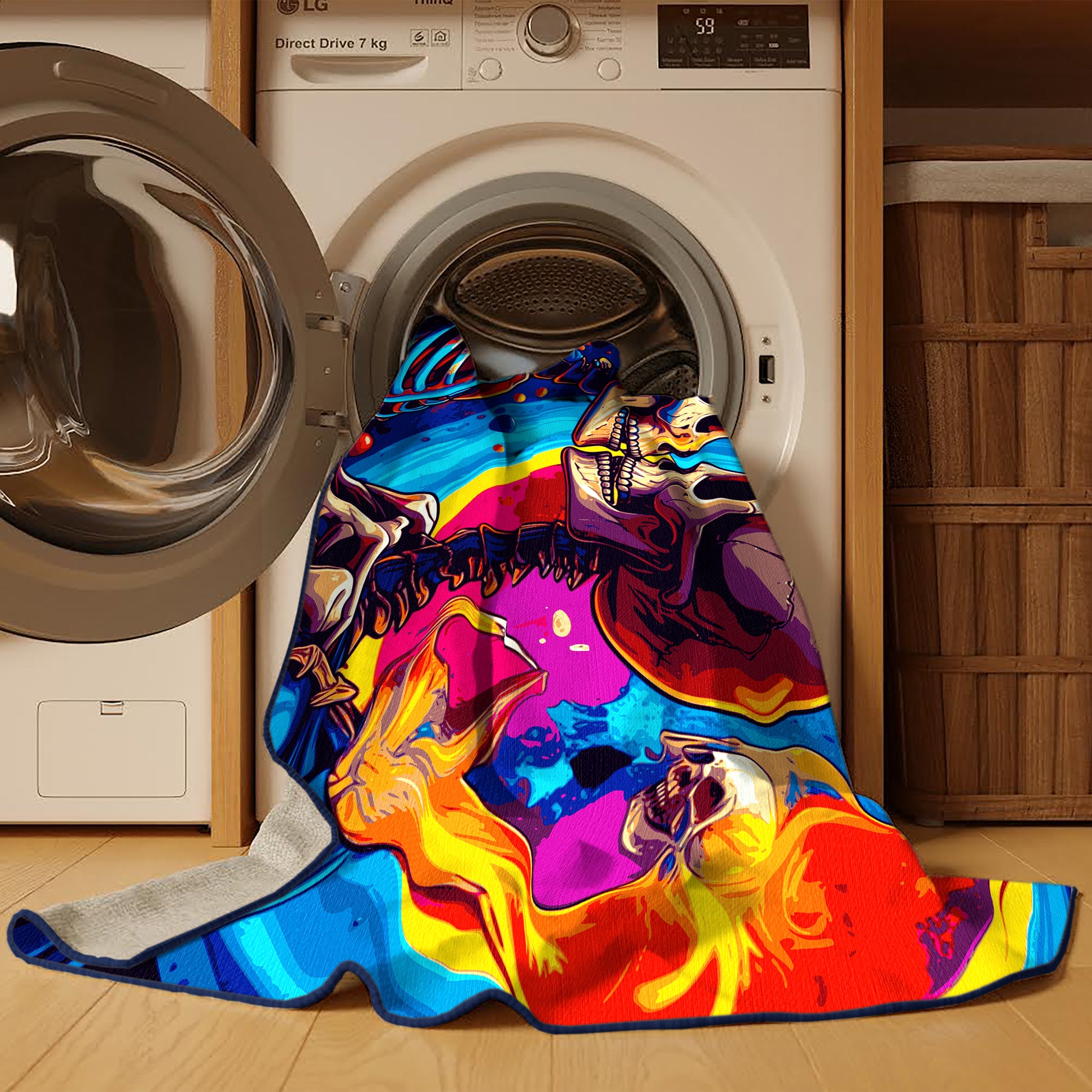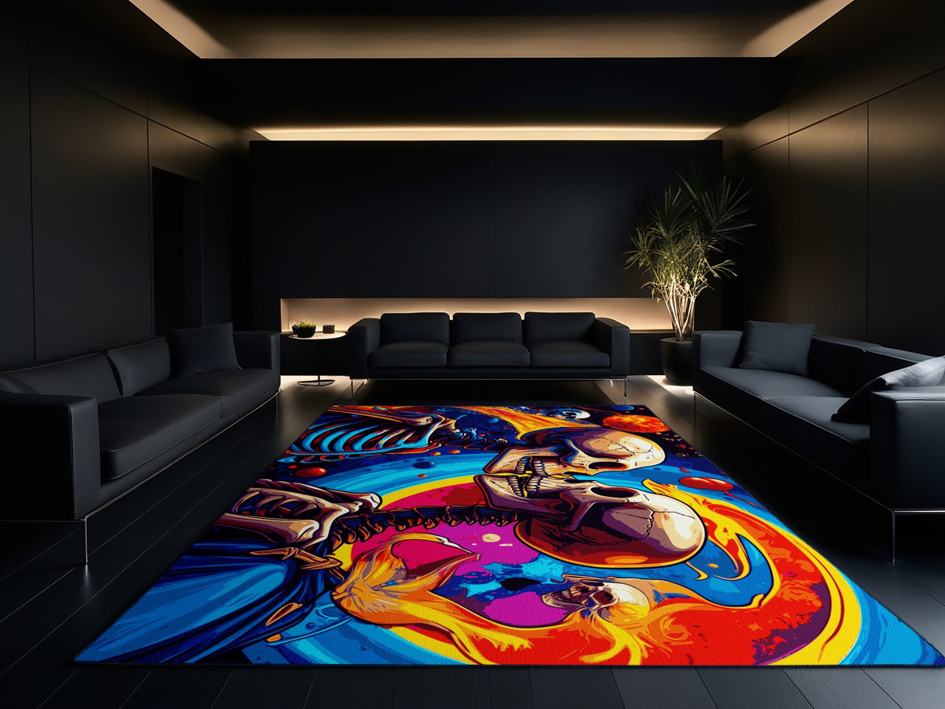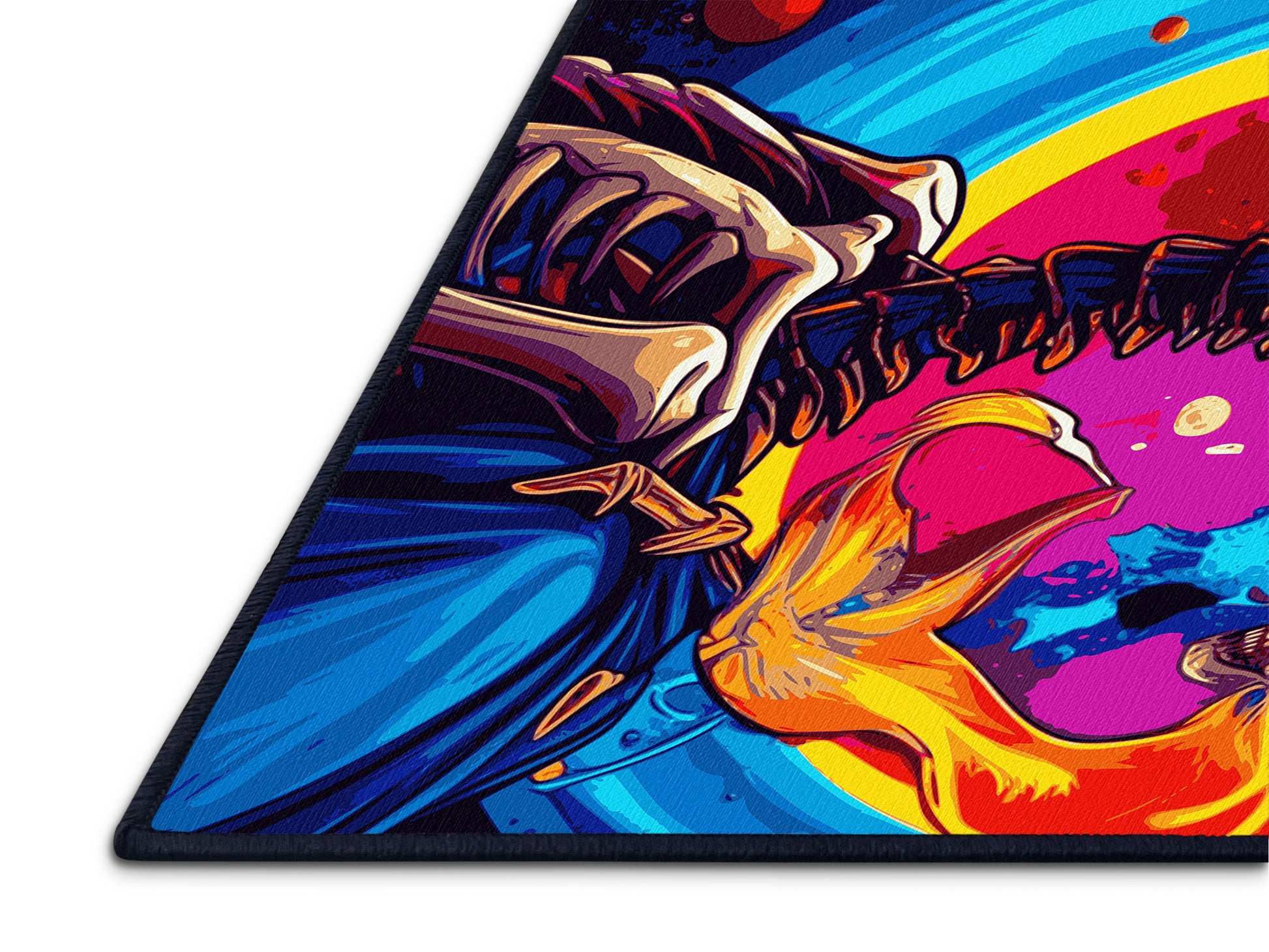 Neon Eruption from the Psychedelia Peaks collection radiates vibrant energy with its bold Purple Jam color (A rich and deep purple with a vibrant, jam-like hue.), a striking tone in the Purple color family. Featuring swirling, kaleidoscopic patterns and electrifying neon hues inspired by the psychedelic art movement, this rug brings a sense of dynamic motion and artistic expression to your space. Finished with Navy serging a durable edge that enhances its playful and vibrant aesthetic this rug is crafted from premium polyester and machine-made in the USA with imported materials. Perfect for eclectic living rooms, retro-inspired spaces, or creative studios, this design transforms any room into a lively haven of individuality and boldness. Available in multiple sizes, the Psychedelia Peaks collection adds a dramatic, colorful statement to your decor, turning your home into a canvas of unrestrained creativity.