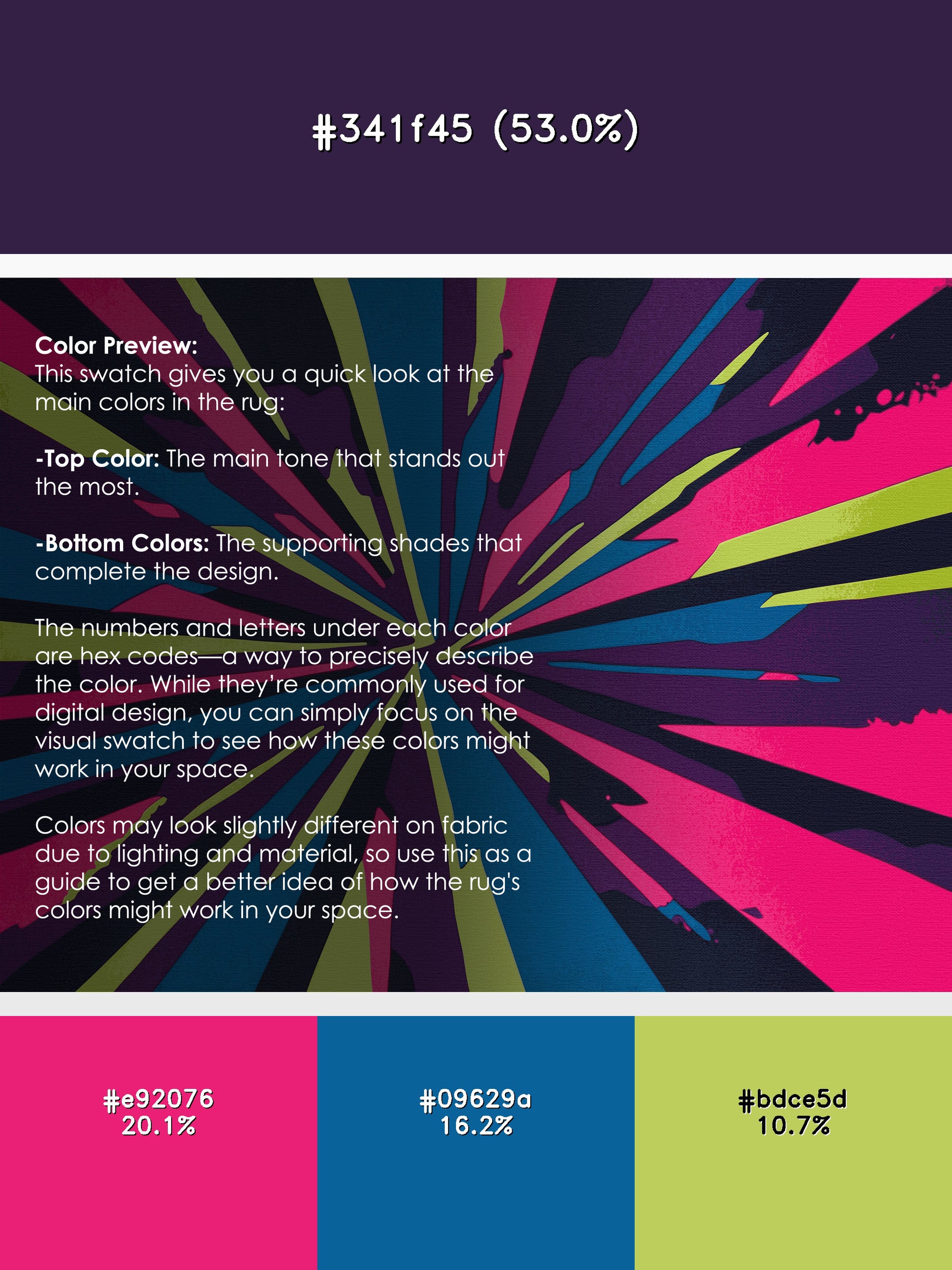 Neon Inferno from the Neon Nexus collection electrifies your space with its bold Purple Navy color (A dark purple with strong navy undertones, sophisticated and deep.), a striking tone in the Purple color family. Inspired by neon-lit cityscapes and cyberpunk design, this rug features sharp geometric patterns and dynamic lines illuminated by vibrant, electric hues. Finished with Navy serging a sleek edge that enhances its futuristic appeal this rug is crafted from premium polyester and machine-made in the USA with imported materials. Perfect for modern gaming rooms, creative studios, or contemporary living spaces, this design balances cutting-edge energy with adaptable elegance. Available in multiple sizes, the Neon Nexus collection transforms any room into a bold statement of innovation and style, channeling the vibrant glow of a cyberpunk universe.