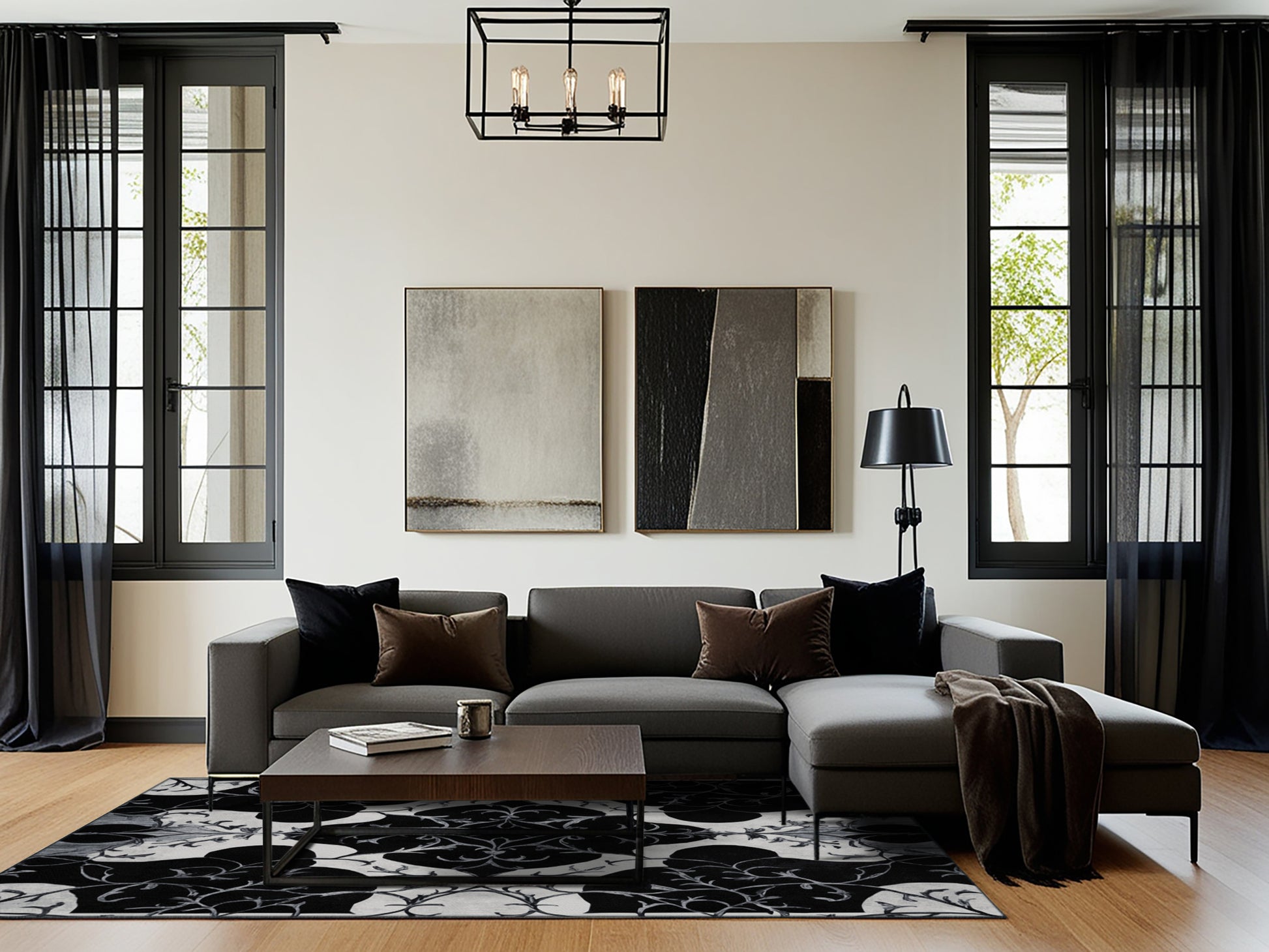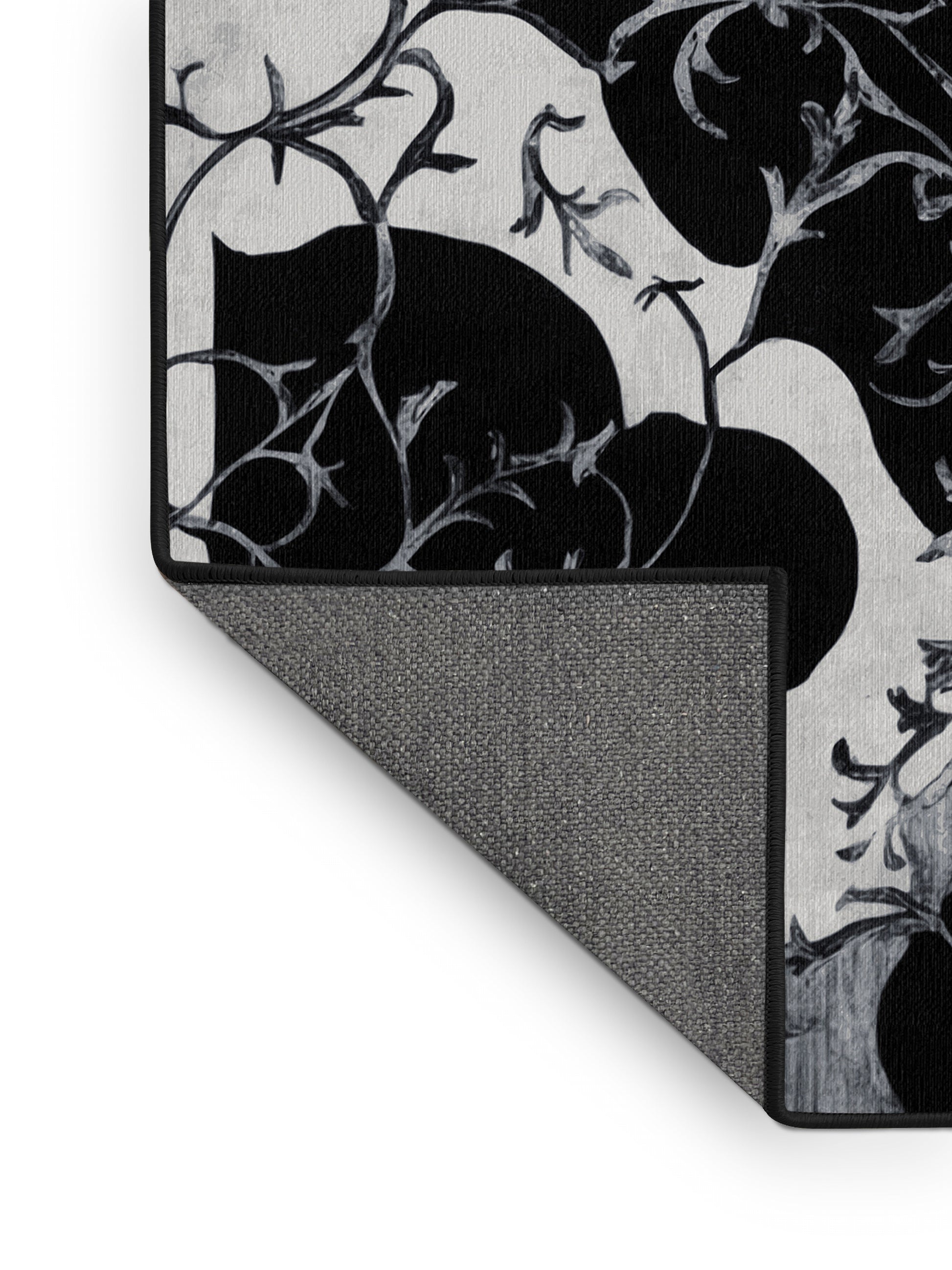 Nightfall Enchant from the Nocturne Elegance collection exudes timeless sophistication with its captivating Gunmetal color (A deep, metallic gray with hints of green and blue.), a rich tone in the Gray color family. Featuring intricate baroque-inspired patterns and swirling vine designs, this rug creates a sense of depth and refined elegance. Finished with Black serging a durable edge that enhances its luxurious aesthetic this rug is crafted from premium polyester and machine-made in the USA with imported materials. Perfect for formal dining rooms, chic living areas, or cozy bedrooms, this design balances bold drama with subtle charm, complementing both contemporary and traditional interiors. Available in multiple sizes, the Nocturne Elegance collection transforms your home into a haven of understated grandeur and classic refinement.