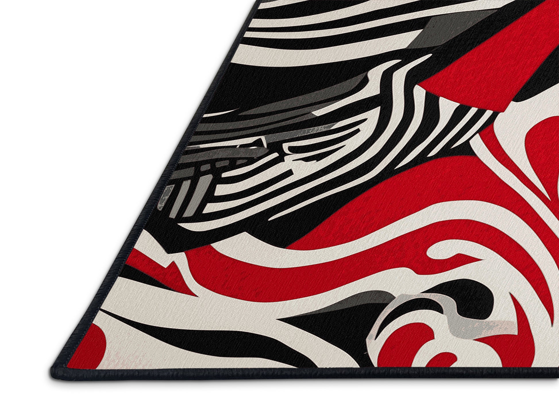 Obsidian Glow from the Scarlet Surrealism collection brings bold artistic energy to your space with its captivating Black (W3C) color (A pure, true black, perfect for sleek and timeless designs.), a dramatic tone in the Black color family. Inspired by surrealist artistry, this rug features abstract patterns with flowing curves and dynamic contrasts, creating a sense of motion and depth. Finished with Black serging a sleek edge that enhances its modern aesthetic this rug is crafted from premium polyester and machine-made in the USA with imported materials. Perfect for living rooms, statement hallways, or creative spaces, this design blends avant-garde elegance with everyday functionality. Available in multiple sizes, the Scarlet Surrealism collection transforms your home into a showcase of bold sophistication and unique style.