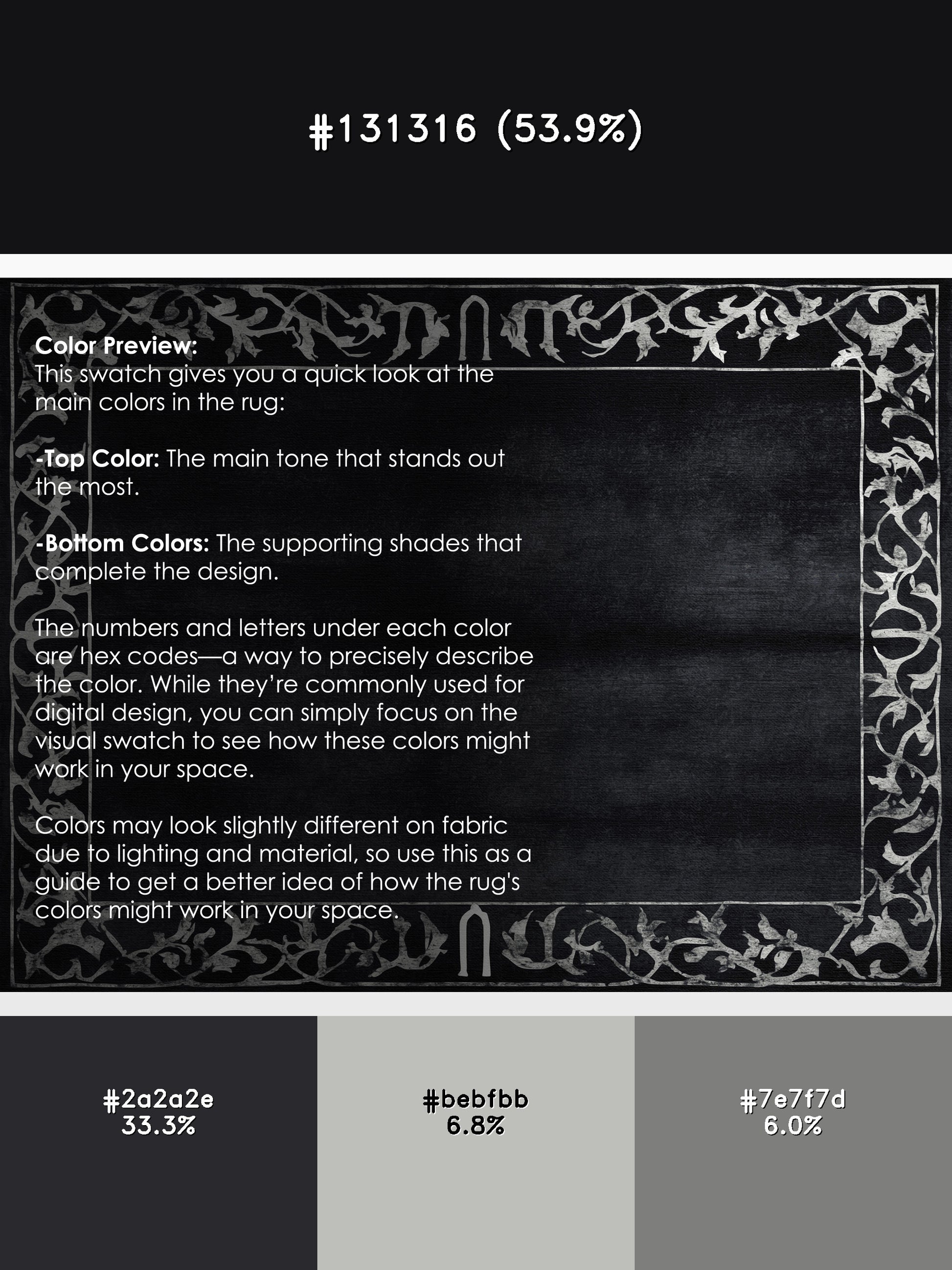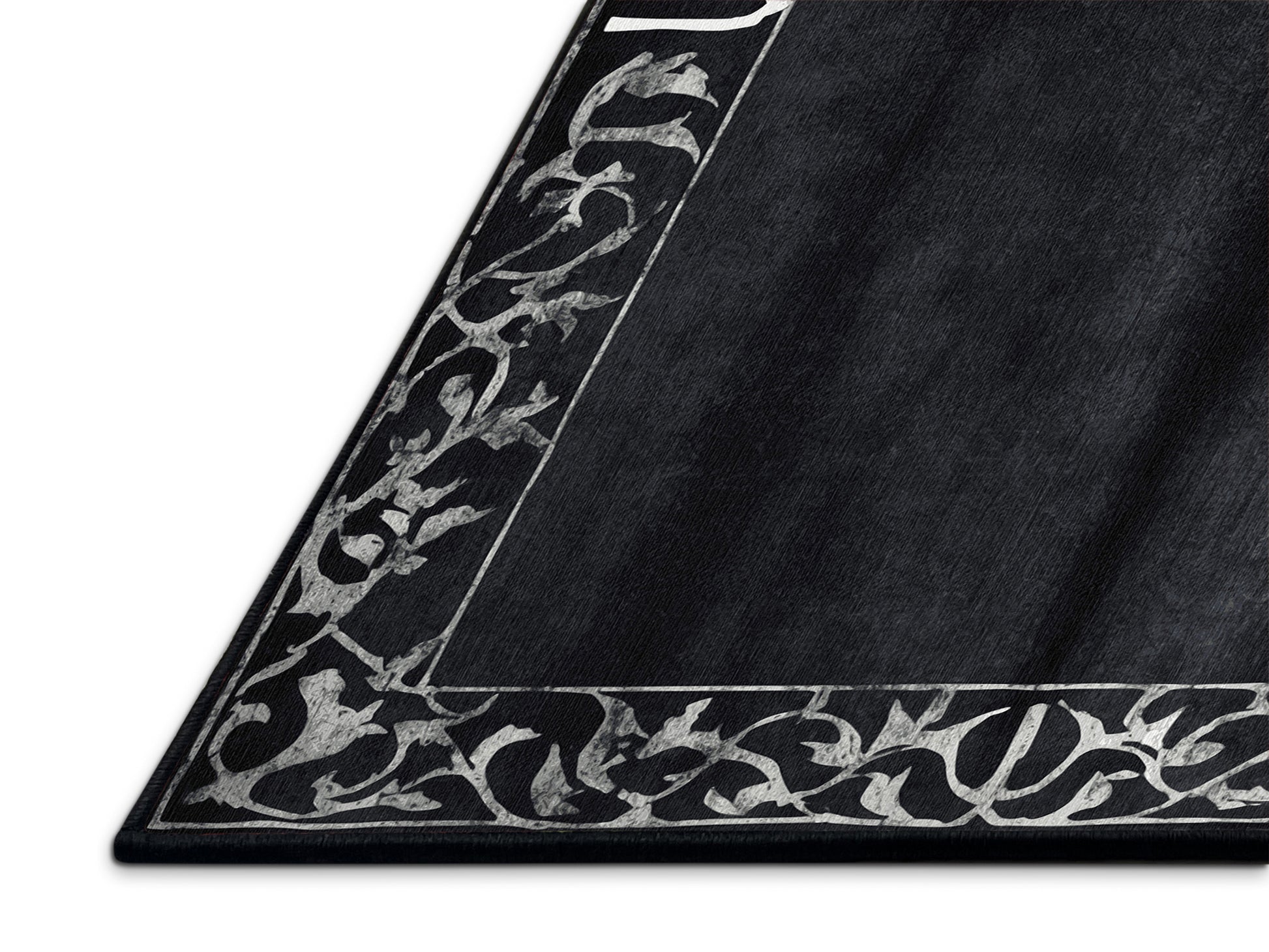Obsidian Whorl from the Nocturne Elegance collection exudes timeless sophistication with its captivating Gunmetal color (A deep, metallic gray with hints of green and blue.), a rich tone in the Gray color family. Featuring intricate baroque-inspired patterns and swirling vine designs, this rug creates a sense of depth and refined elegance. Finished with Black serging a durable edge that enhances its luxurious aesthetic this rug is crafted from premium polyester and machine-made in the USA with imported materials. Perfect for formal dining rooms, chic living areas, or cozy bedrooms, this design balances bold drama with subtle charm, complementing both contemporary and traditional interiors. Available in multiple sizes, the Nocturne Elegance collection transforms your home into a haven of understated grandeur and classic refinement.