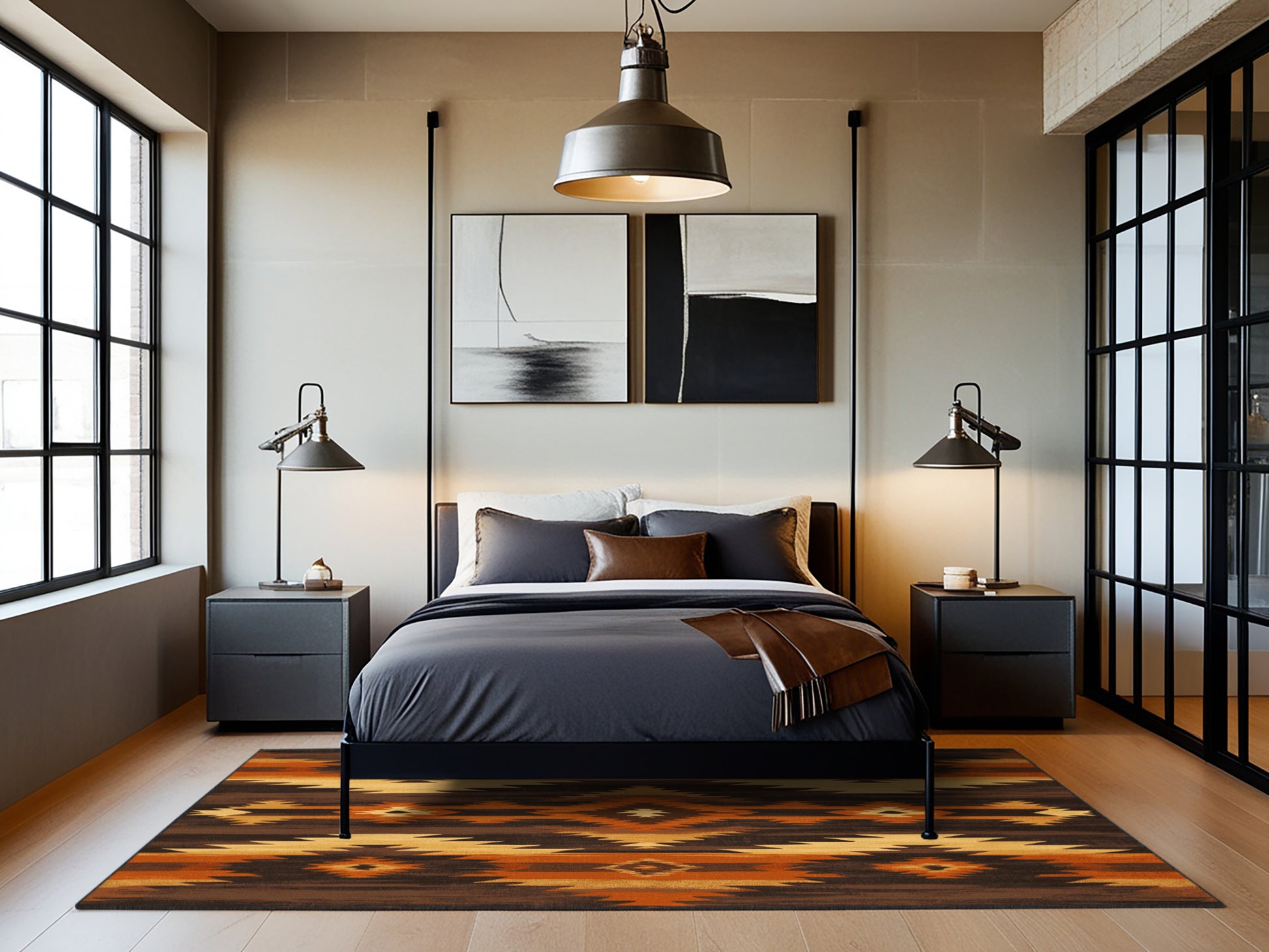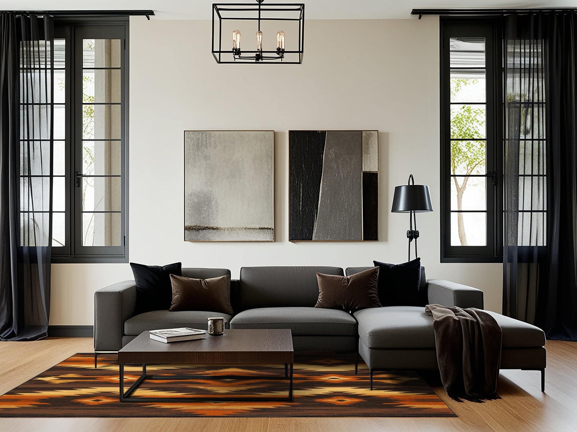 Path of Ancestors from the Heritage Southwest collection captures the rugged charm of the American Southwest with its bold Coffee color (A rich brown inspired by the warmth of freshly brewed coffee.), a striking tone in the Brown color family. Inspired by traditional Navajo artistry and desert landscapes, this rug features geometric patterns and tribal-inspired designs that evoke cultural heritage and timeless beauty. Finished with Black serging a durable stitched edge that prevents fraying and enhances its rustic appeal this rug is crafted from premium polyester and machine-made in the USA with imported materials. Perfect for grounding a living room, adding warmth to a bedroom, or enhancing a dining area, this design seamlessly complements rustic, bohemian, or modern interiors. Available in multiple sizes, the Heritage Southwest collection brings the spirit of the desert into your home with its warm tones and artisanal charm.