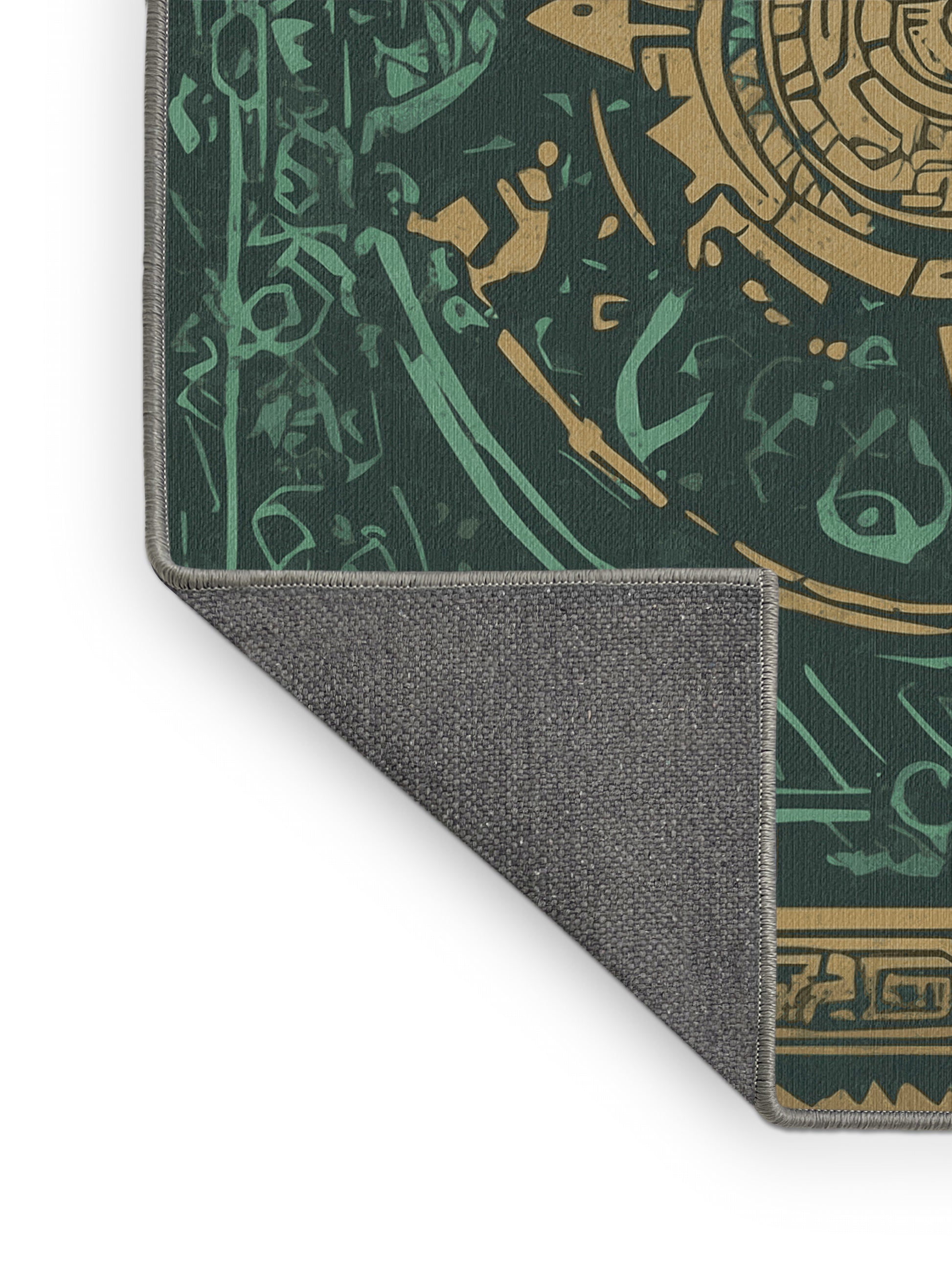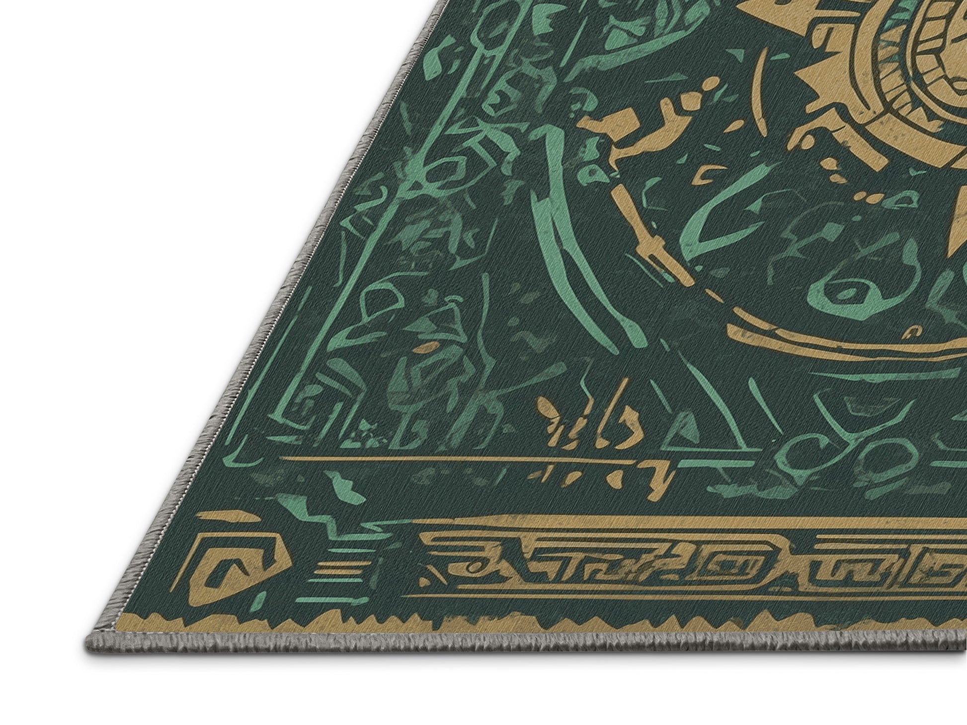 Path of Light from the Hero's Path collection takes you on an epic journey of adventure and timeless wonder with its captivating Grayish Turquoise color (A soft turquoise with gray undertones, cool and calming.), a bold tone in the Green color family. Inspired by mythical quests and heroic landscapes, this rug features intricate symbols and dynamic designs that evoke a sense of exploration and creativity. Finished with Gray serging a durable stitched edge that prevents fraying and enhances its artistic appeal this rug is crafted from premium polyester and machine-made in the USA with imported materials. Perfect for creating a bold statement in living rooms, inspiring creativity in home offices, or elevating entertainment areas, this design combines fantasy, elegance, and practicality. Available in multiple sizes, the Hero's Path collection transforms your space into a realm of imagination and discovery with its adventurous spirit and artistic flair.