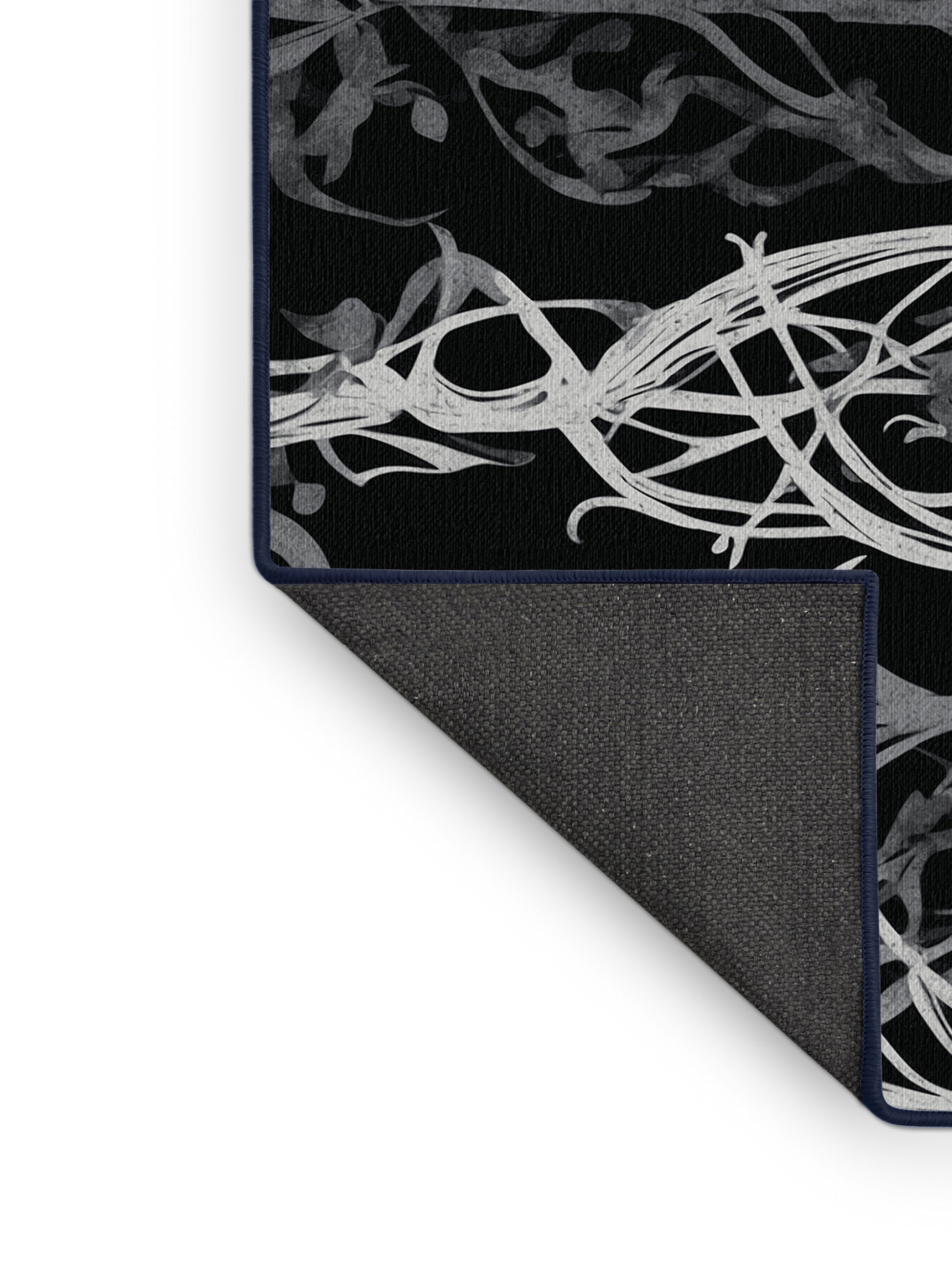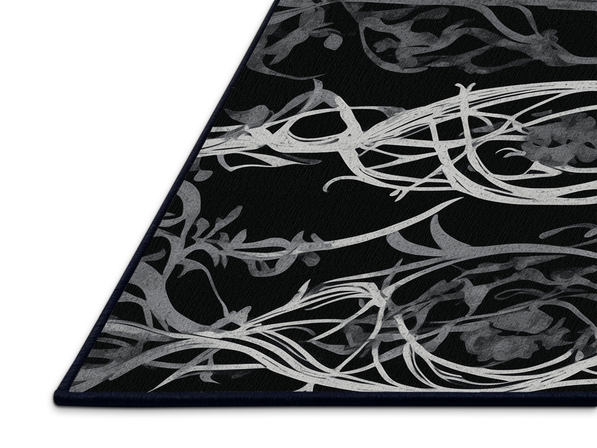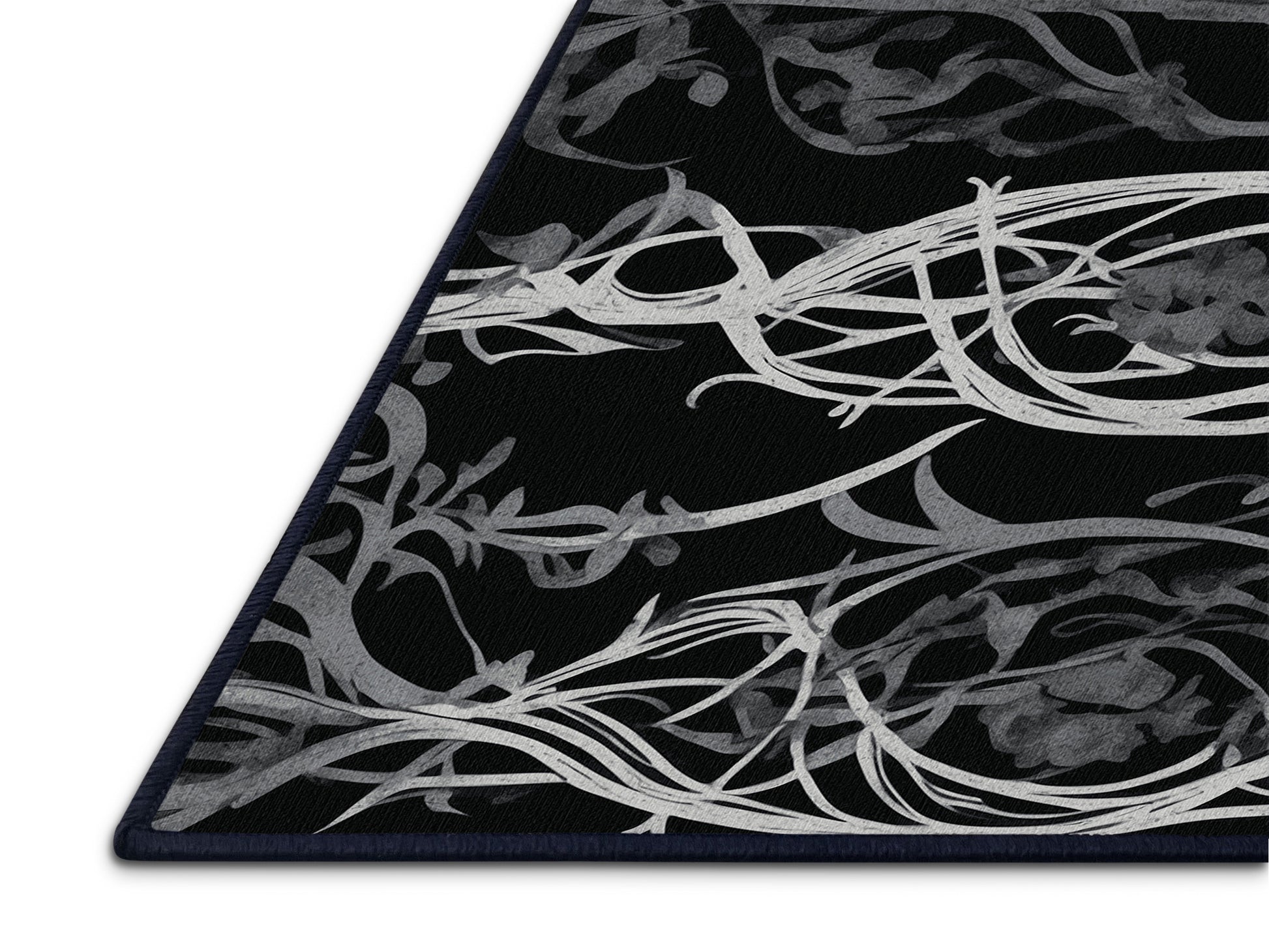 Phantom Lace from the Nocturne Elegance collection exudes timeless sophistication with its captivating Night color (A rich, dark black with a hint of depth, evoking the stillness of night.), a rich tone in the Black color family. Featuring intricate baroque-inspired patterns and swirling vine designs, this rug creates a sense of depth and refined elegance. Finished with Navy serging a durable edge that enhances its luxurious aesthetic this rug is crafted from premium polyester and machine-made in the USA with imported materials. Perfect for formal dining rooms, chic living areas, or cozy bedrooms, this design balances bold drama with subtle charm, complementing both contemporary and traditional interiors. Available in multiple sizes, the Nocturne Elegance collection transforms your home into a haven of understated grandeur and classic refinement.
