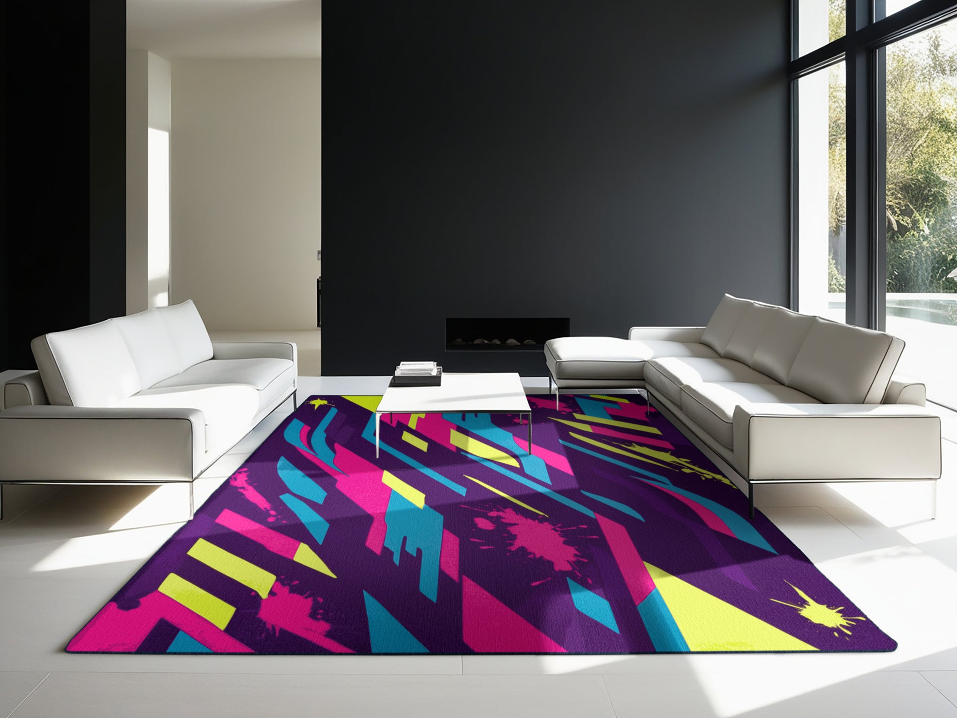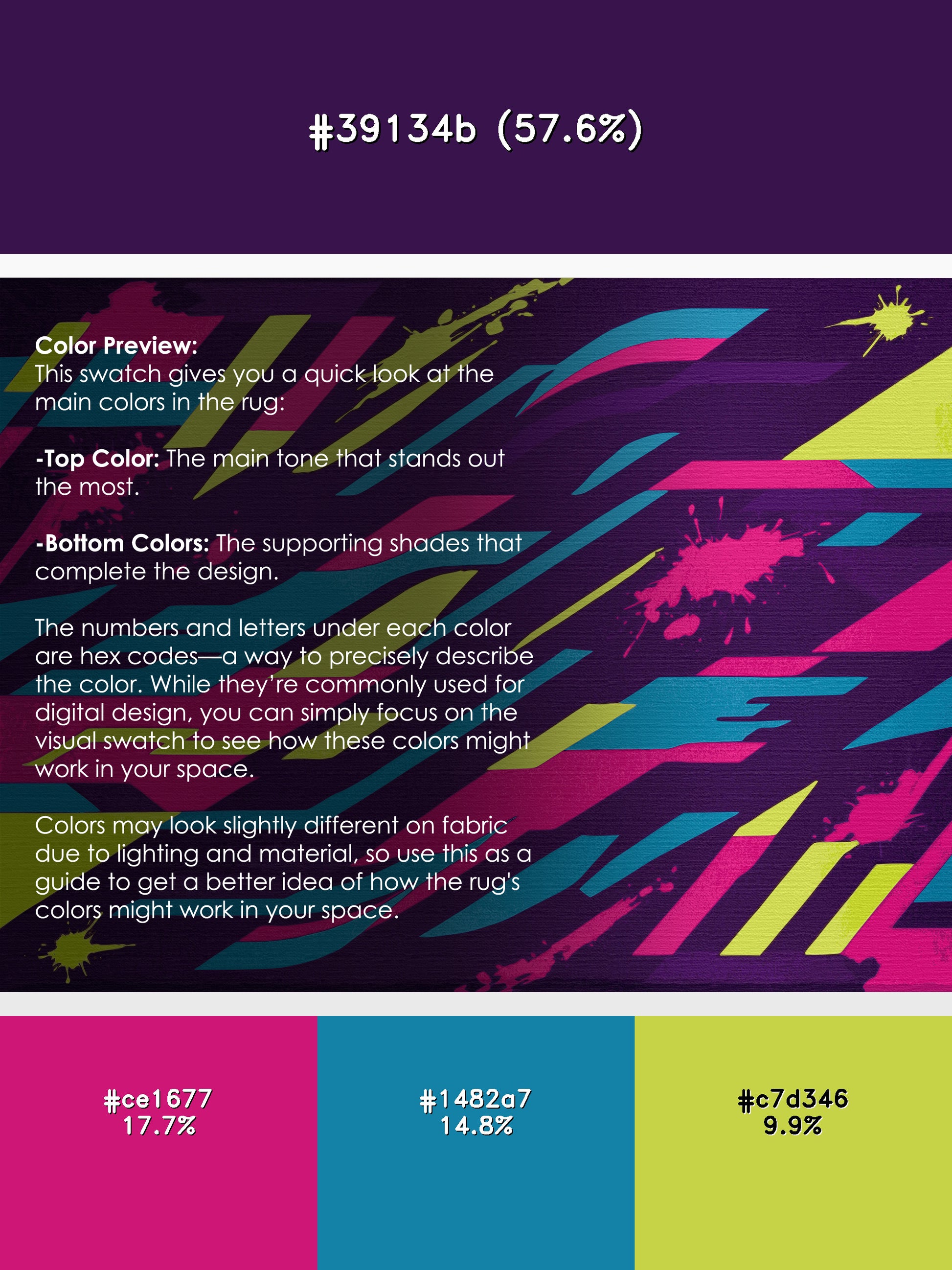 Plasma Pulse from the Neon Nexus collection electrifies your space with its bold Purple Iris color (A rich and elegant purple inspired by iris flowers.), a striking tone in the Purple color family. Inspired by neon-lit cityscapes and cyberpunk design, this rug features sharp geometric patterns and dynamic lines illuminated by vibrant, electric hues. Finished with Navy serging a sleek edge that enhances its futuristic appeal this rug is crafted from premium polyester and machine-made in the USA with imported materials. Perfect for modern gaming rooms, creative studios, or contemporary living spaces, this design balances cutting-edge energy with adaptable elegance. Available in multiple sizes, the Neon Nexus collection transforms any room into a bold statement of innovation and style, channeling the vibrant glow of a cyberpunk universe.