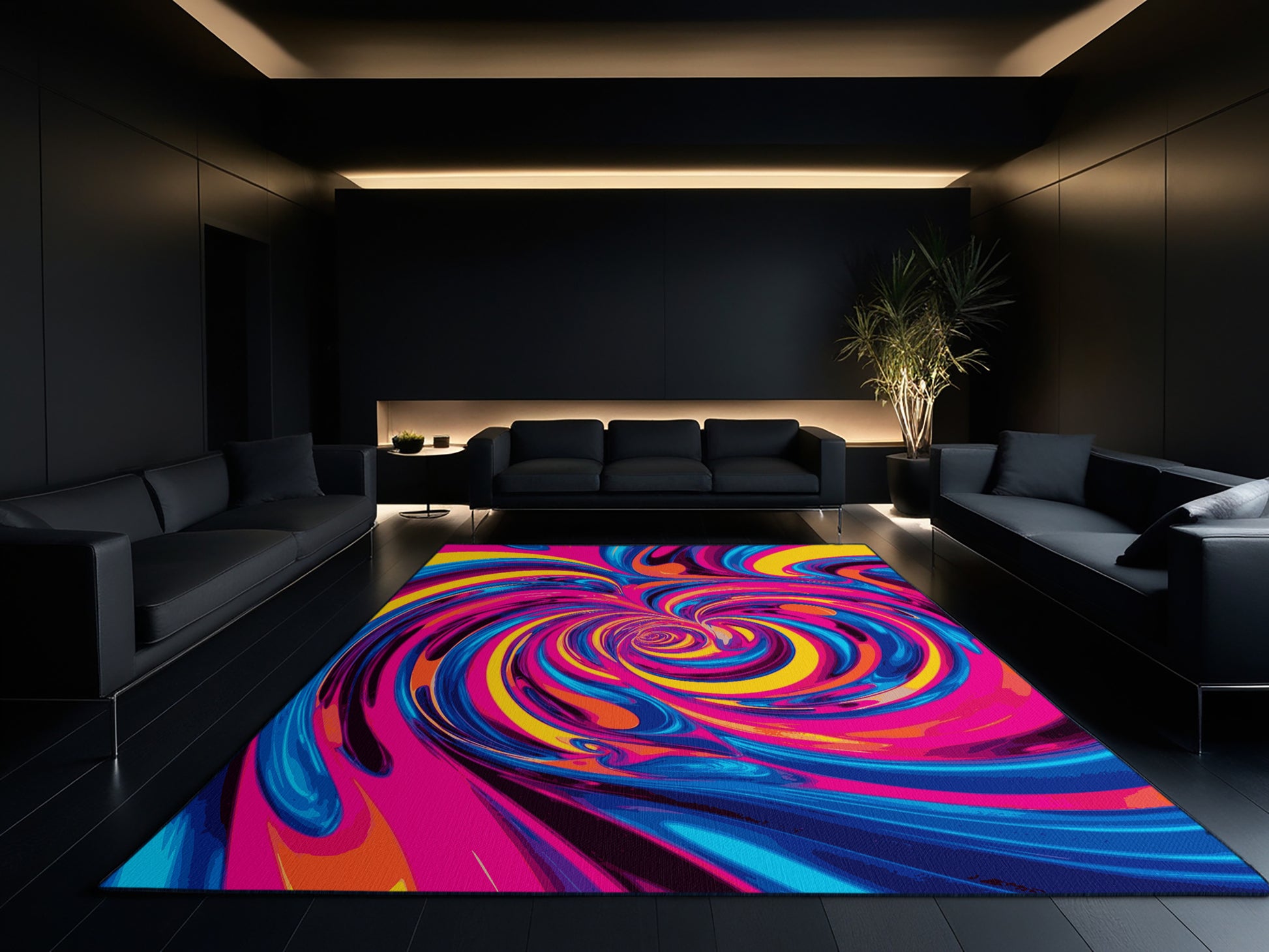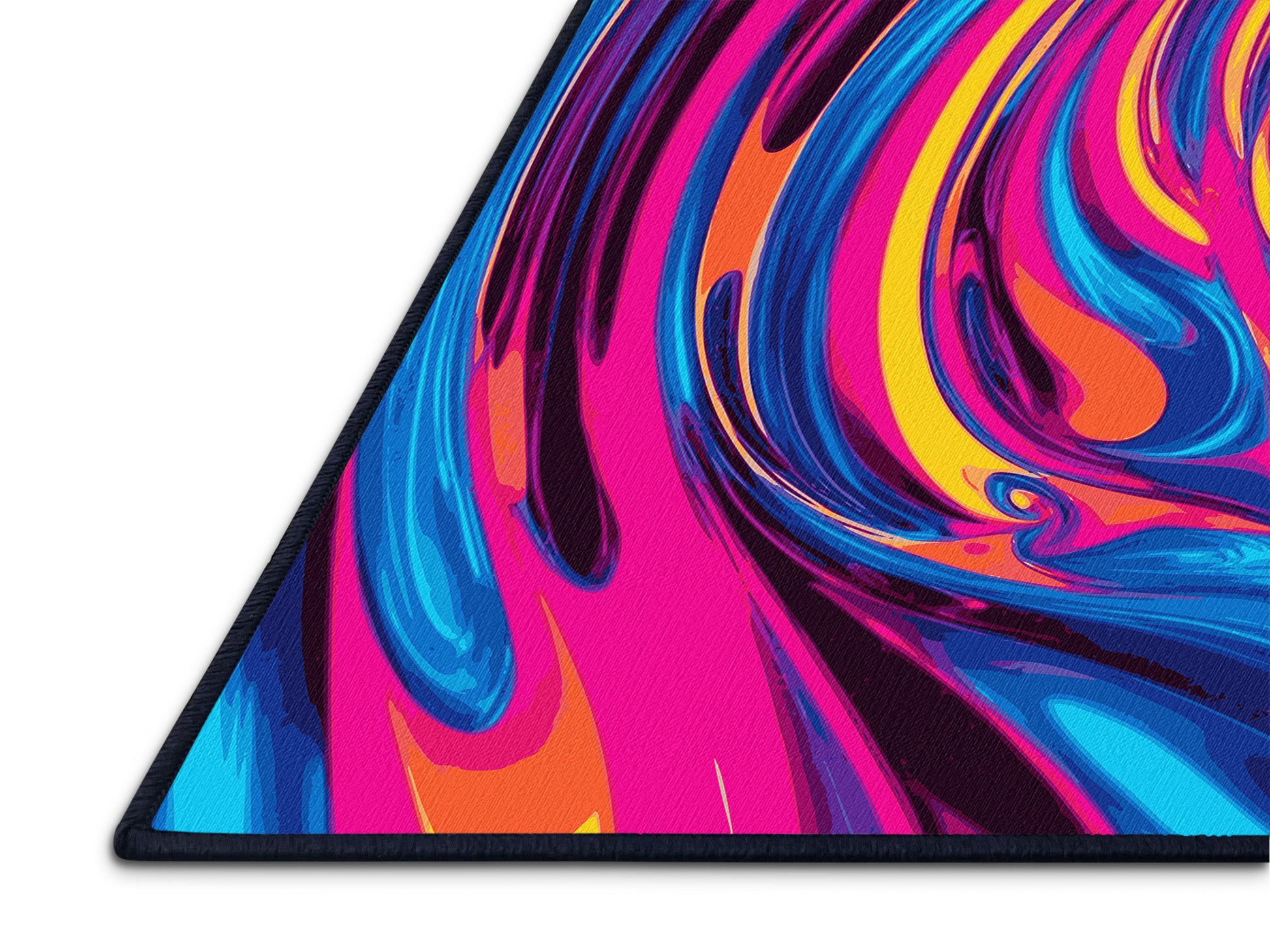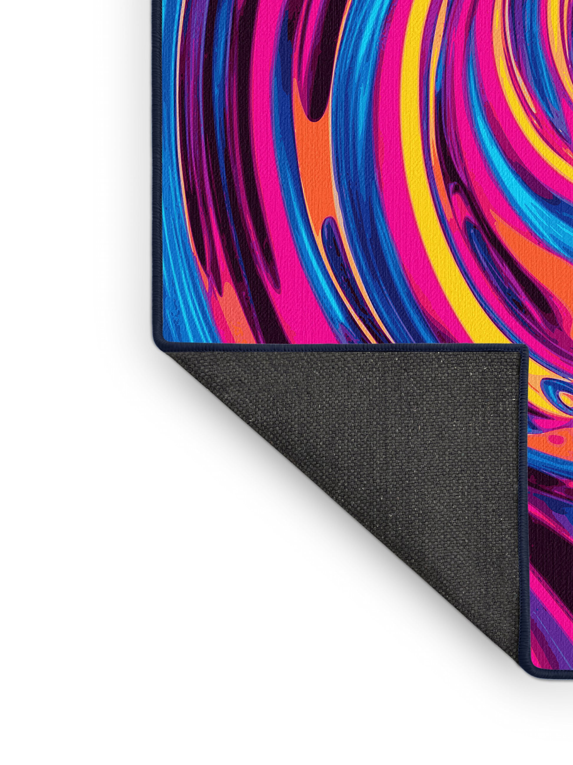 Prism Aurora from the Psychedelia Peaks collection radiates vibrant energy with its bold DarkSlateBlue (W3C) color (A dark and muted blue with slate-inspired undertones, versatile and bold.), a striking tone in the Blue color family. Featuring swirling, kaleidoscopic patterns and electrifying neon hues inspired by the psychedelic art movement, this rug brings a sense of dynamic motion and artistic expression to your space. Finished with Navy serging a durable edge that enhances its playful and vibrant aesthetic this rug is crafted from premium polyester and machine-made in the USA with imported materials. Perfect for eclectic living rooms, retro-inspired spaces, or creative studios, this design transforms any room into a lively haven of individuality and boldness. Available in multiple sizes, the Psychedelia Peaks collection adds a dramatic, colorful statement to your decor, turning your home into a canvas of unrestrained creativity.