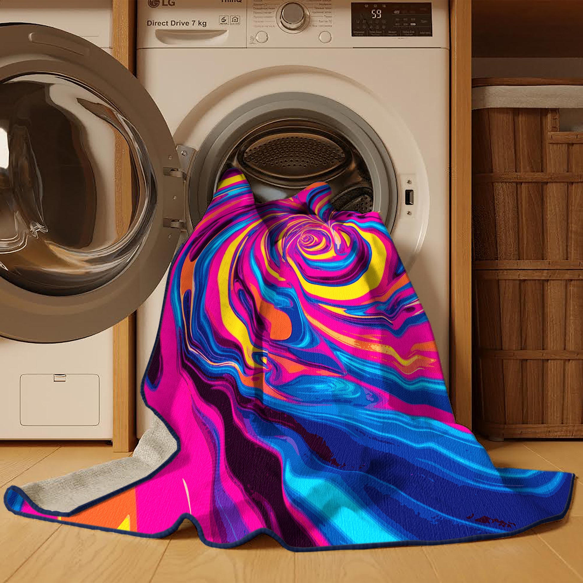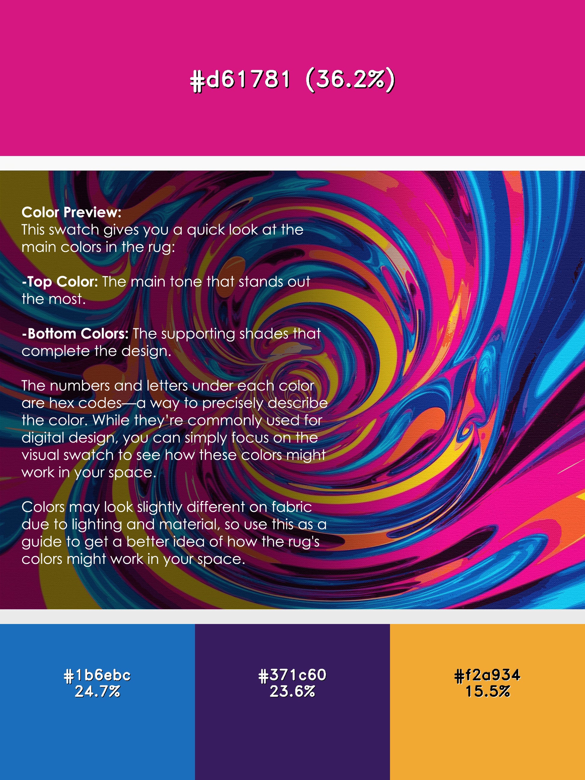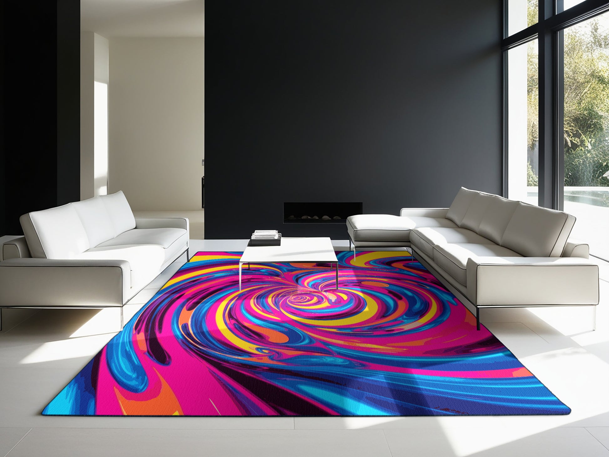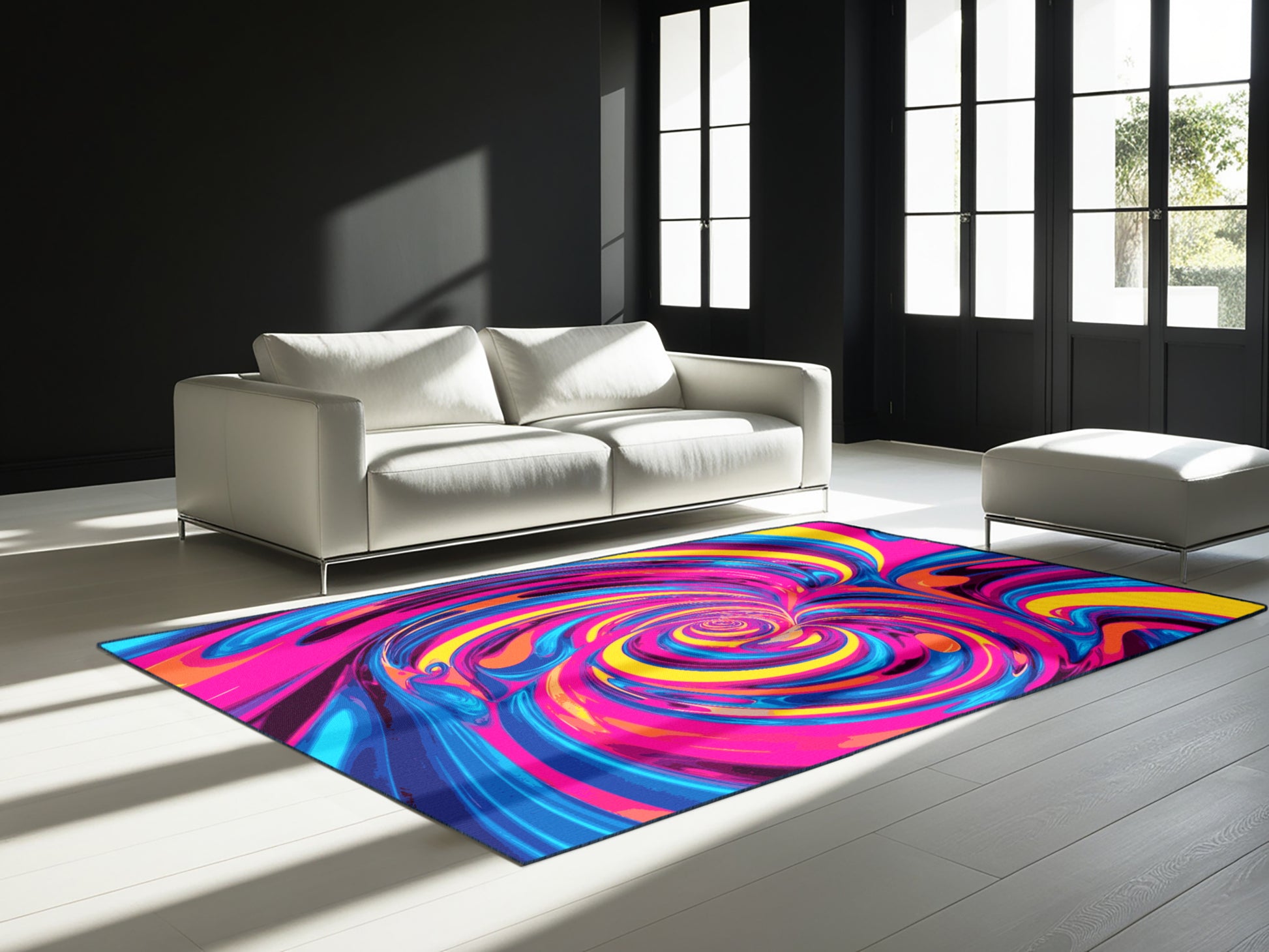 Prism Aurora from the Psychedelia Peaks collection radiates vibrant energy with its bold DarkSlateBlue (W3C) color (A dark and muted blue with slate-inspired undertones, versatile and bold.), a striking tone in the Blue color family. Featuring swirling, kaleidoscopic patterns and electrifying neon hues inspired by the psychedelic art movement, this rug brings a sense of dynamic motion and artistic expression to your space. Finished with Navy serging a durable edge that enhances its playful and vibrant aesthetic this rug is crafted from premium polyester and machine-made in the USA with imported materials. Perfect for eclectic living rooms, retro-inspired spaces, or creative studios, this design transforms any room into a lively haven of individuality and boldness. Available in multiple sizes, the Psychedelia Peaks collection adds a dramatic, colorful statement to your decor, turning your home into a canvas of unrestrained creativity.