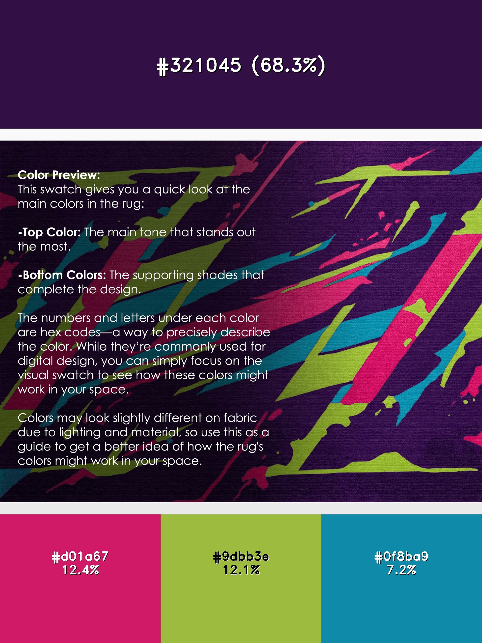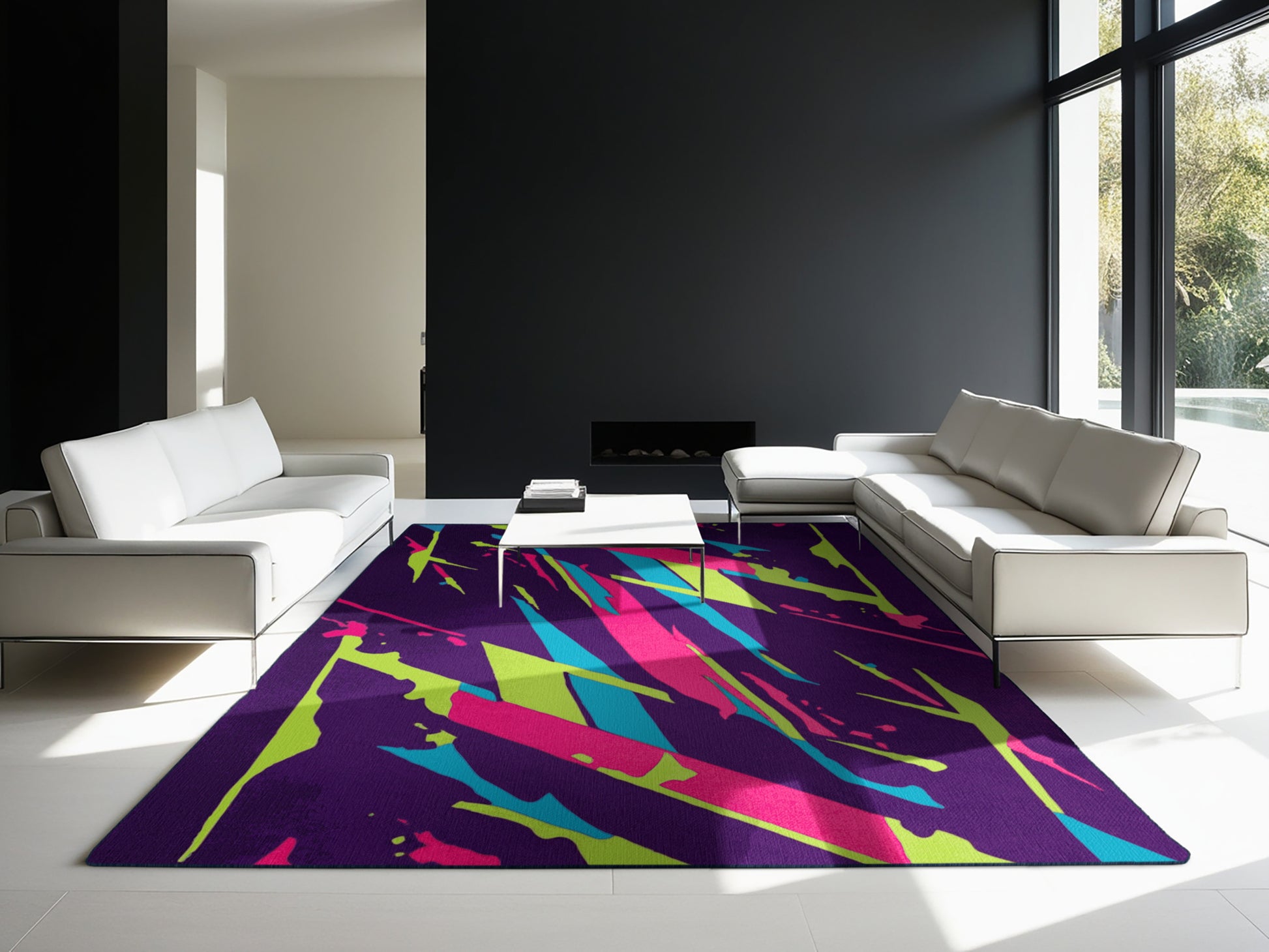 Prismatic Blaze from the Neon Nexus collection electrifies your space with its bold Purple Iris color (A rich and elegant purple inspired by iris flowers.), a striking tone in the Purple color family. Inspired by neon-lit cityscapes and cyberpunk design, this rug features sharp geometric patterns and dynamic lines illuminated by vibrant, electric hues. Finished with Navy serging a sleek edge that enhances its futuristic appeal this rug is crafted from premium polyester and machine-made in the USA with imported materials. Perfect for modern gaming rooms, creative studios, or contemporary living spaces, this design balances cutting-edge energy with adaptable elegance. Available in multiple sizes, the Neon Nexus collection transforms any room into a bold statement of innovation and style, channeling the vibrant glow of a cyberpunk universe.