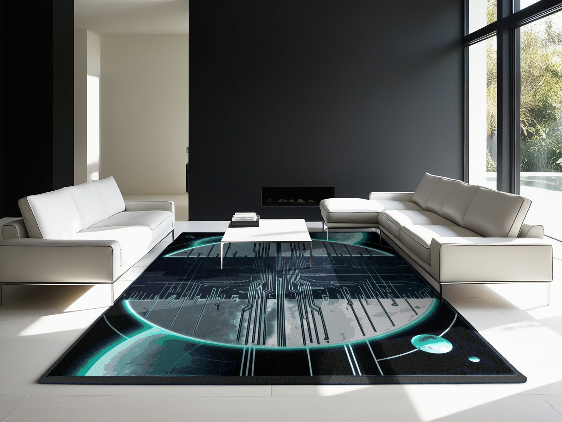 Pulsar Bloom from the NeoLoom Galaxy collection brings futuristic sophistication to your space with its striking Black Blue color (A deep, almost black shade with subtle blue undertones.), a bold tone in the Black color family. Featuring cutting-edge geometric patterns and dynamic lines inspired by space exploration and advanced technology, this rug is finished with Navy serging a sleek edge that enhances its modern aesthetic. Crafted from premium polyester and machine-made in the USA with imported materials, it combines innovation, durability, and style. Perfect for contemporary living rooms, futuristic home offices, or bold creative studios, this design blends avant-garde artistry with forward-thinking design. Available in multiple sizes, the NeoLoom Galaxy collection transforms any space into a statement of sleek modernity and endless possibilities.
