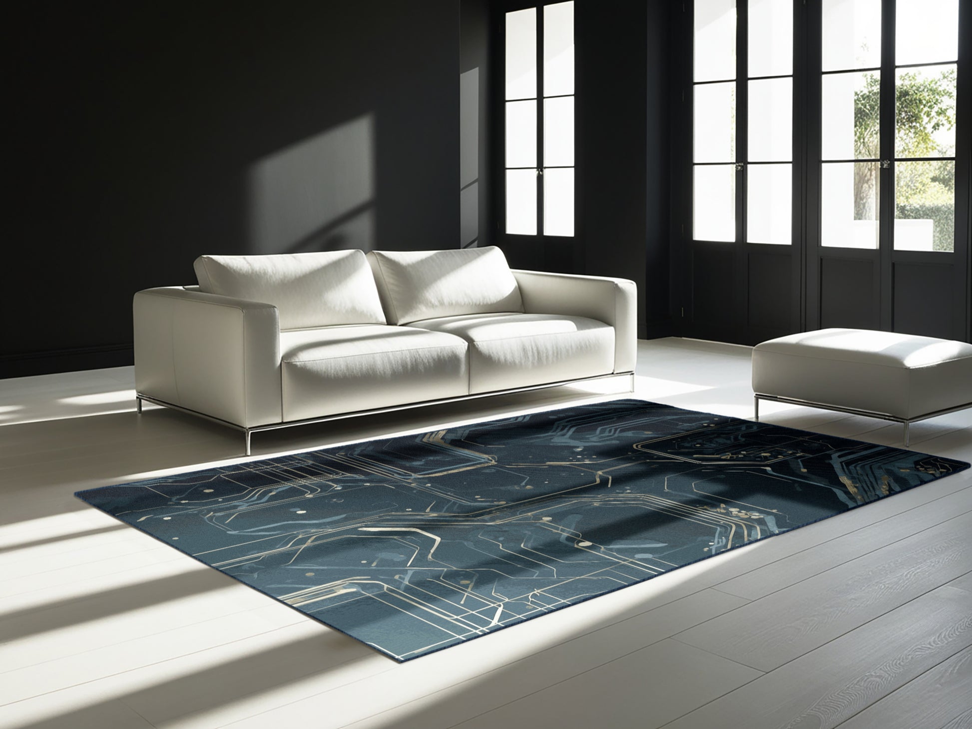 Pulsar Flow from the NeoLoom Galaxy collection brings futuristic sophistication to your space with its striking Midnight color (A deep, dark color with subtle red undertones, mysterious and bold.), a bold tone in the Black color family. Featuring cutting-edge geometric patterns and dynamic lines inspired by space exploration and advanced technology, this rug is finished with Navy serging a sleek edge that enhances its modern aesthetic. Crafted from premium polyester and machine-made in the USA with imported materials, it combines innovation, durability, and style. Perfect for contemporary living rooms, futuristic home offices, or bold creative studios, this design blends avant-garde artistry with forward-thinking design. Available in multiple sizes, the NeoLoom Galaxy collection transforms any space into a statement of sleek modernity and endless possibilities.